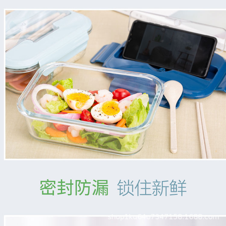 玻璃饭盒分隔型上班族保鲜盒可微波炉加热专用自带餐具便当盒餐盒