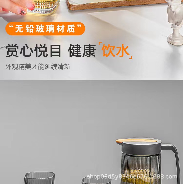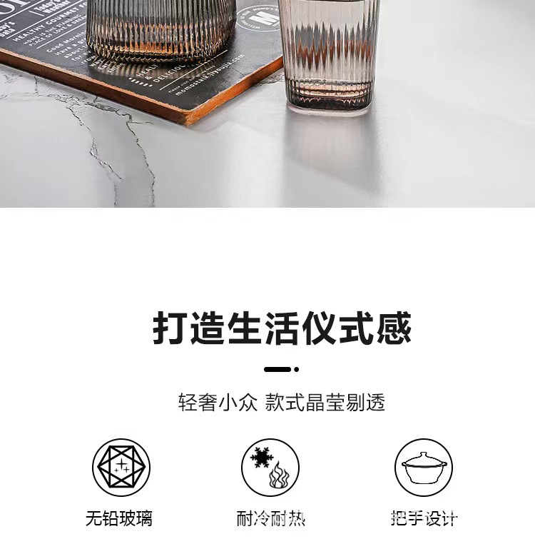 玻璃冷水壶套装家用透明大容量凉水壶五件套竖纹水具开业礼品批发