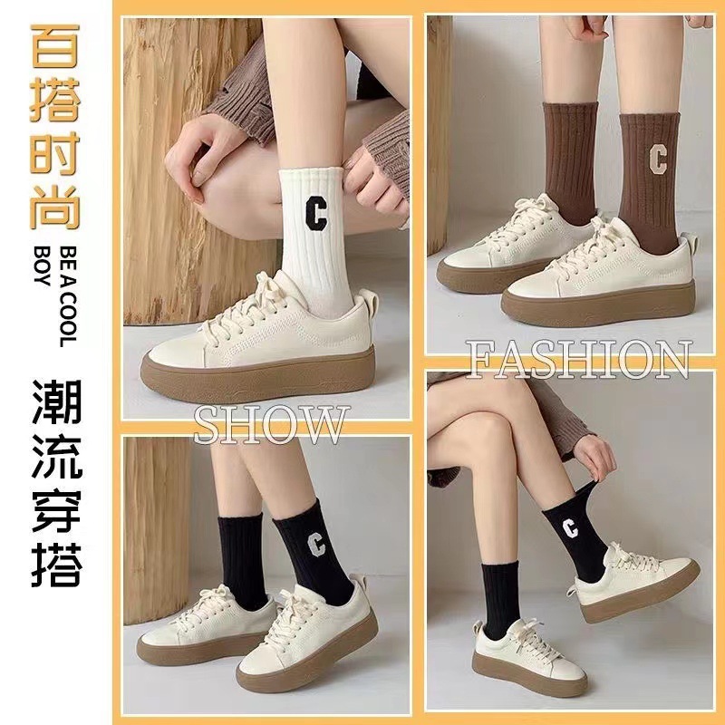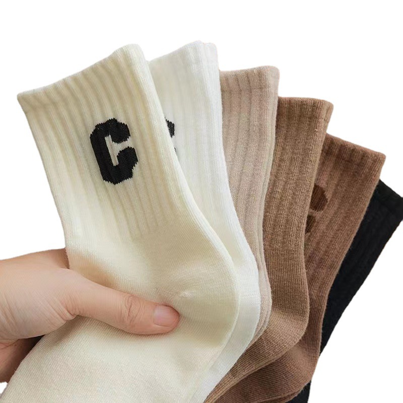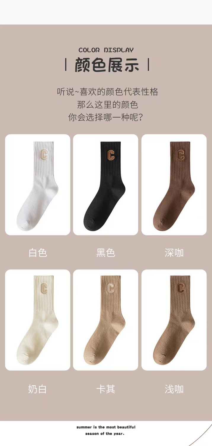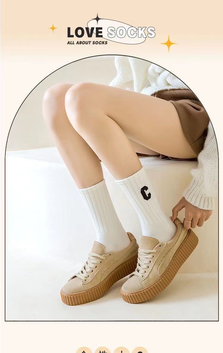袜子女春夏季中筒棉字母潮长袜黑白色女士网红四季运动女袜长筒袜