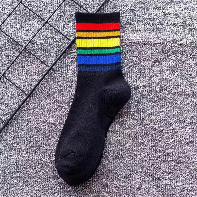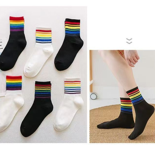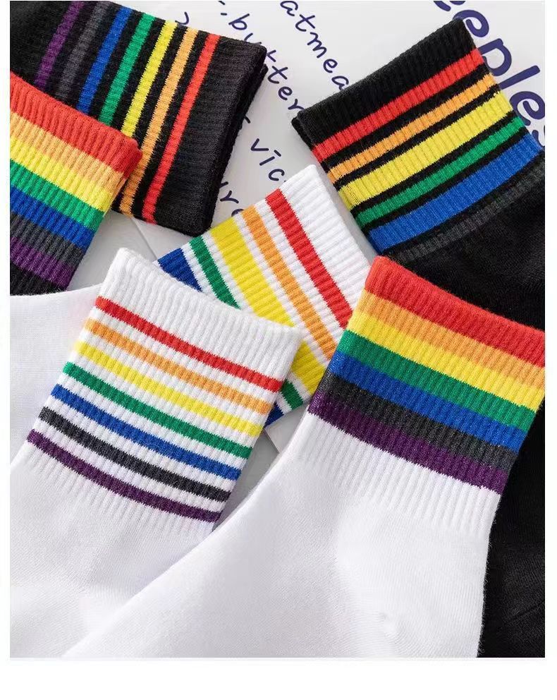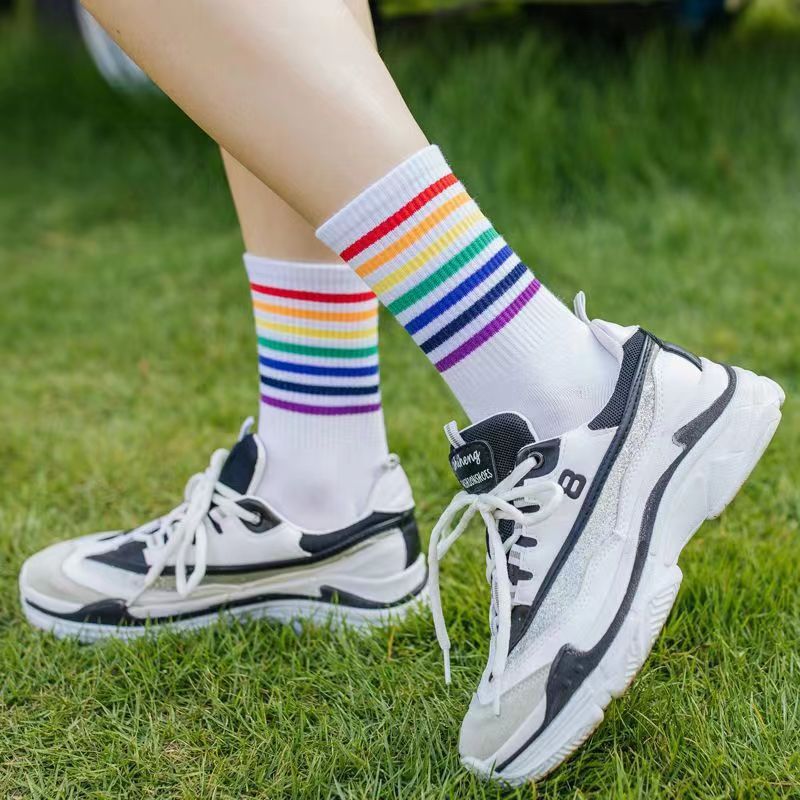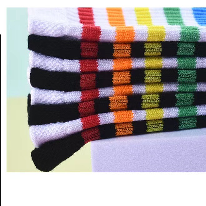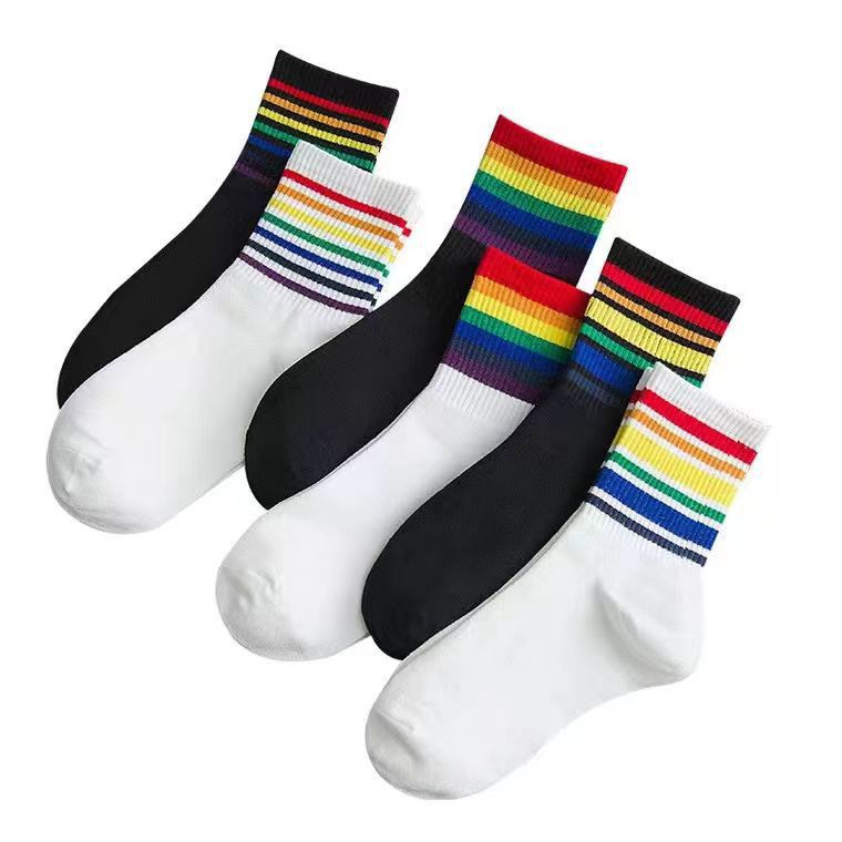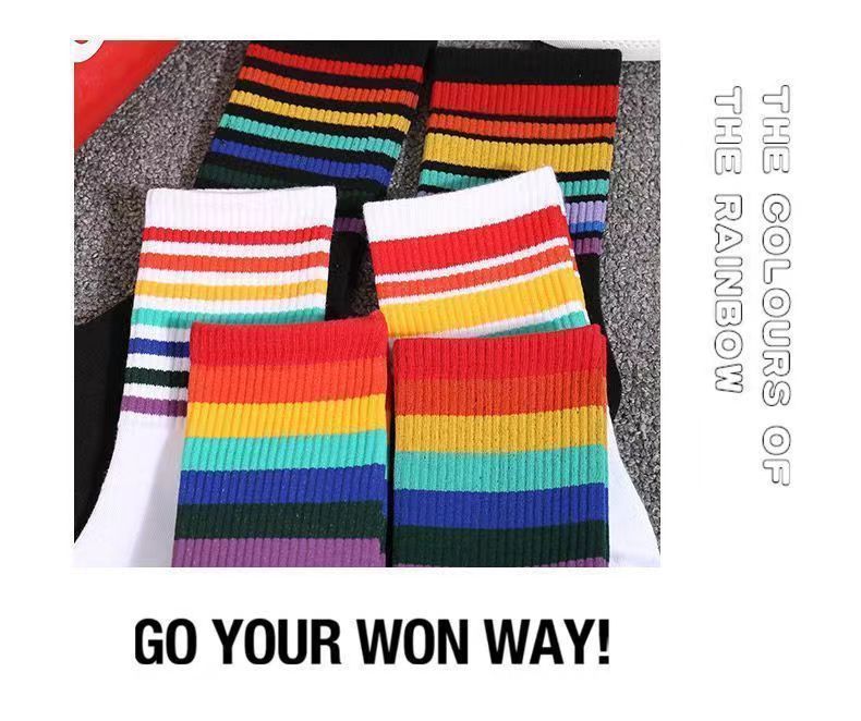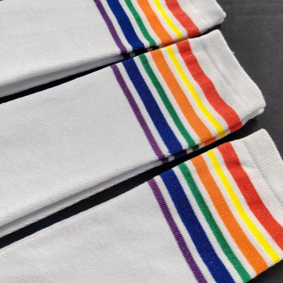 袜子女全棉吸汗防臭长筒秋冬彩虹条纹韩版时尚厂家批发女士长袜