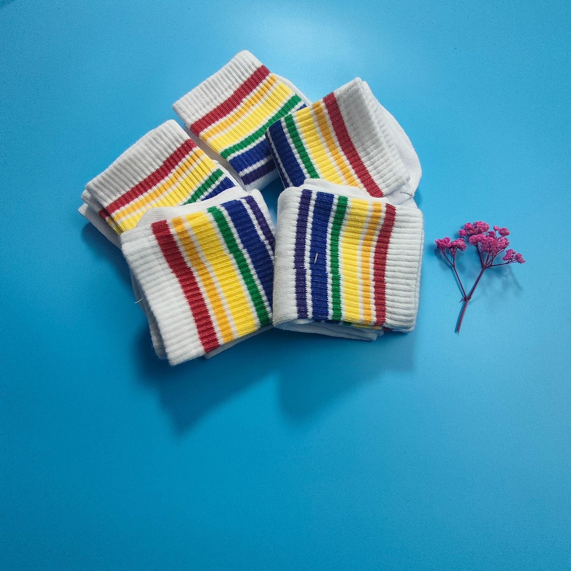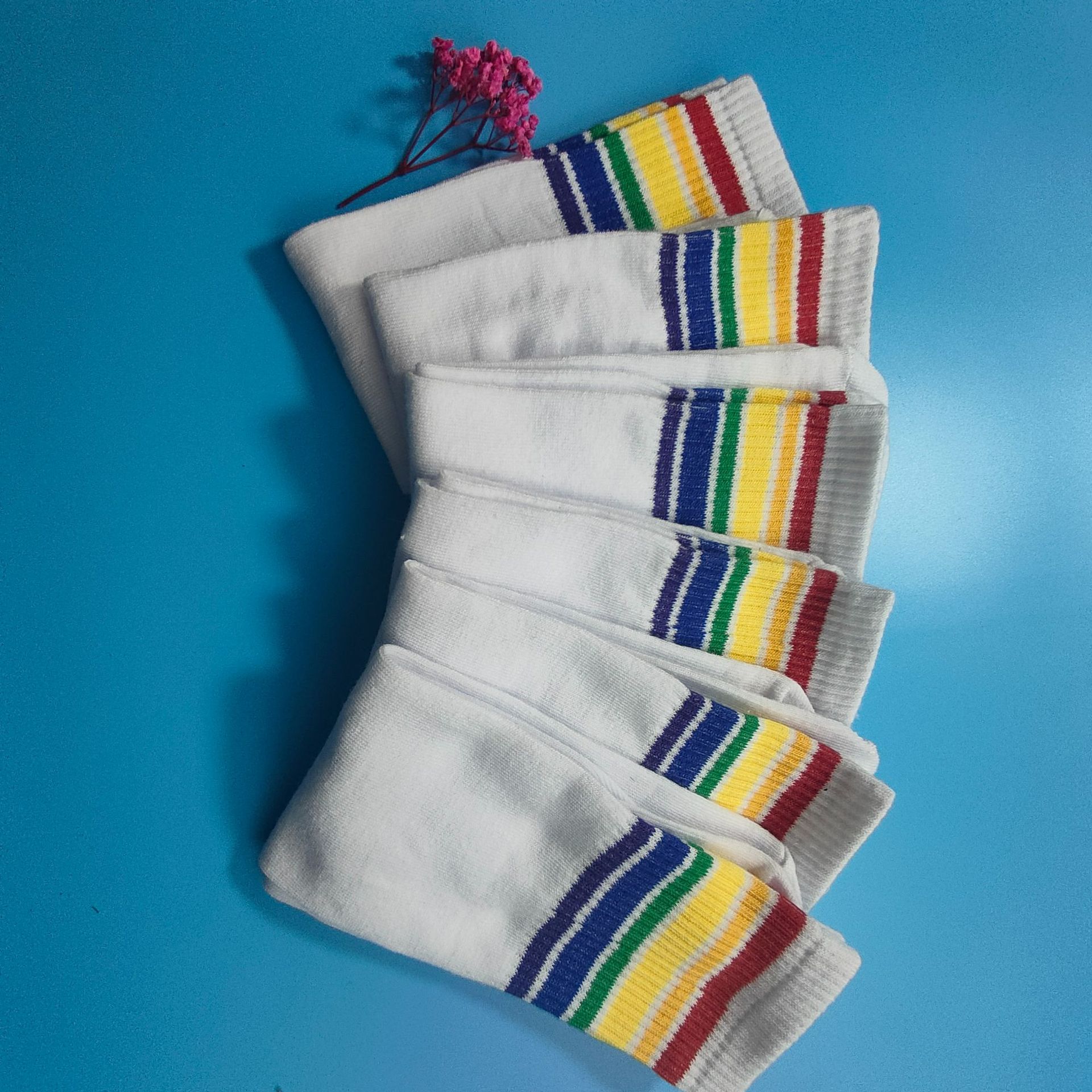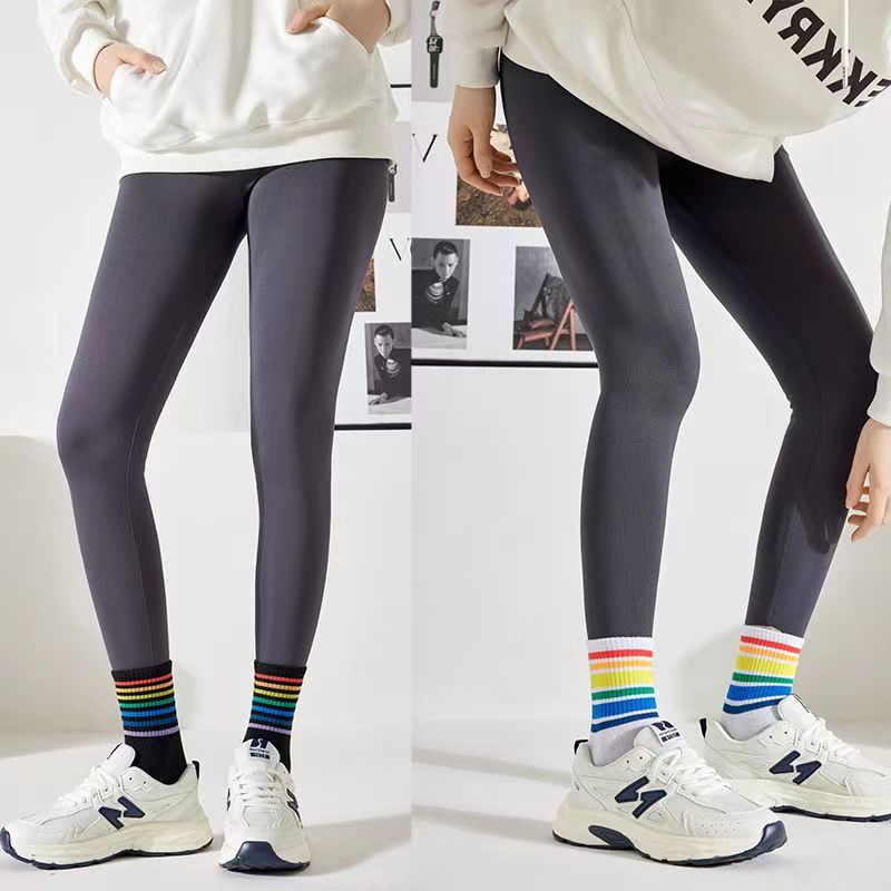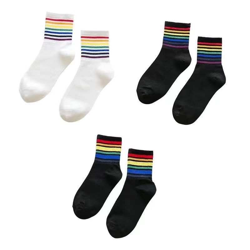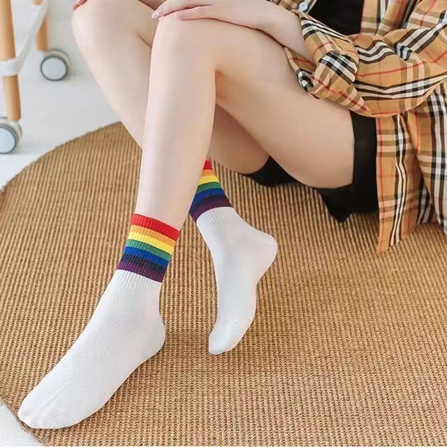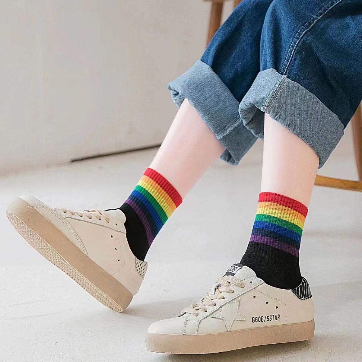 袜子女全棉吸汗防臭长筒秋冬彩虹条纹韩版时尚厂家批发女士长袜