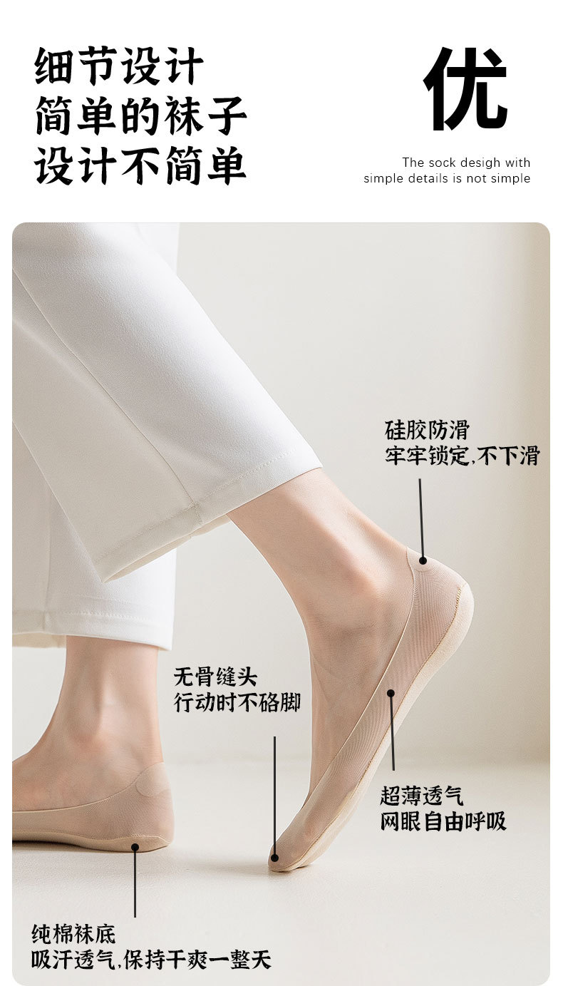 诸暨冰丝船袜女夏季薄款纯棉底防滑不掉跟高跟鞋单鞋浅口隐形袜子