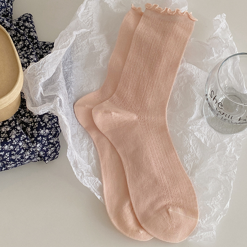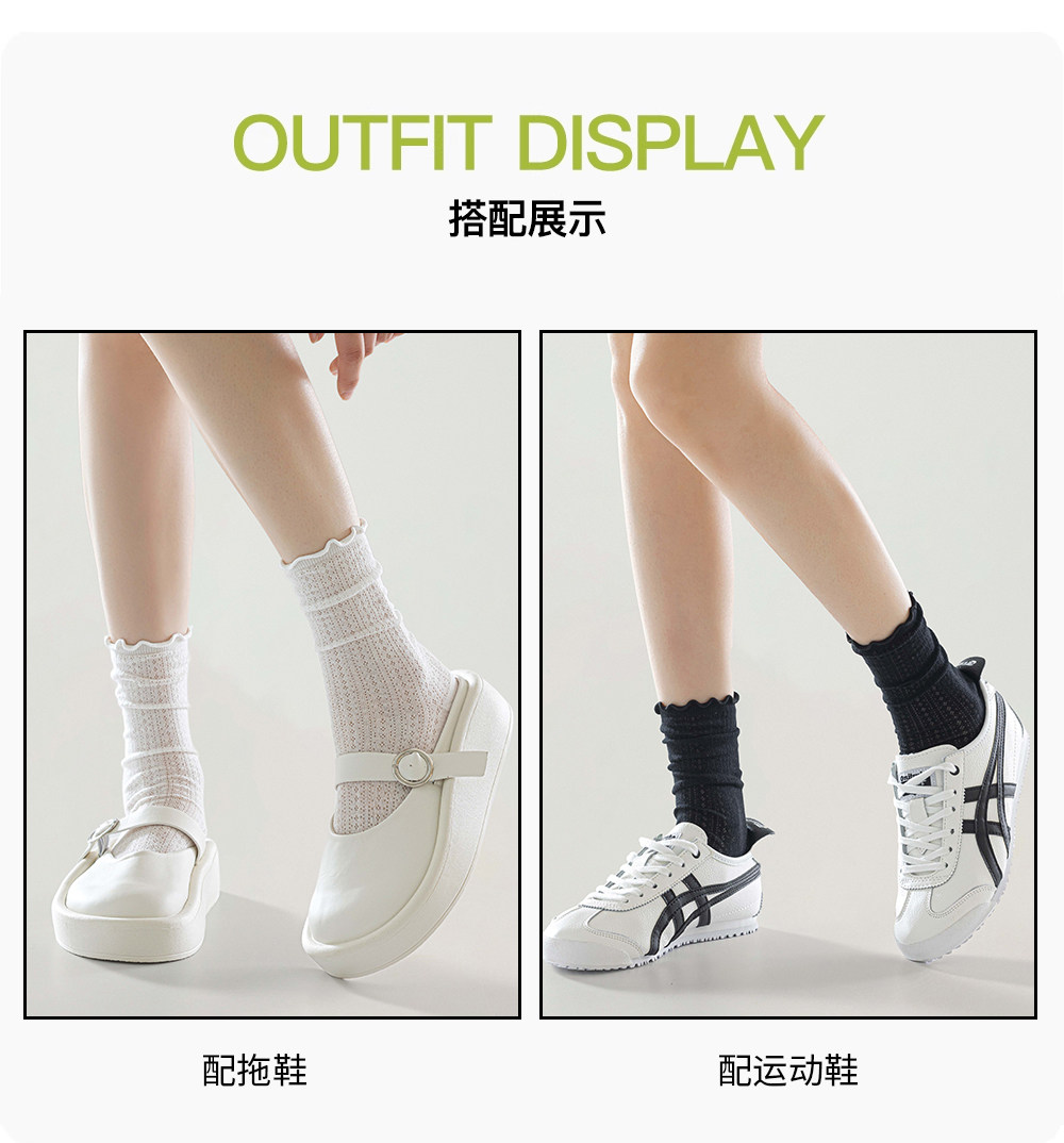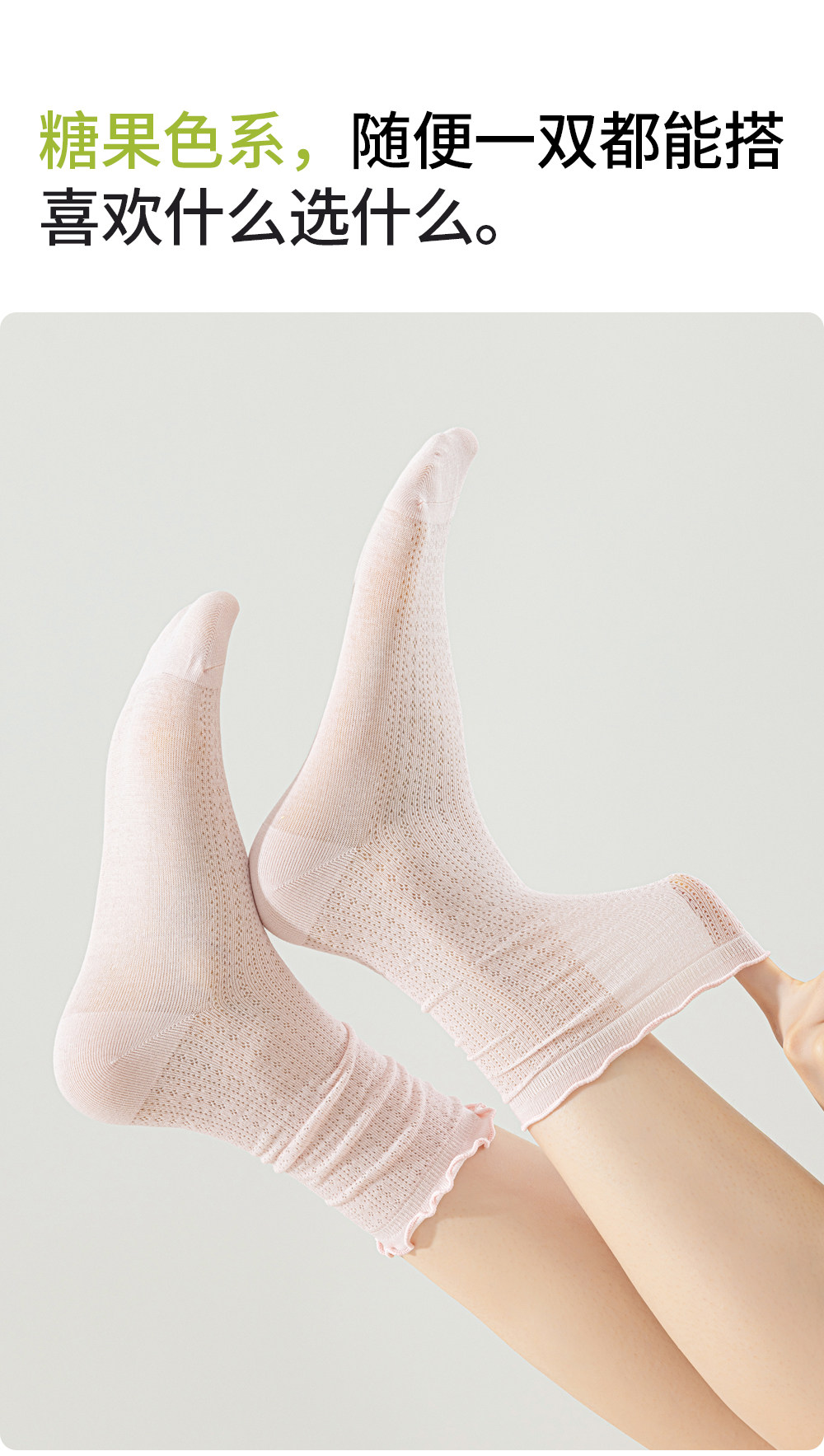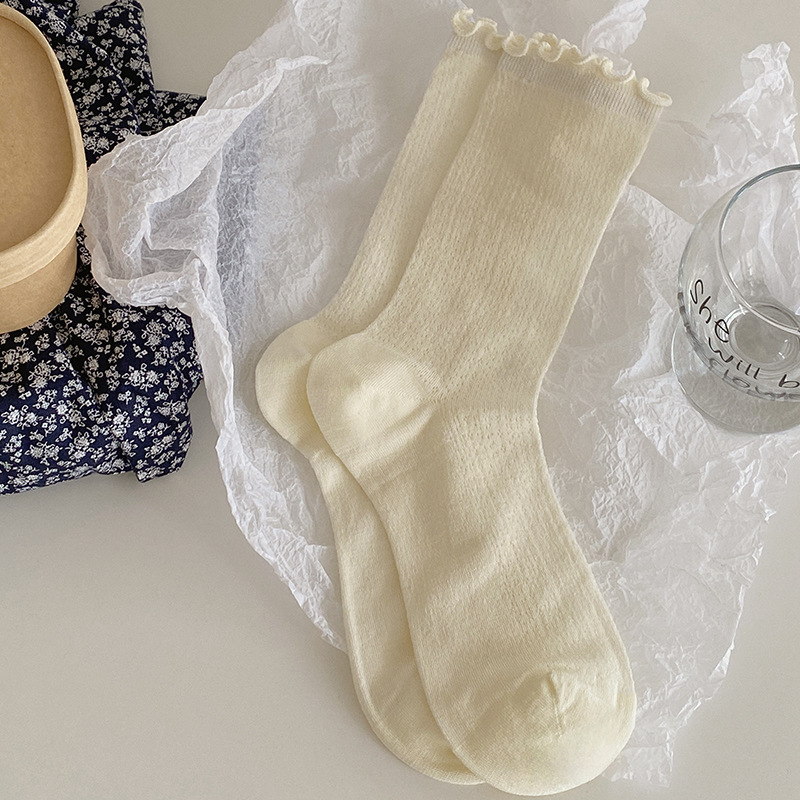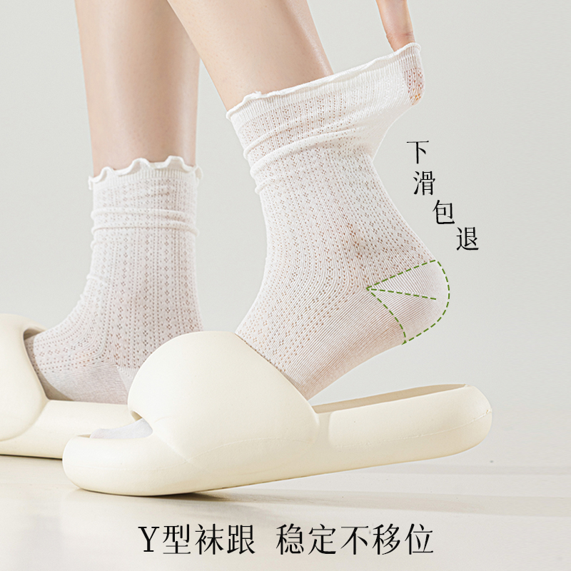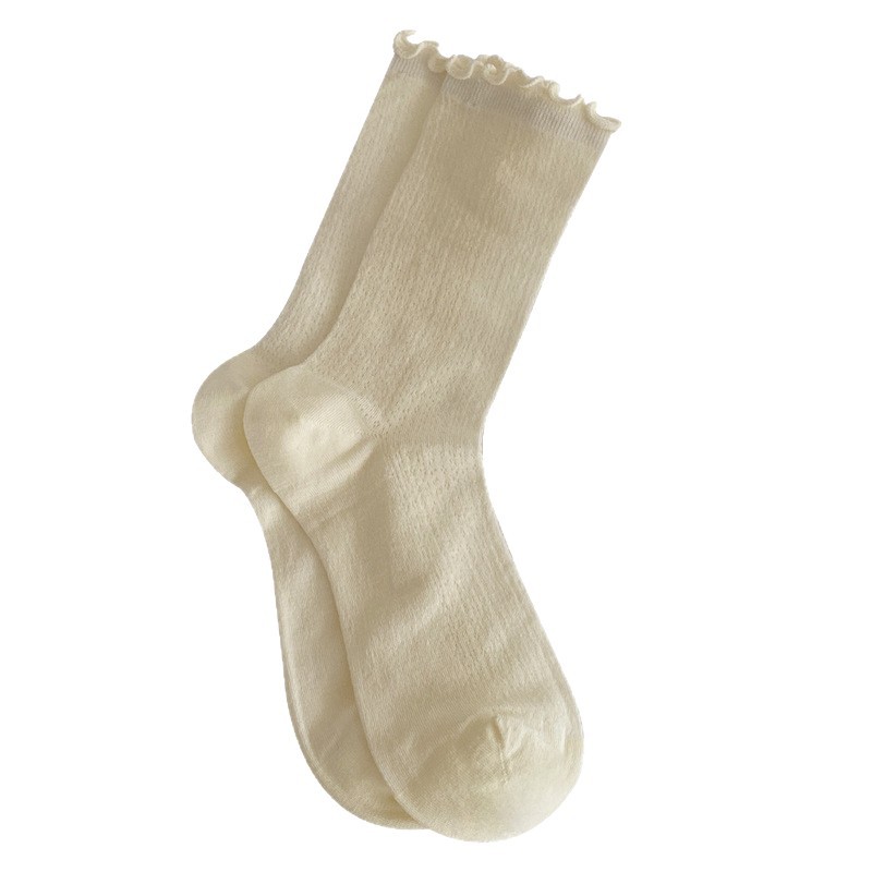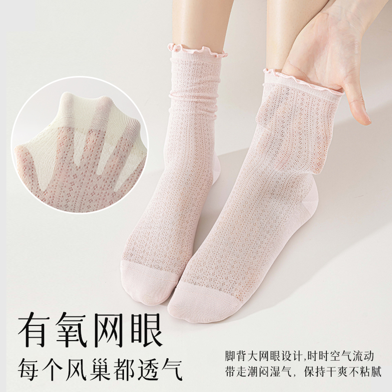 桑蚕丝袜子女夏季薄款网眼透气白色中筒袜2025新款木耳花边堆堆袜