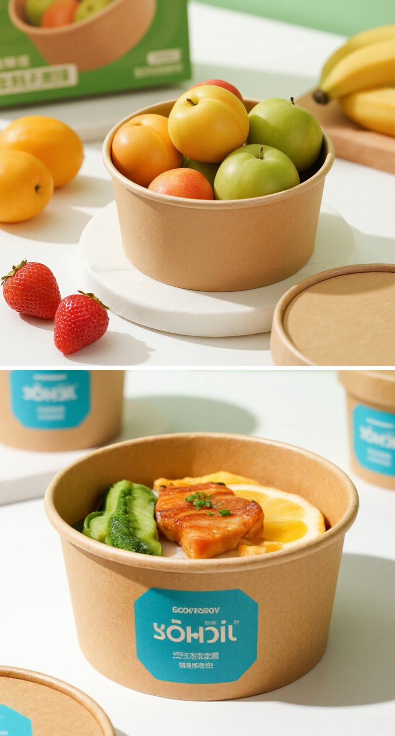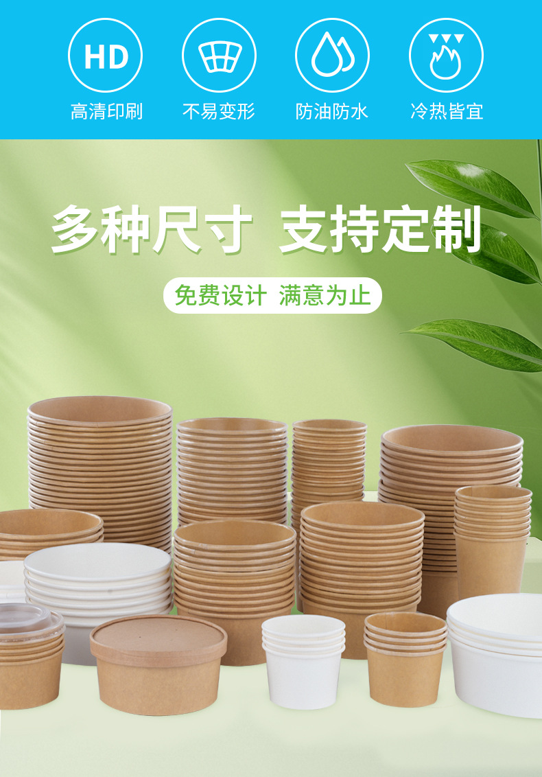 定制牛皮纸外卖盒1300ml一次性圆形纸碗商用餐盒纸碗整箱订做批发