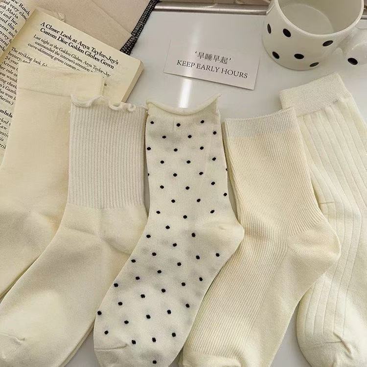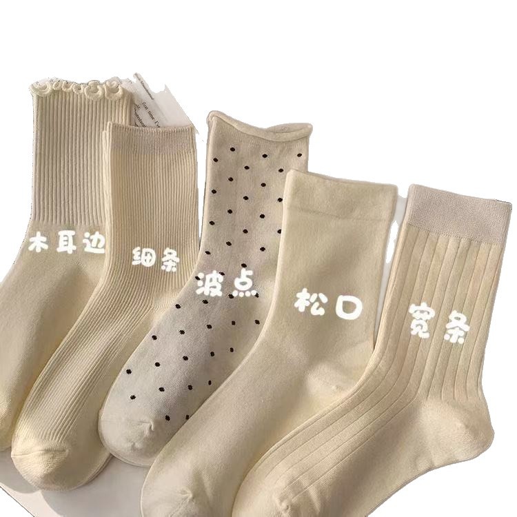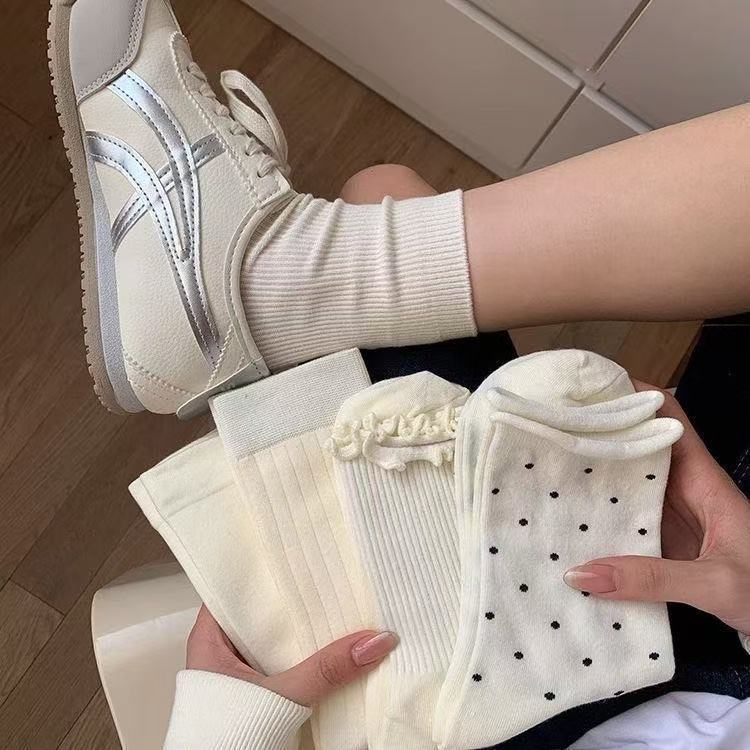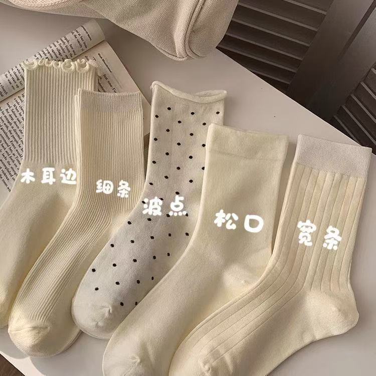 奶白色袜子女中筒袜夏季薄款堆堆袜花边甜美纯色百搭少女系长筒袜