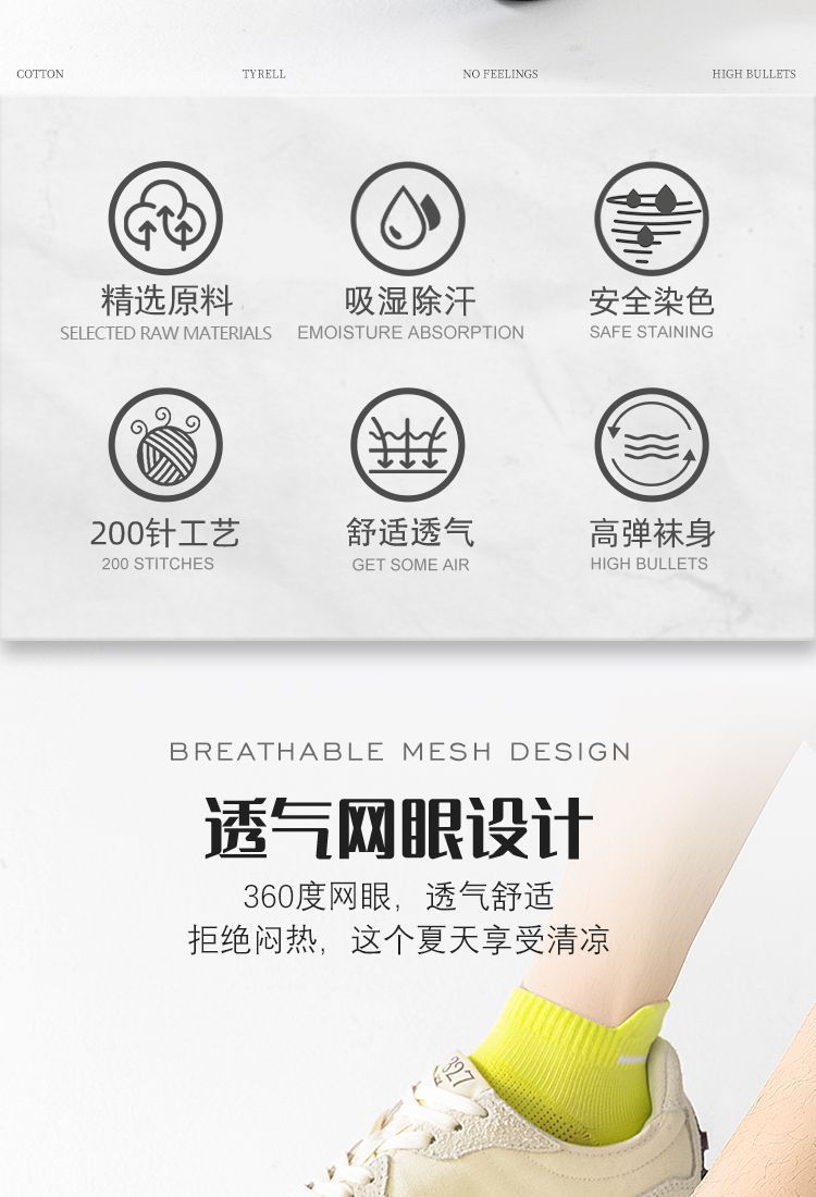 春夏薄款男女同款运动袜子防臭吸汗浅口袜网眼提耳短袜透气