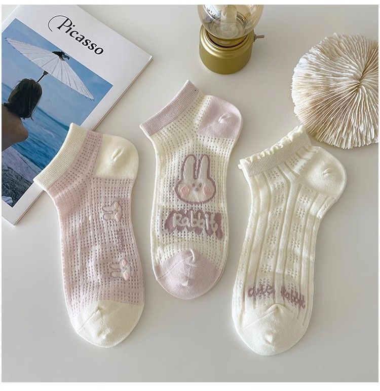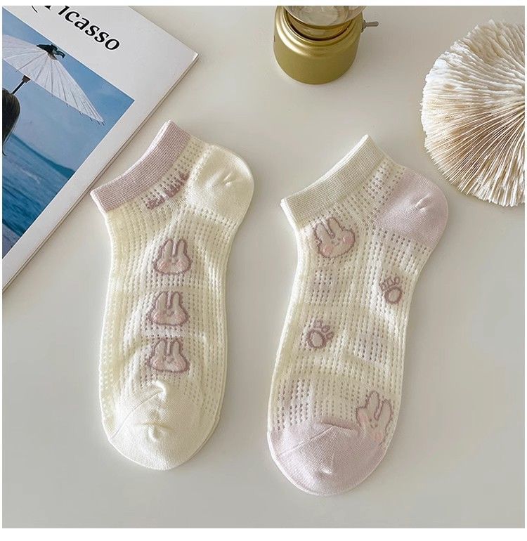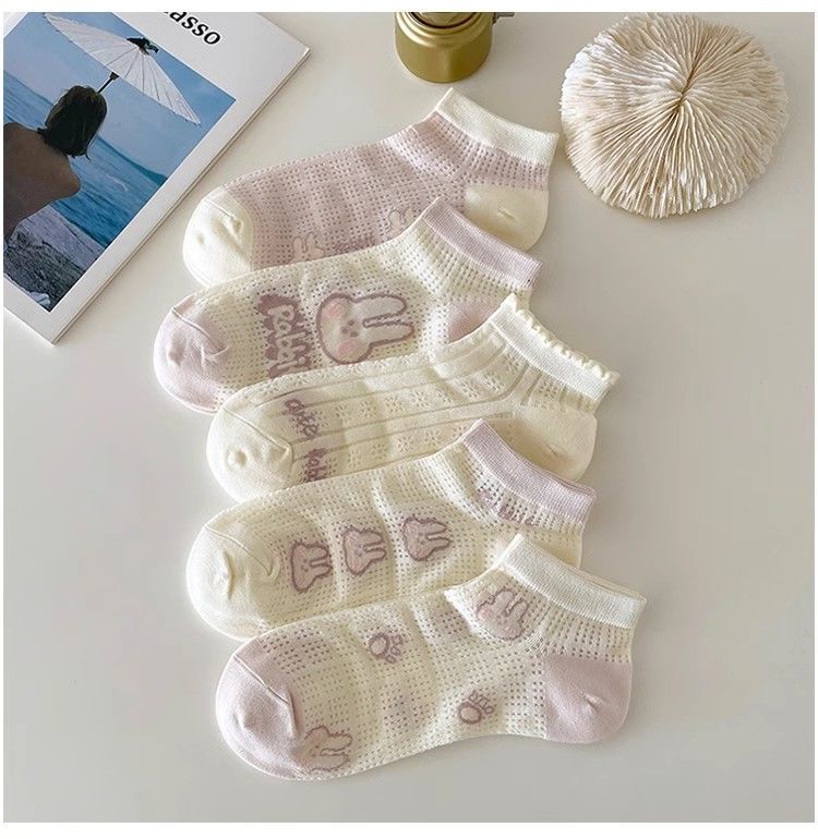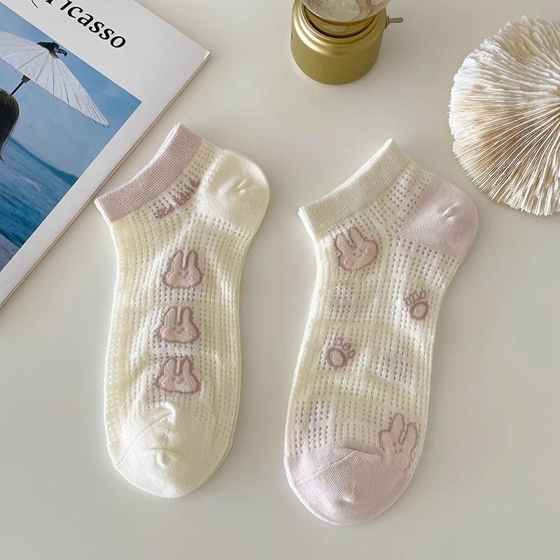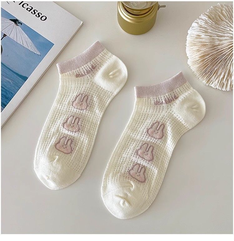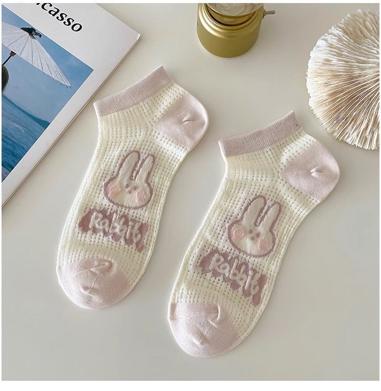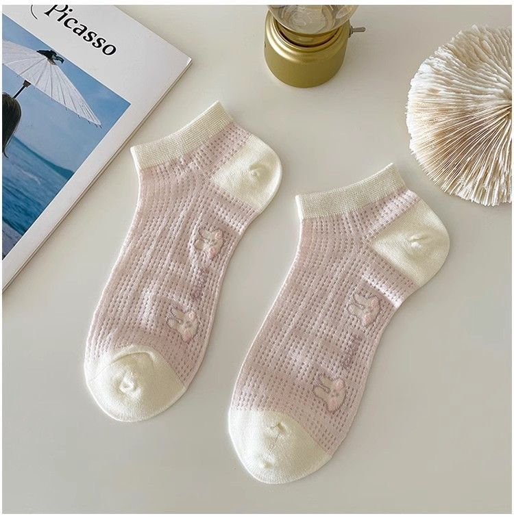 短袜女夏季薄款网眼透气轻薄浅口可爱卡通粉色学生日系船袜