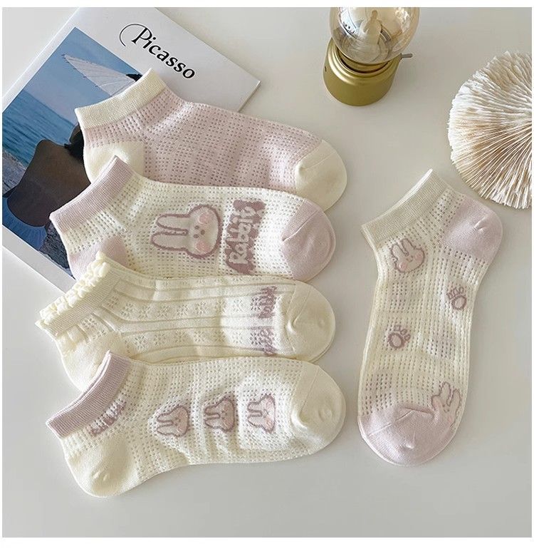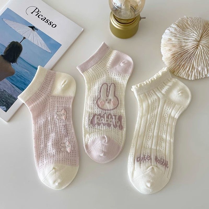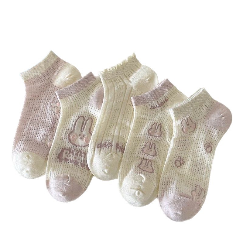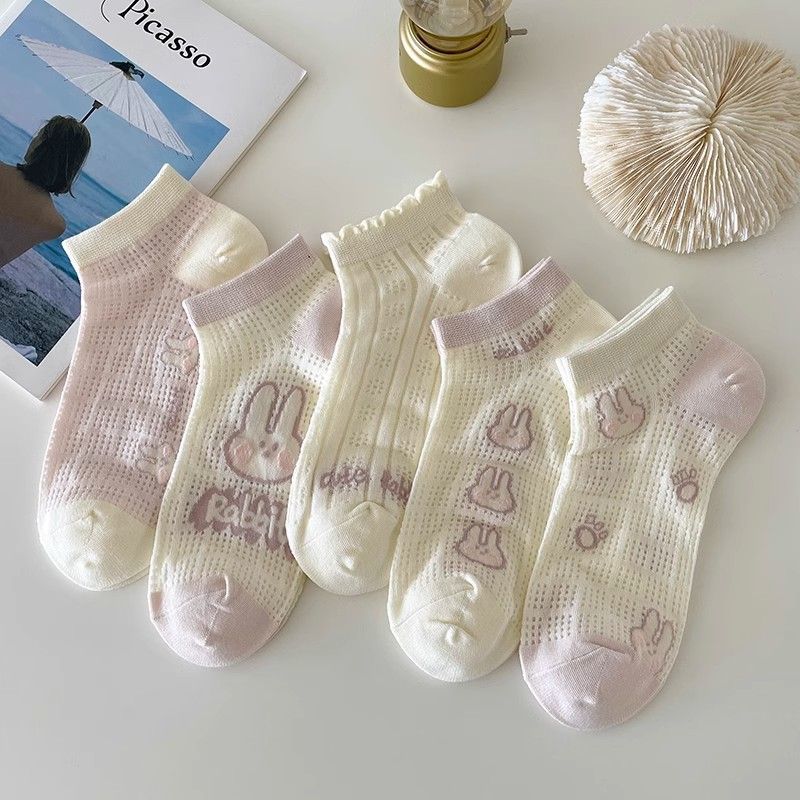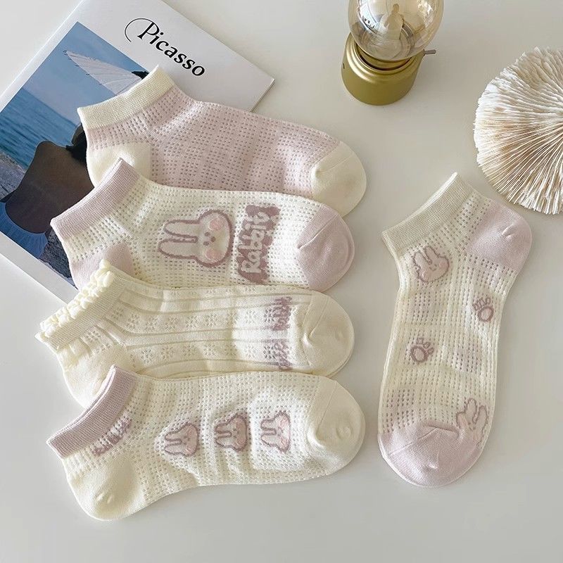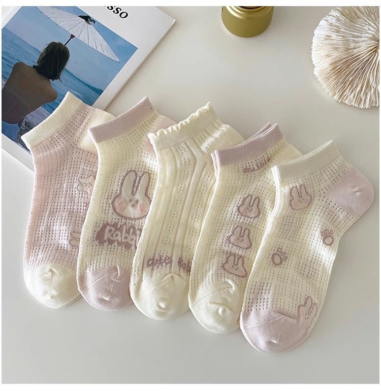 短袜女夏季薄款网眼透气轻薄浅口可爱卡通粉色学生日系船袜