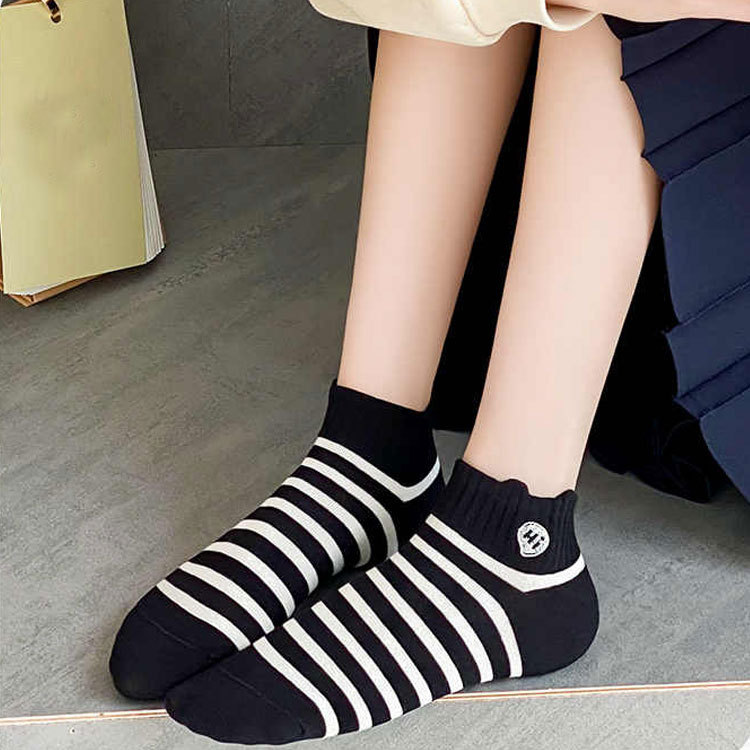 短袜子女批发春夏季薄款防滑防臭不掉跟夏天浅口日系潮条纹船袜
