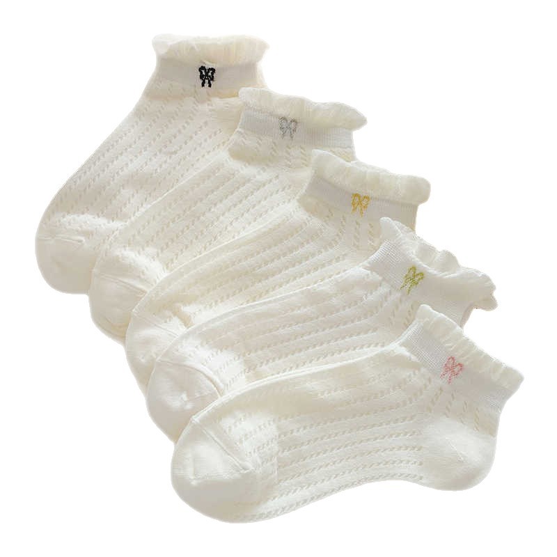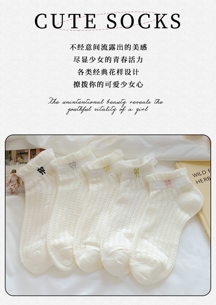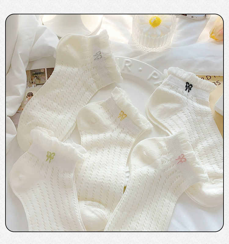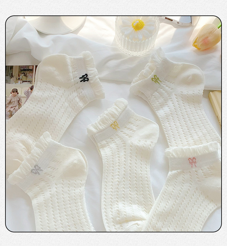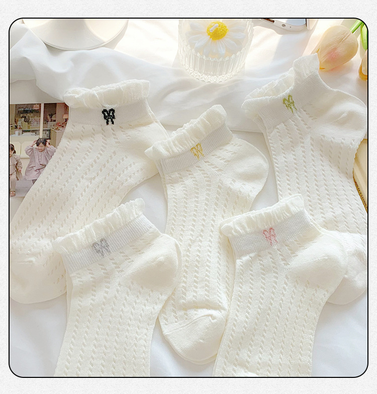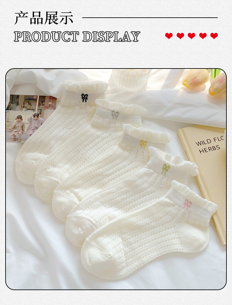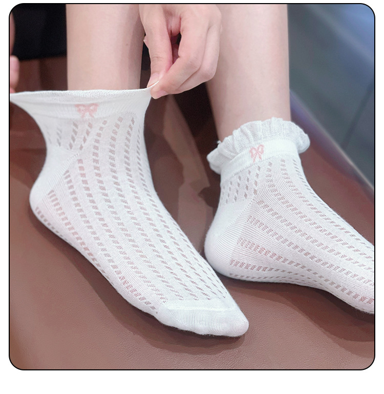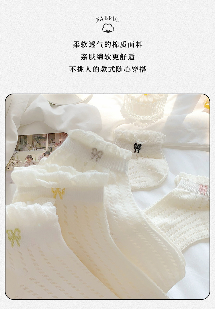 袜子女夏季薄款可爱纯色花边蝴蝶结日系可爱网眼透气浅口短袜