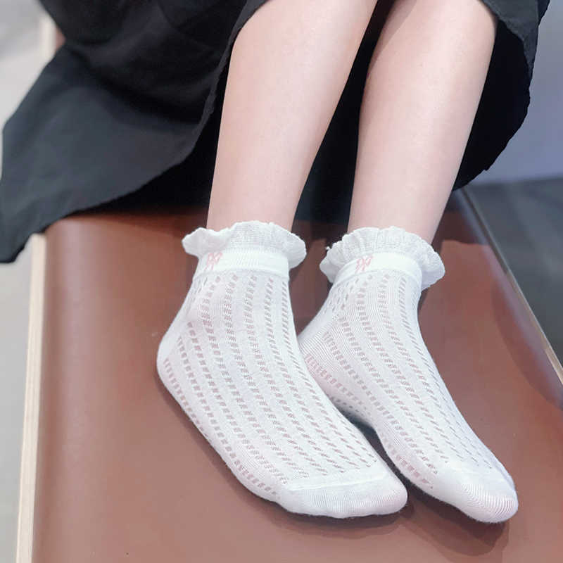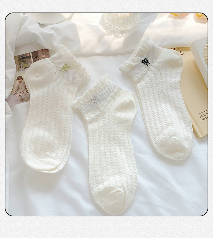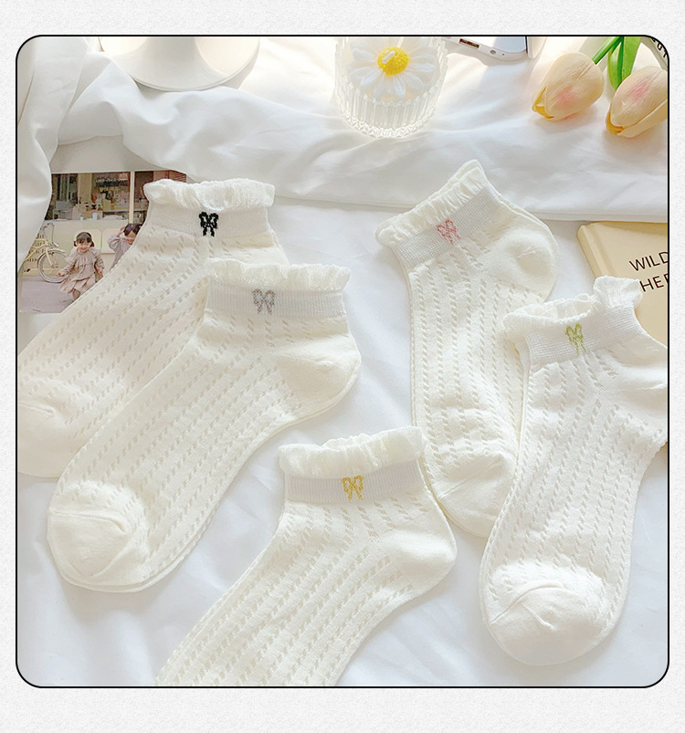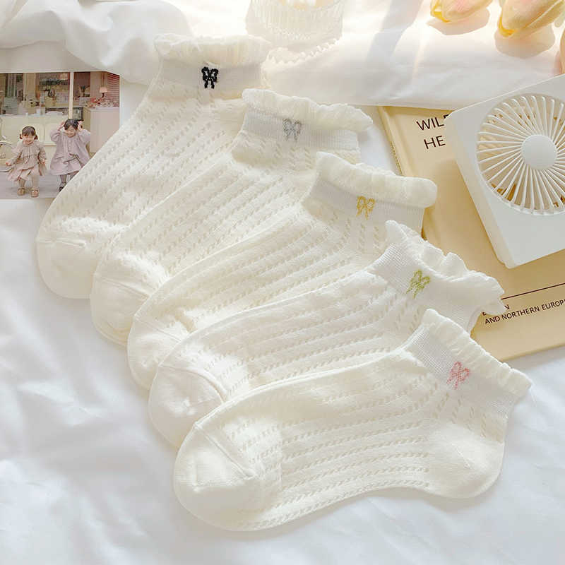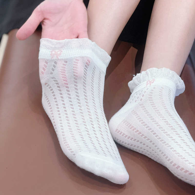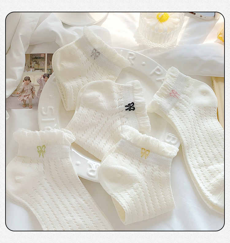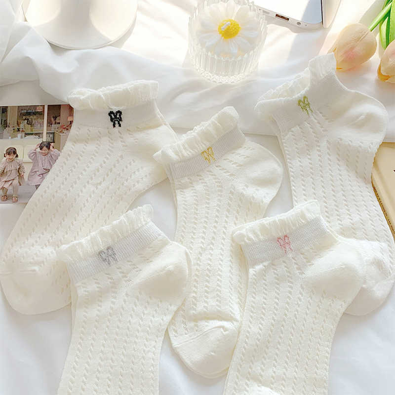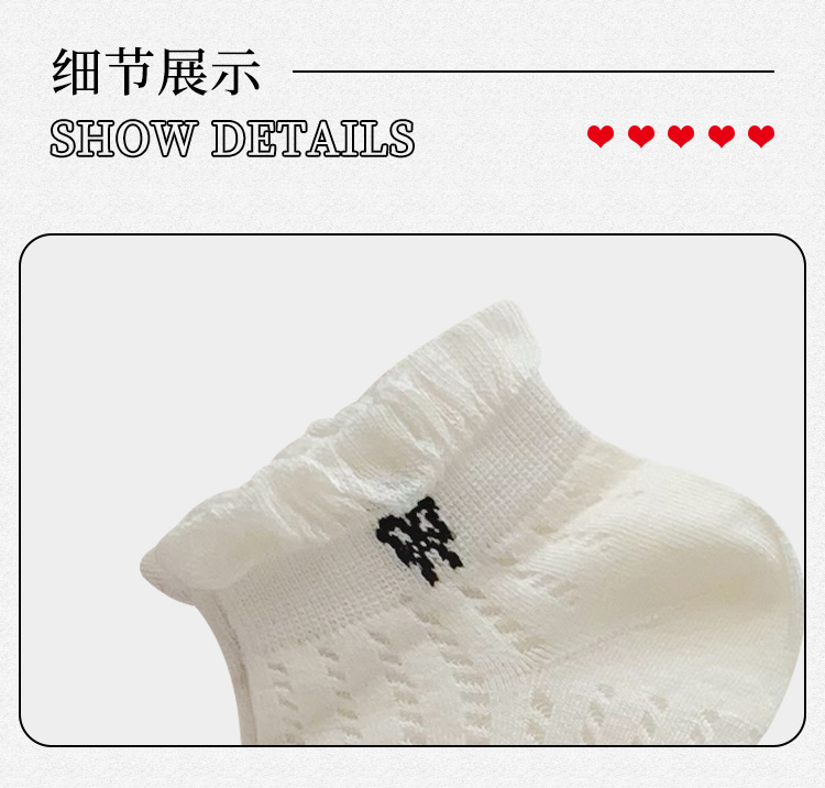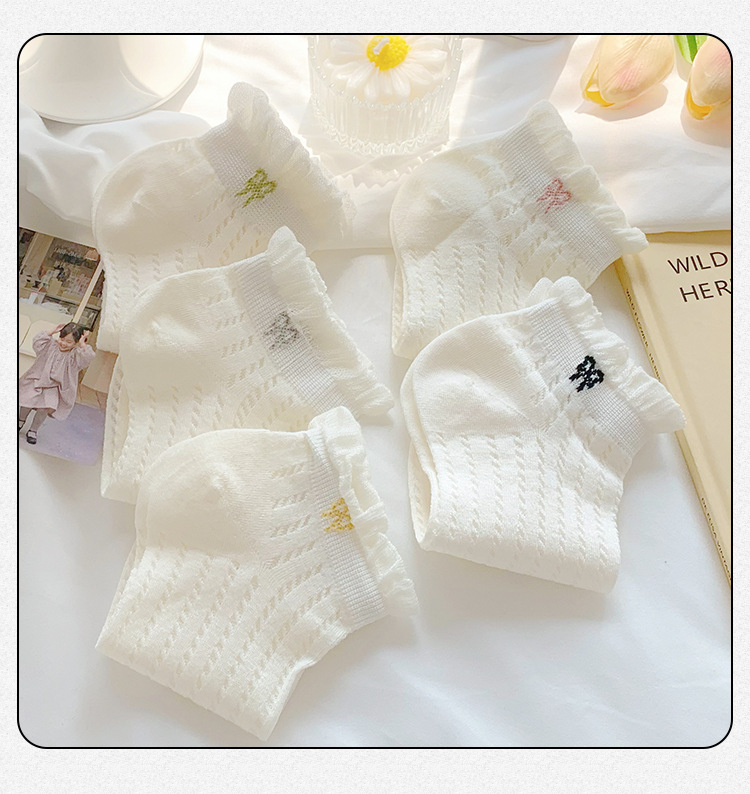 袜子女夏季薄款可爱纯色花边蝴蝶结日系可爱网眼透气浅口短袜