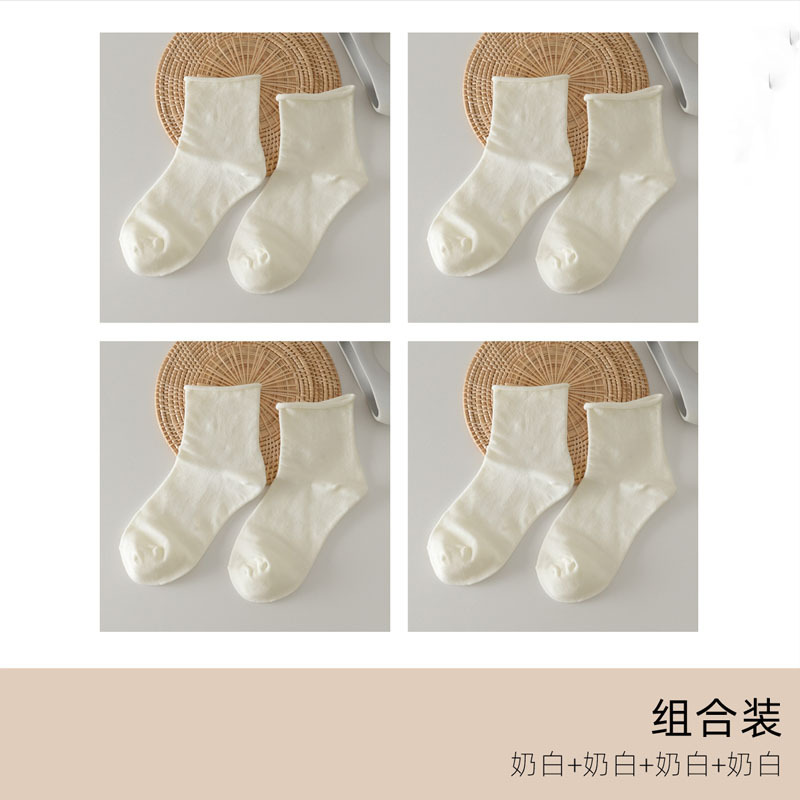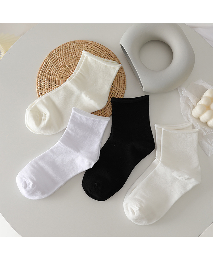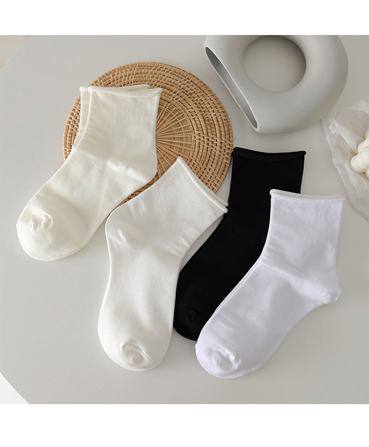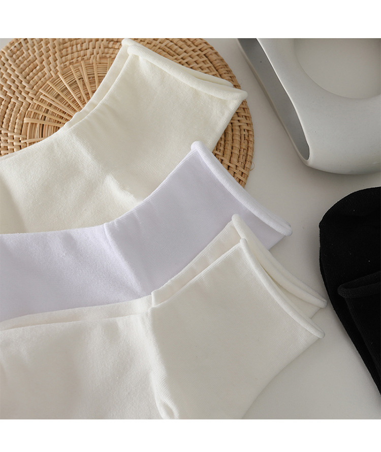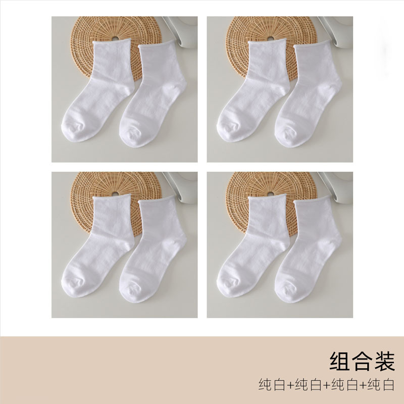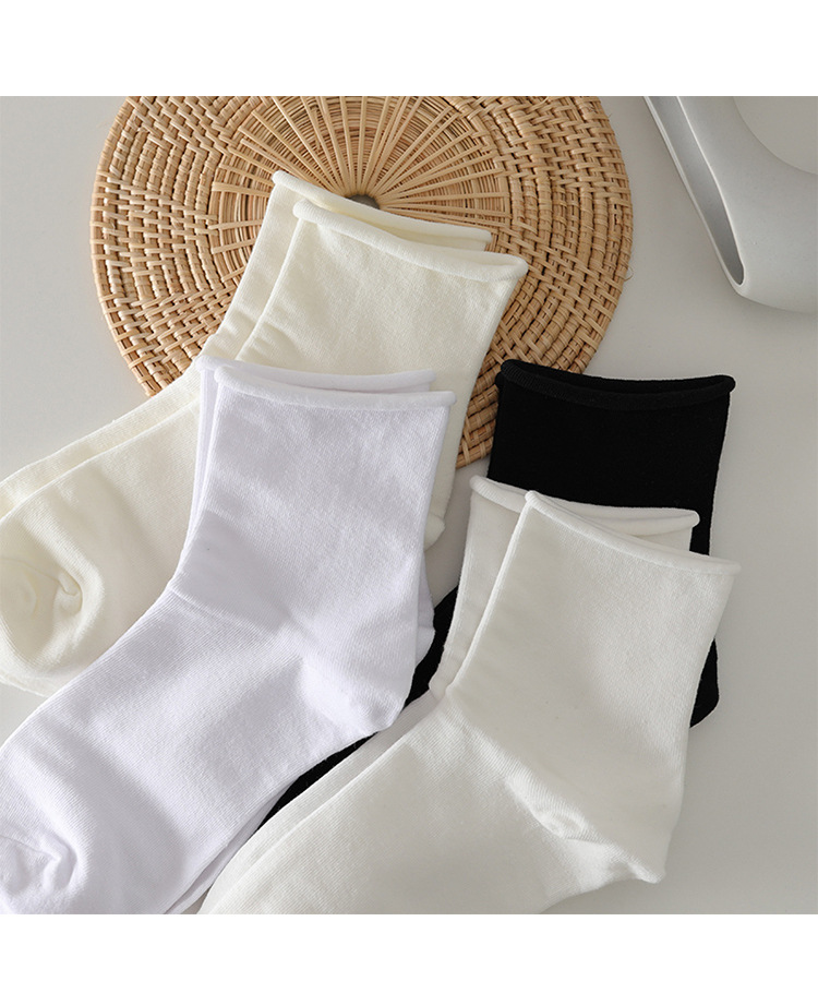 春秋款卷边中筒袜女士月子袜纯色日系白袜透气百搭薄款JK松口袜