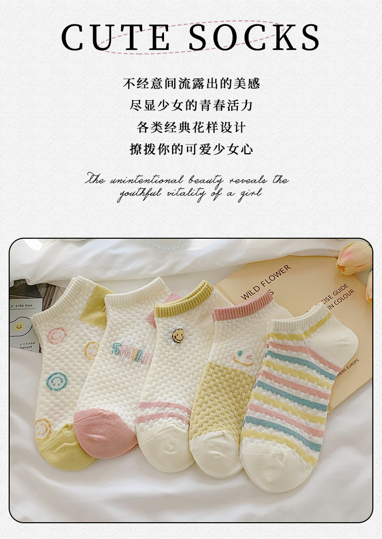 袜子女士春秋款低帮短袜日系学院风百搭透气防臭学生船袜卡通可爱