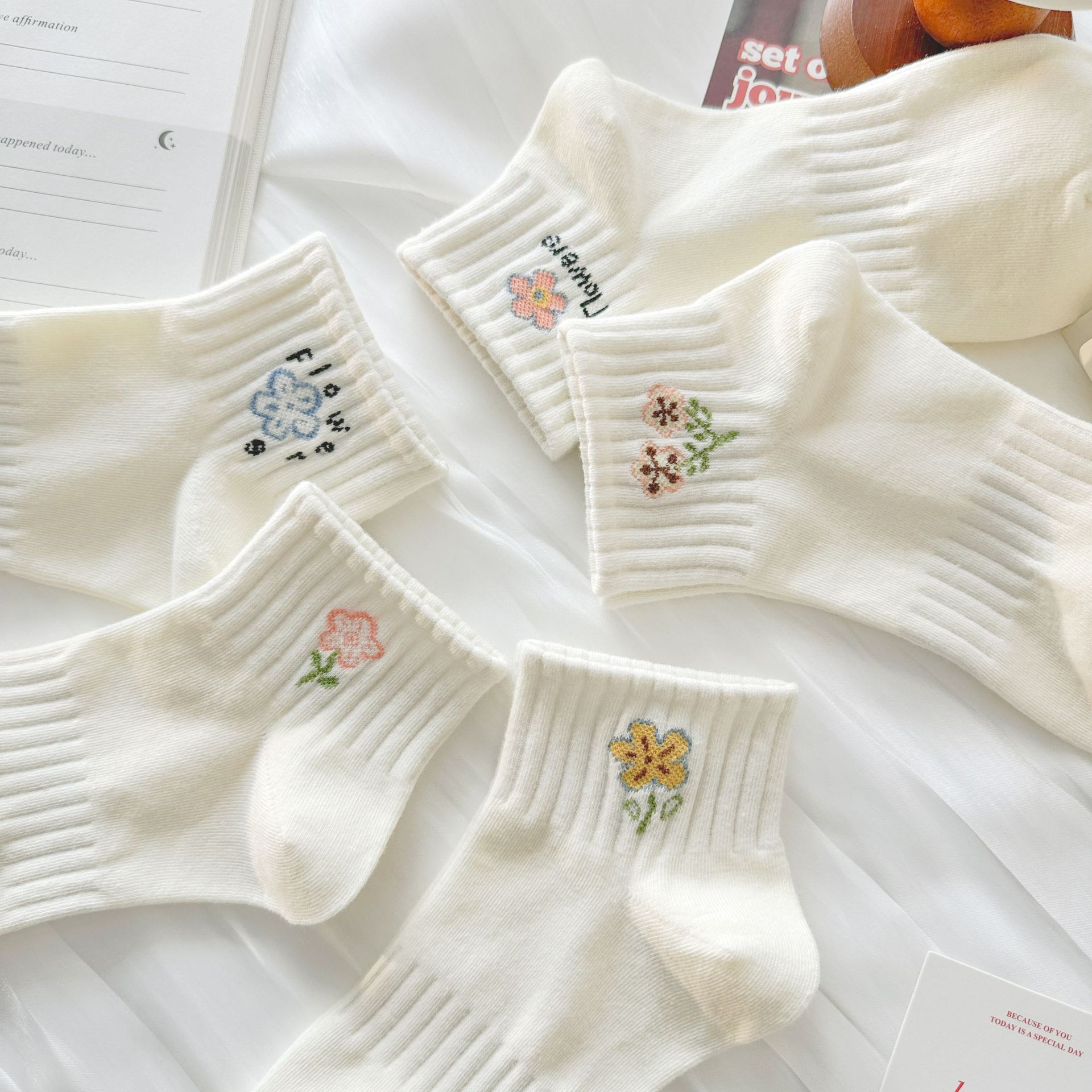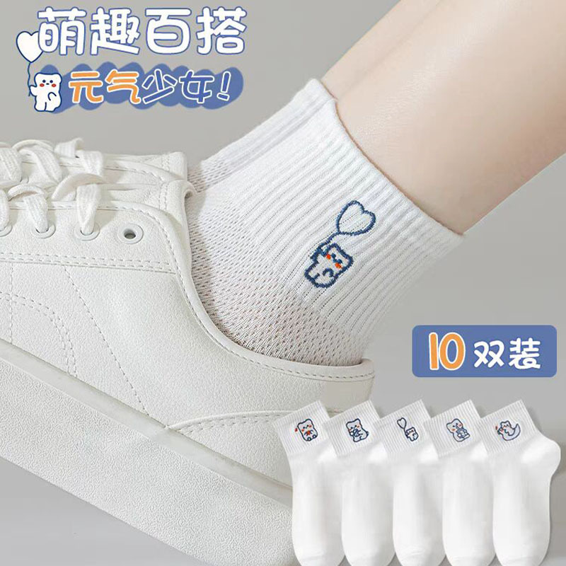 袜子女中筒袜夏季薄款网眼透气ins潮百搭低帮森系卡通中短筒