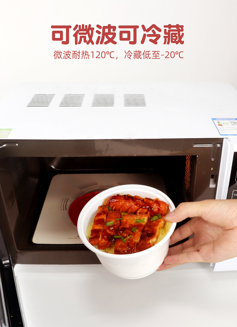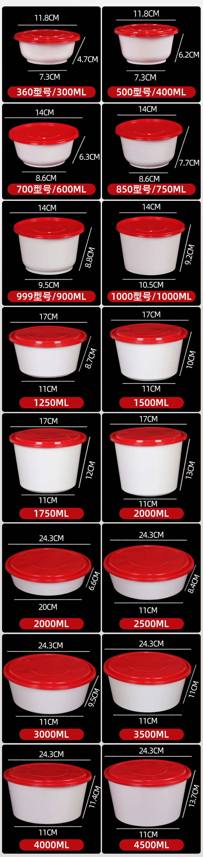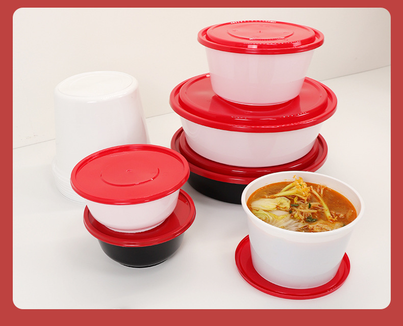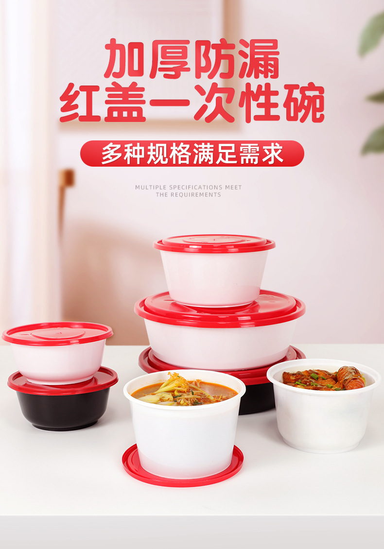 一次性餐盒外卖打包盒圆形碗红白带盖加厚食品级微波冷藏一件起批
