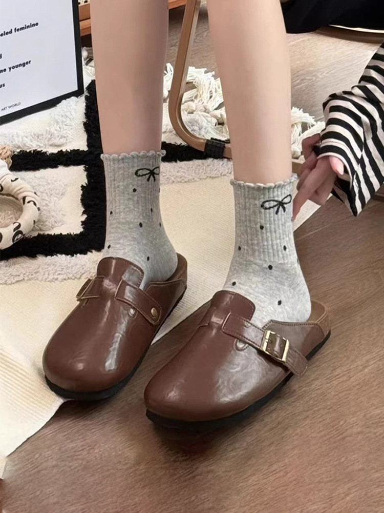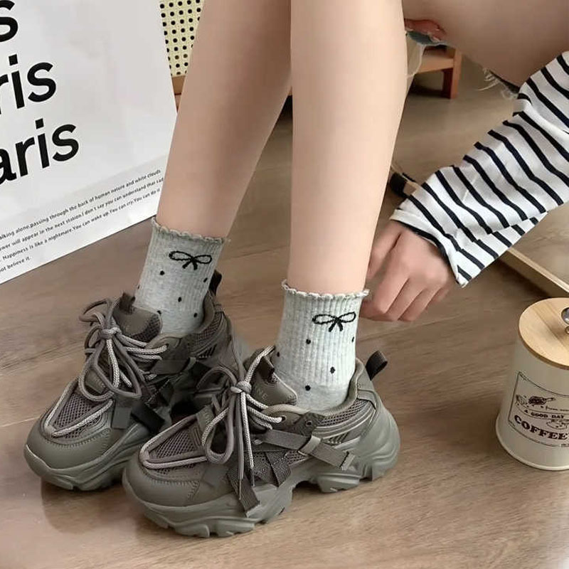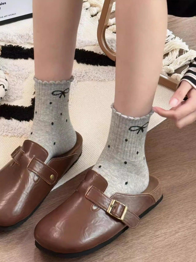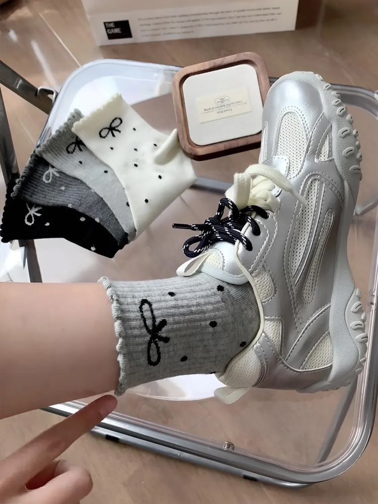 新款波点蝴蝶结春秋新款堆堆袜子in长筒袜日系网红中筒女袜花边