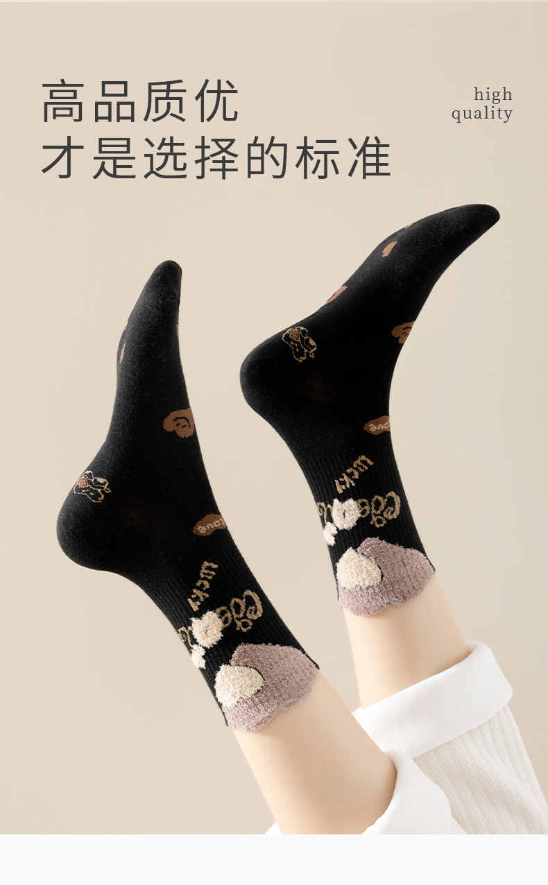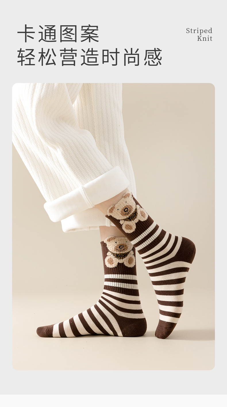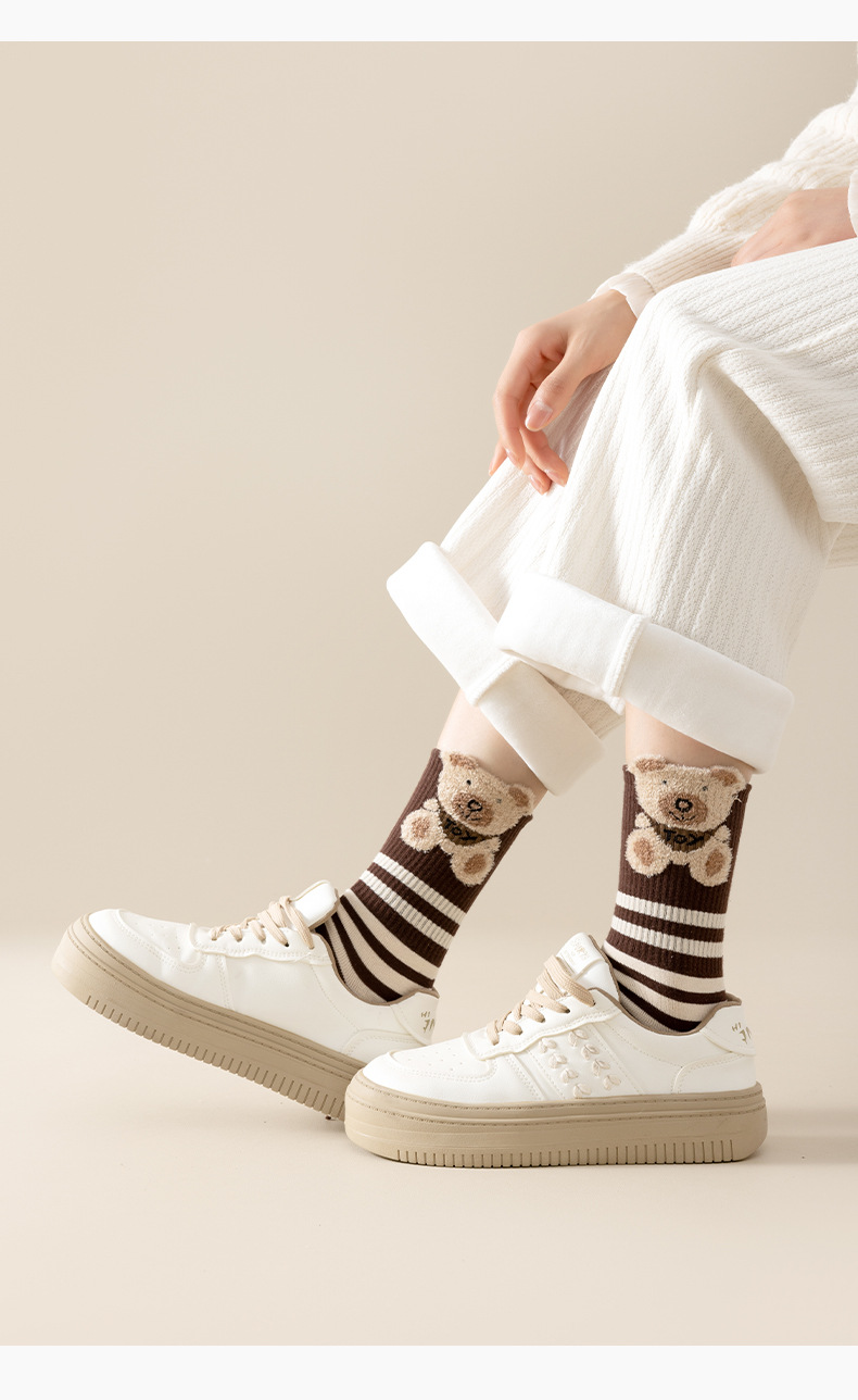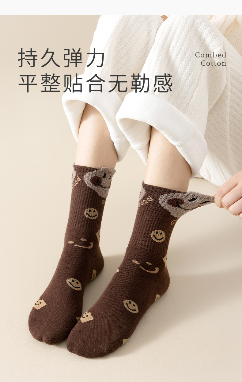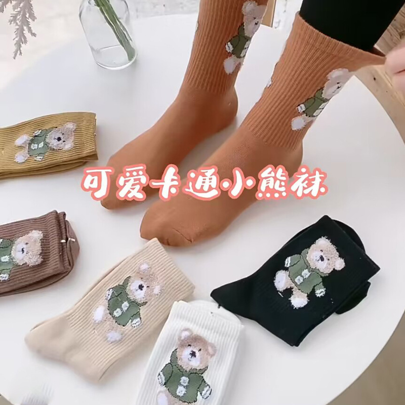 卡通咖啡色可爱毛绒小熊袜子女中筒长袜秋冬季保暖ins潮网红日系