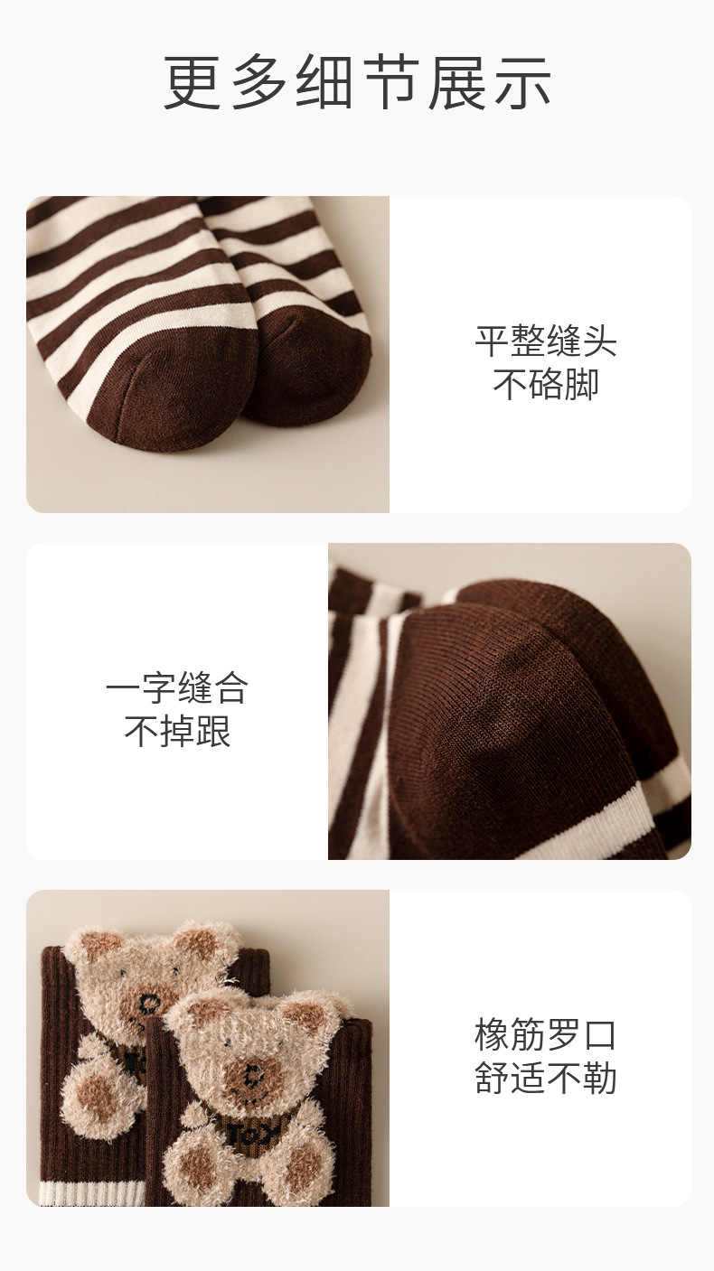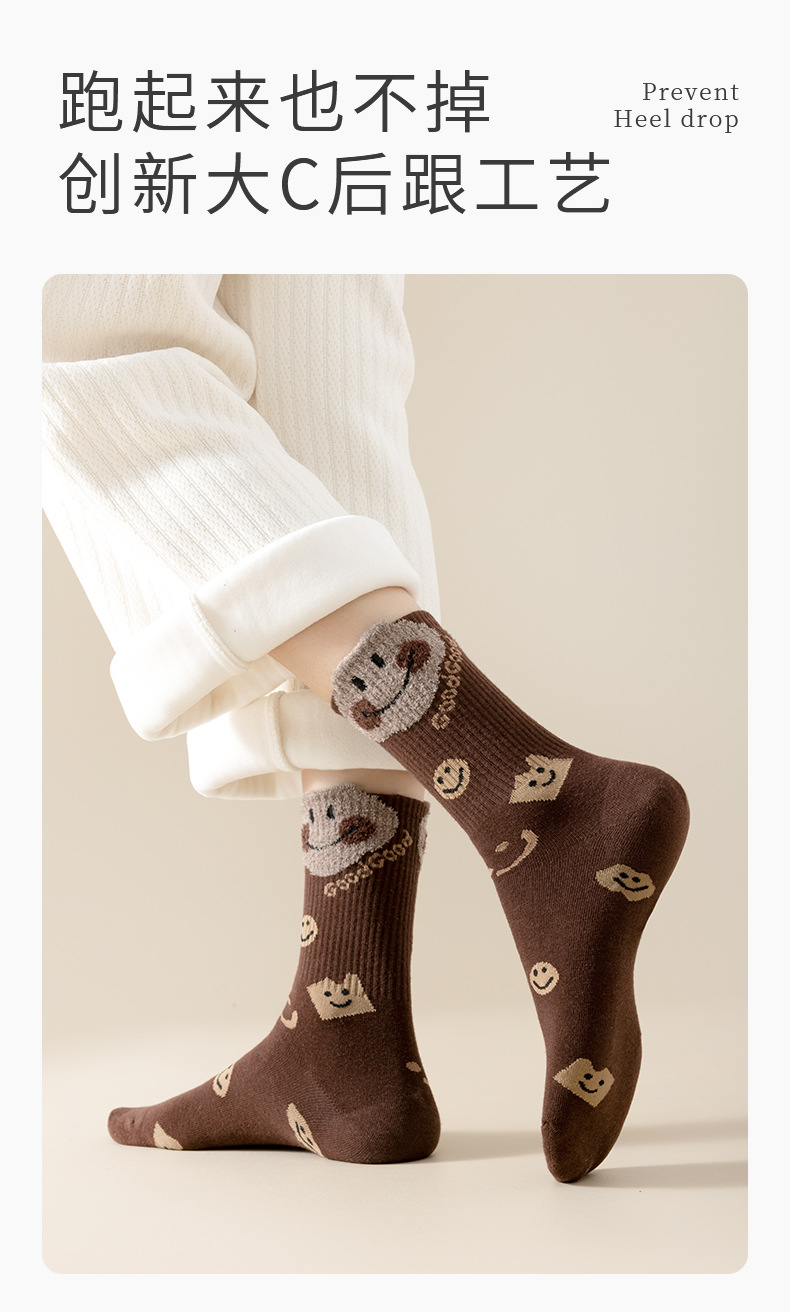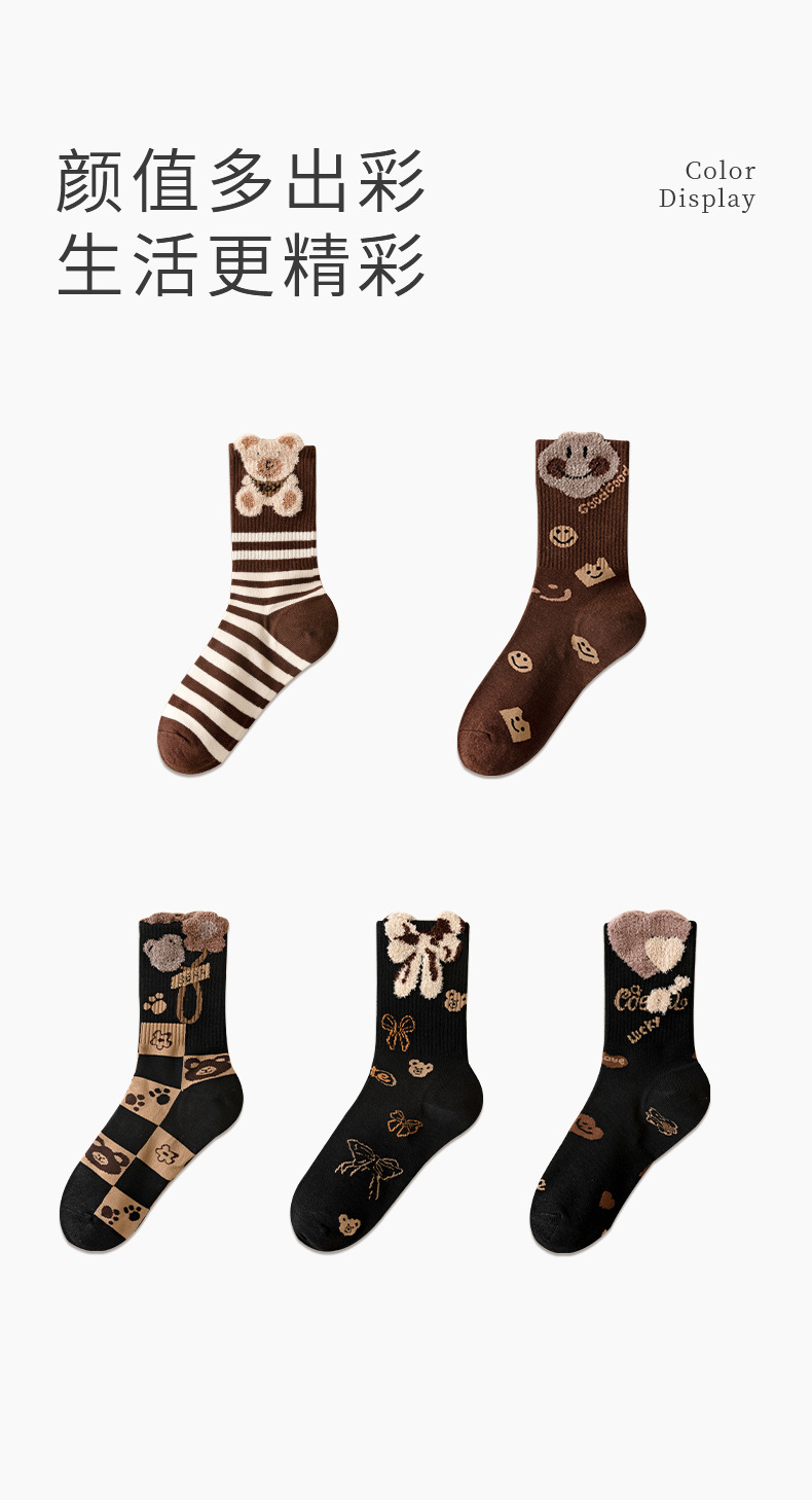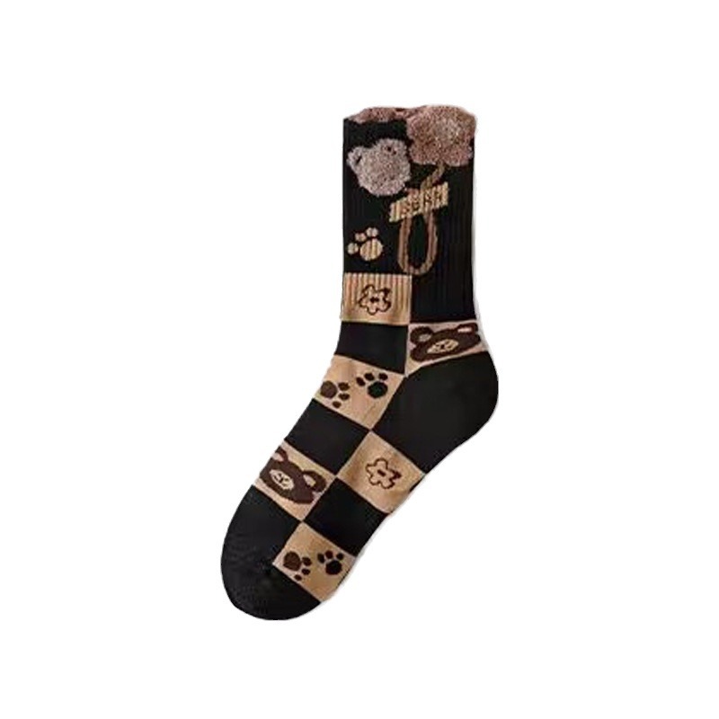 卡通咖啡色可爱毛绒小熊袜子女中筒长袜秋冬季保暖ins潮网红日系