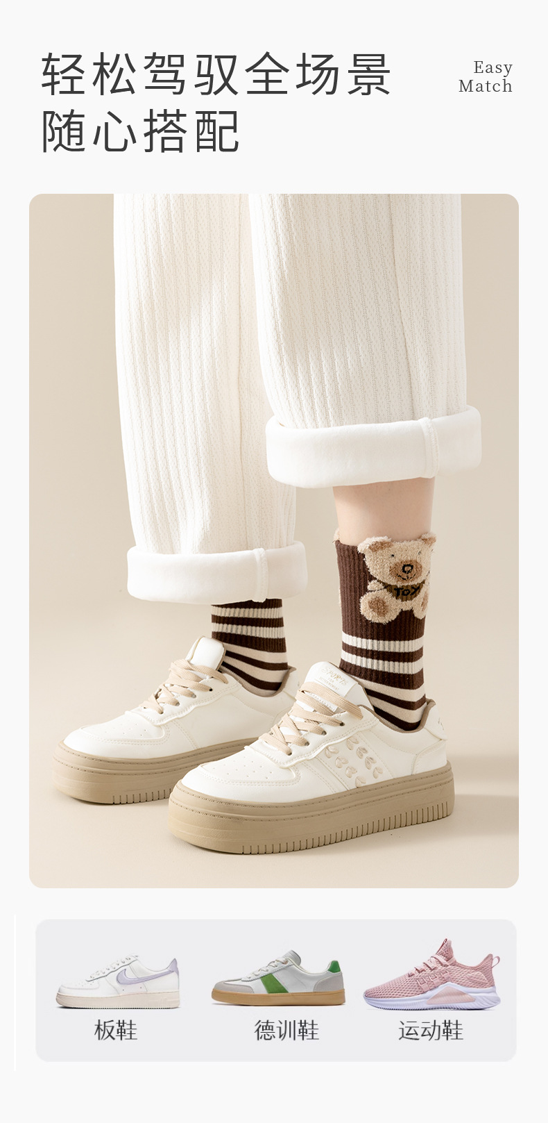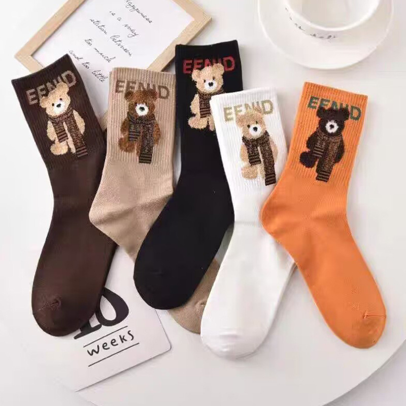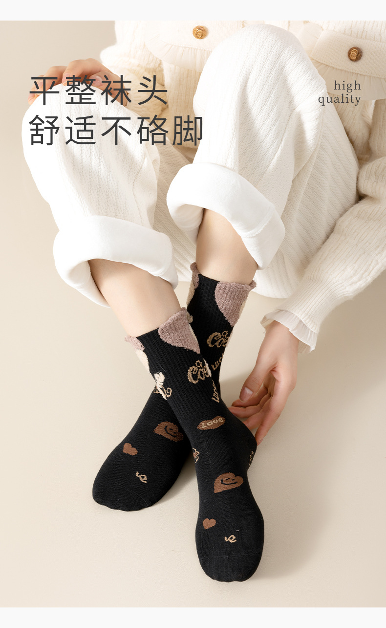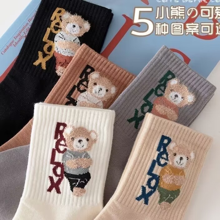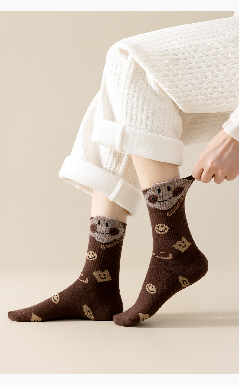 卡通咖啡色可爱毛绒小熊袜子女中筒长袜秋冬季保暖ins潮网红日系