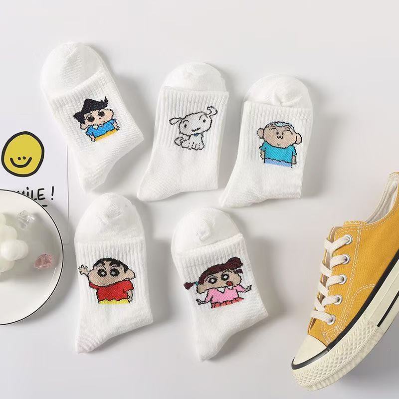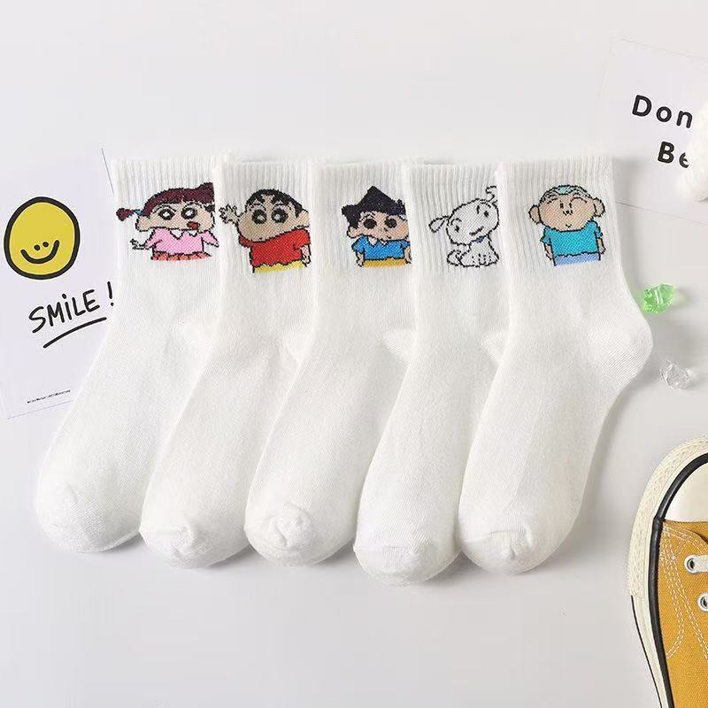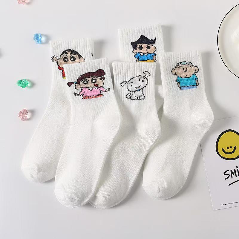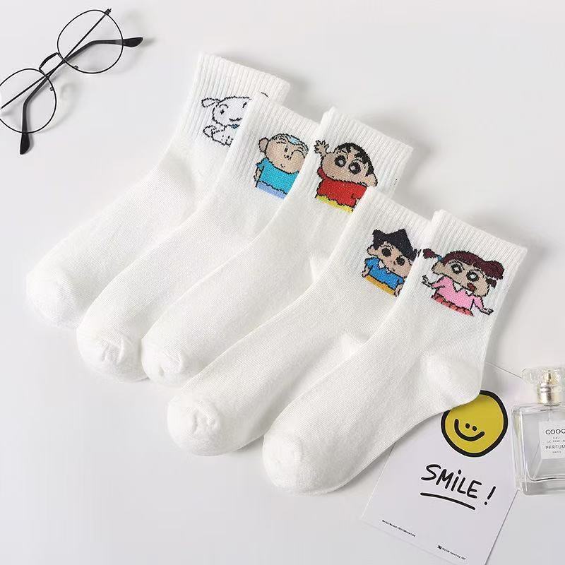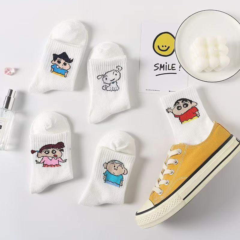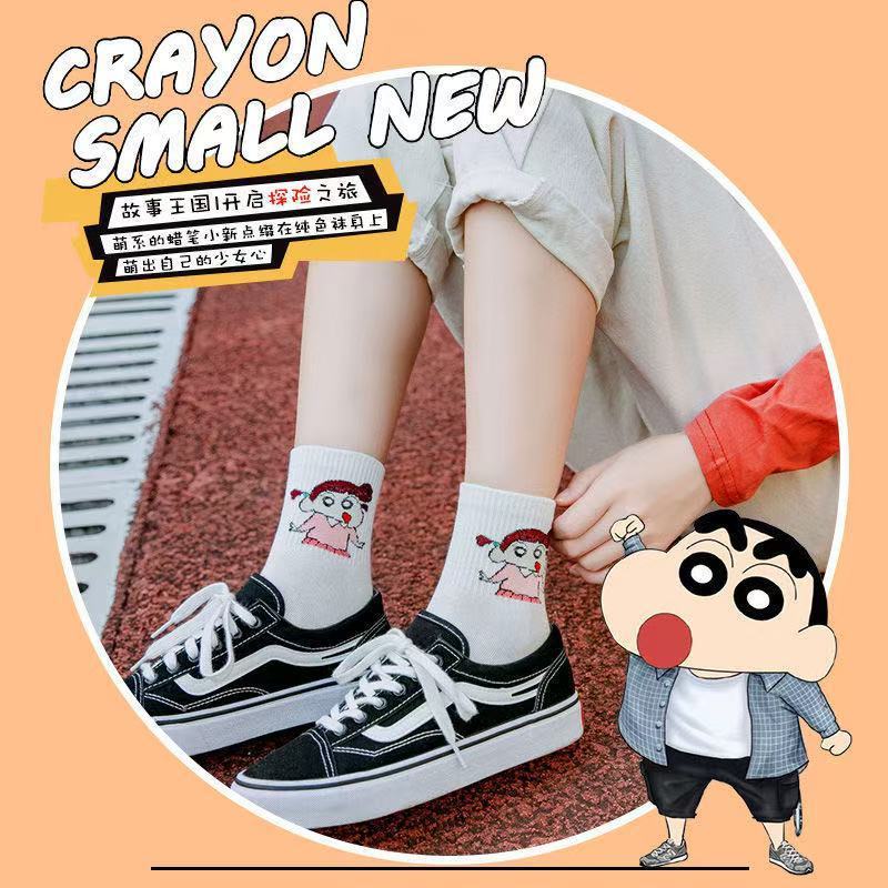 诸暨袜子女卡通蜡笔小新中筒韩版可爱中筒ins潮百搭学生日系运动