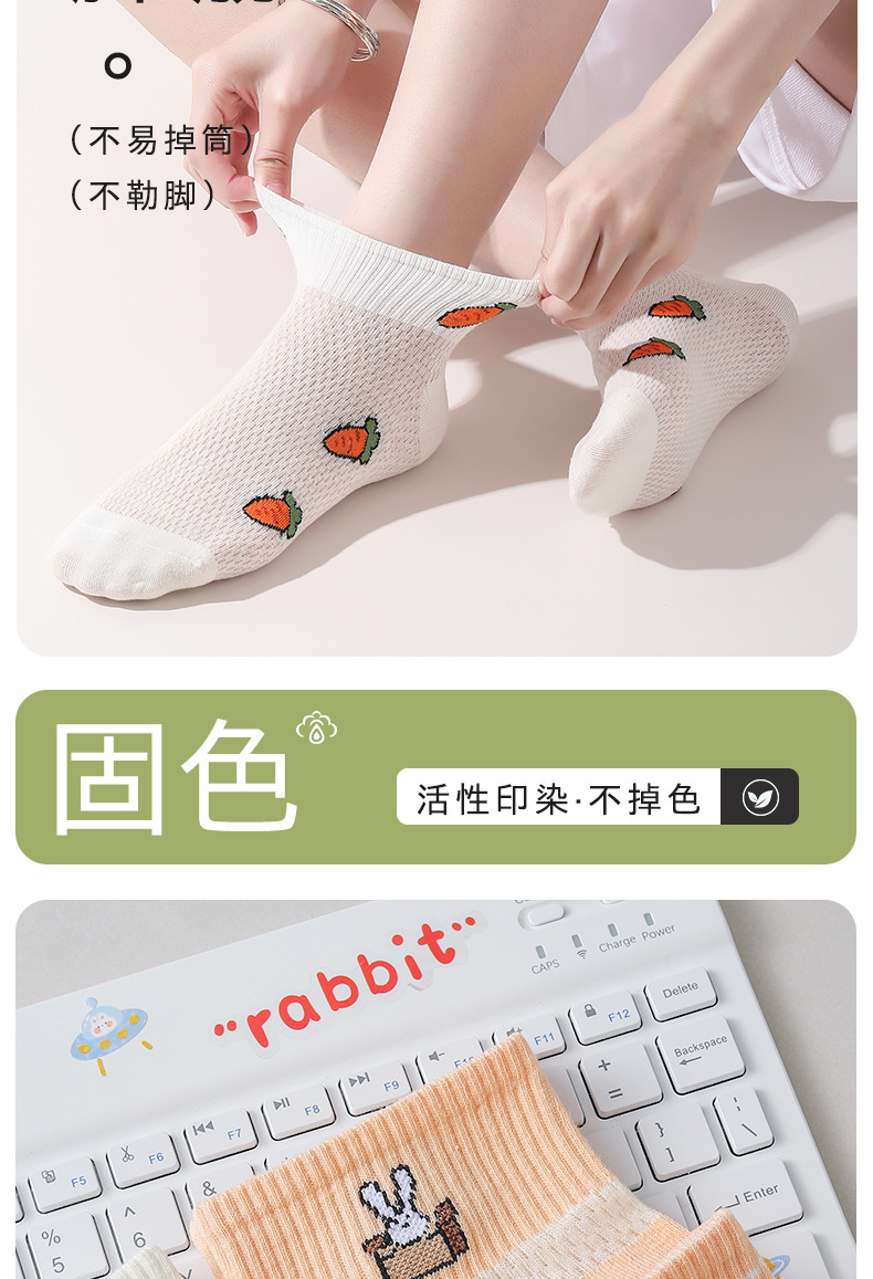 【厂家直销】袜子女春夏网眼薄款吸汗透气学生浅粉韩版日系镂空