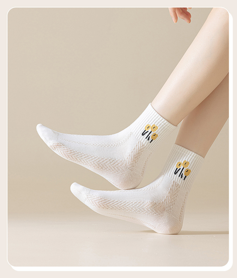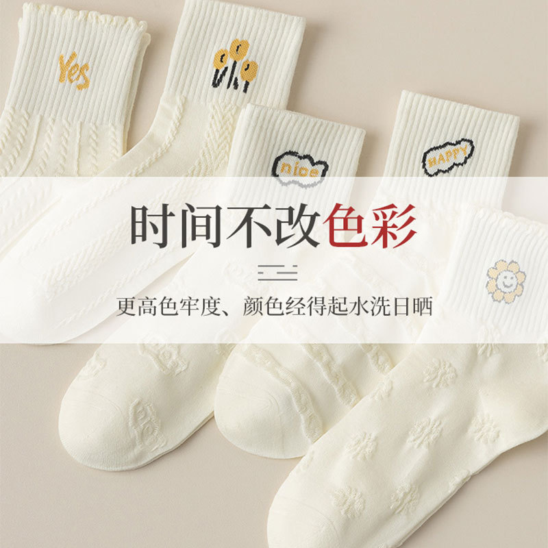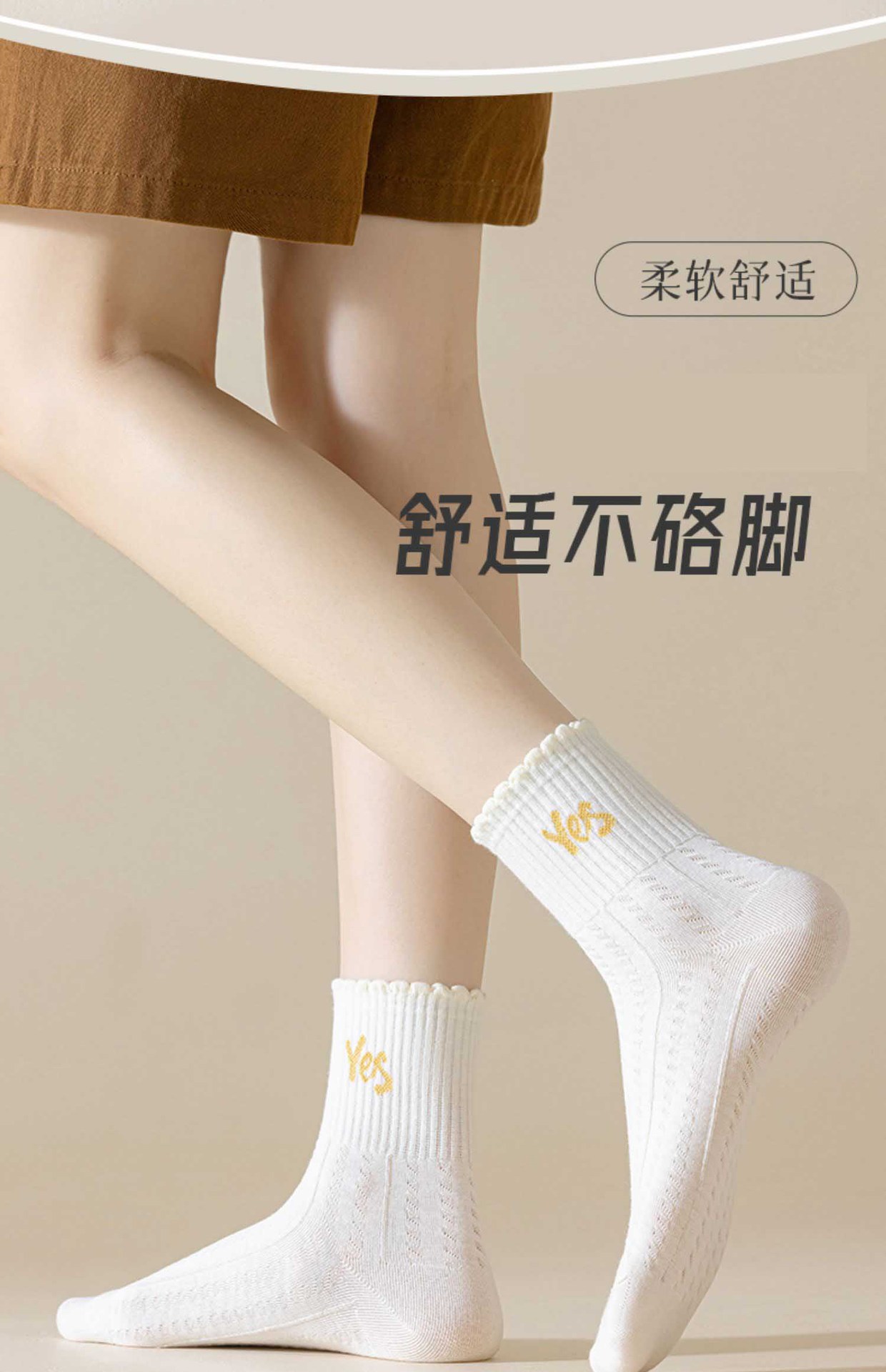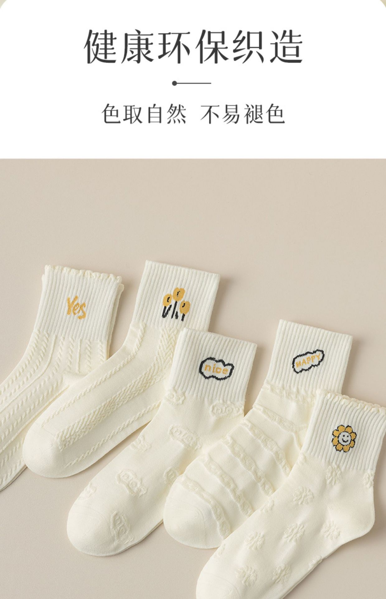 秋季新款女士中筒袜薄款学院风潮暗纹浮雕女士袜子吸汗透气长袜
