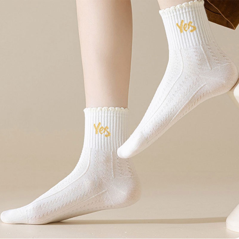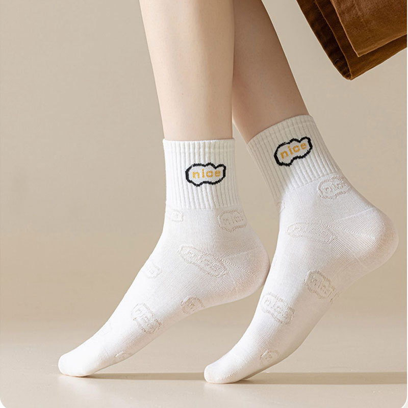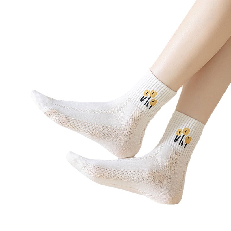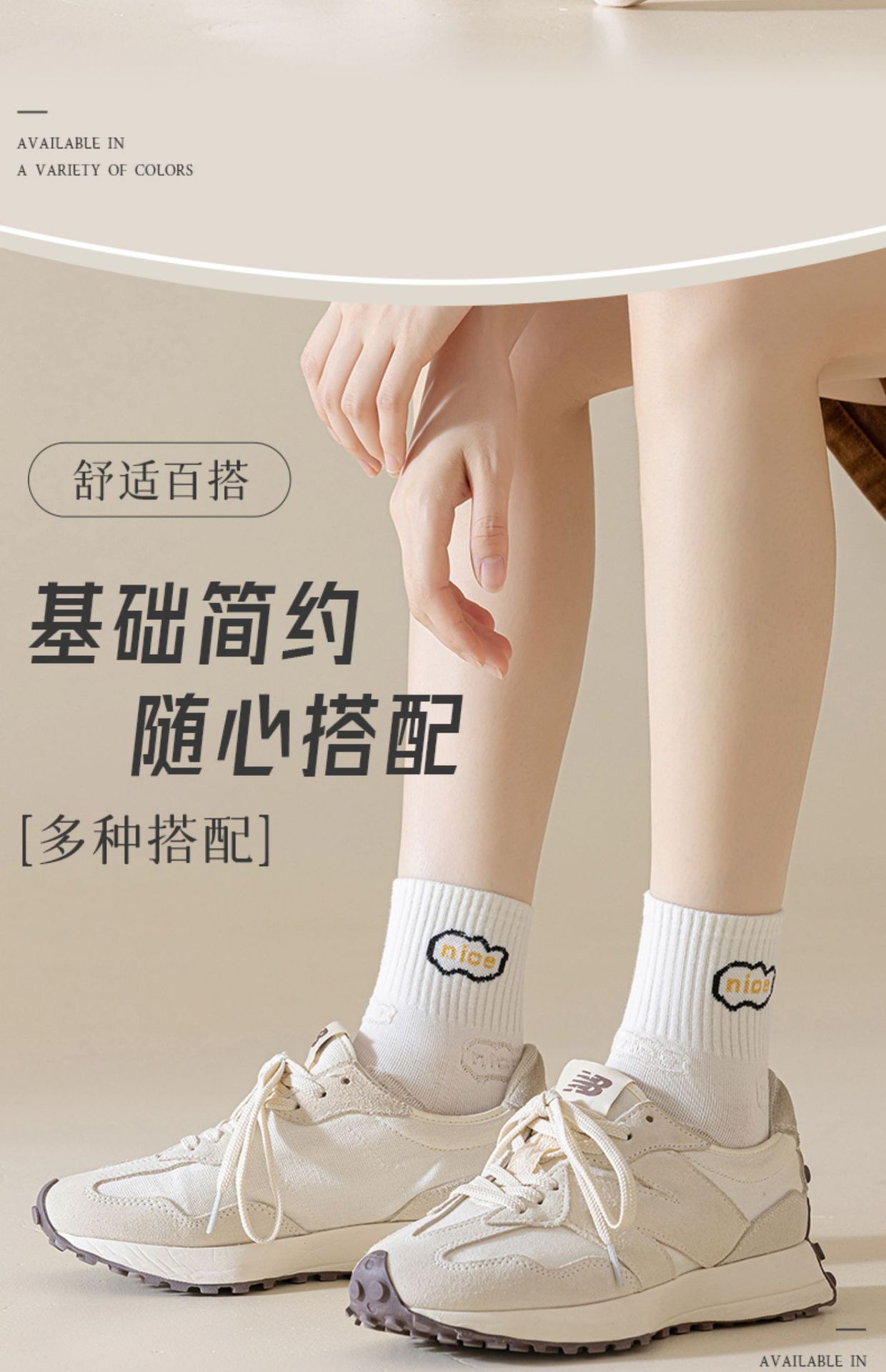 秋季新款女士中筒袜薄款学院风潮暗纹浮雕女士袜子吸汗透气长袜