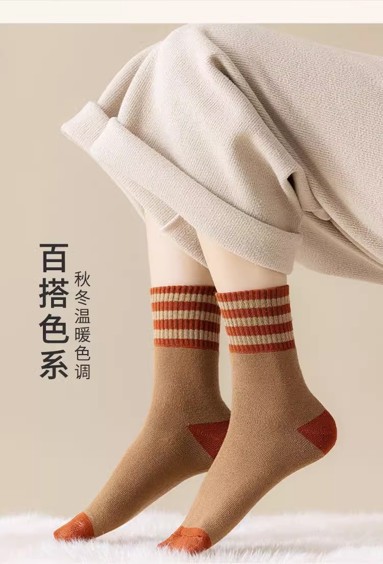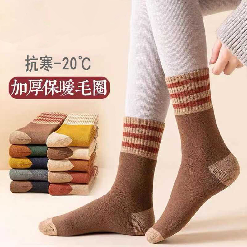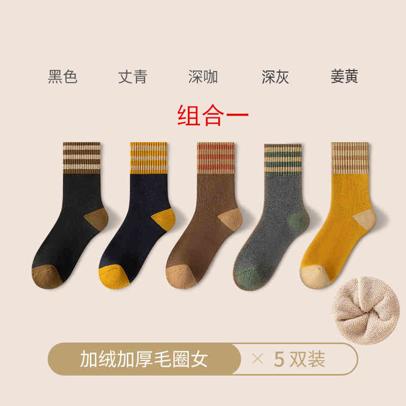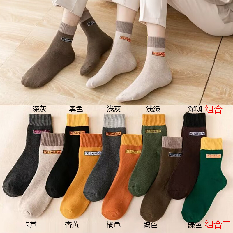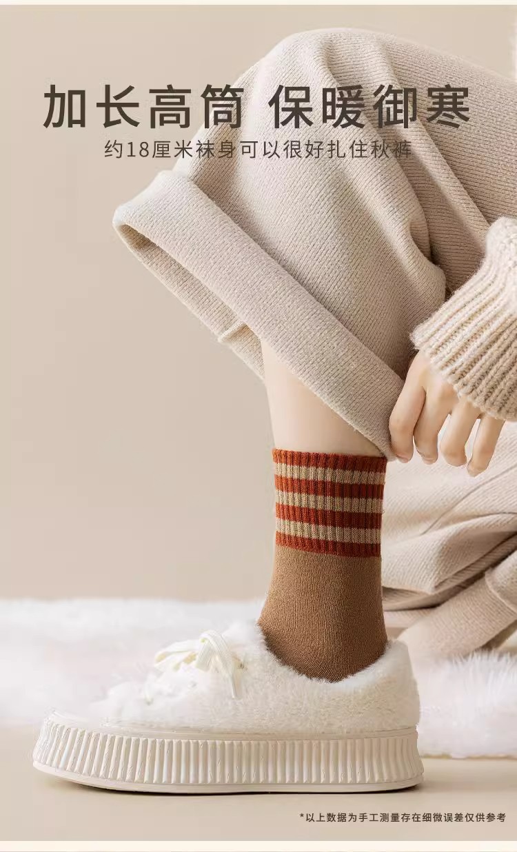 加厚加绒袜子男女同款中筒袜秋冬季长筒袜冬天男士保暖潮流长袜