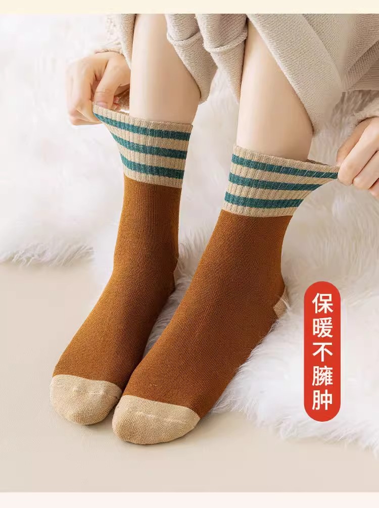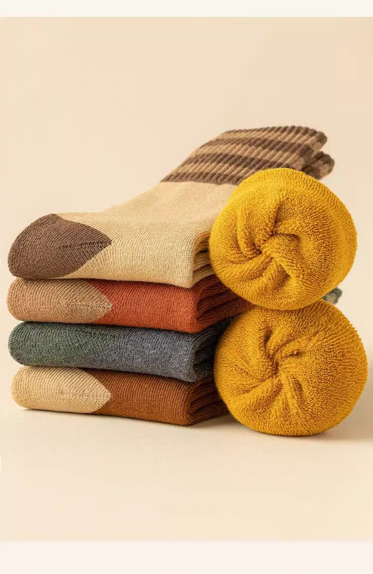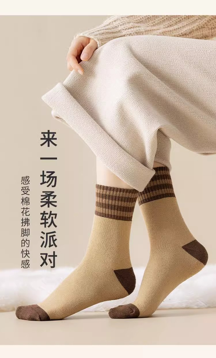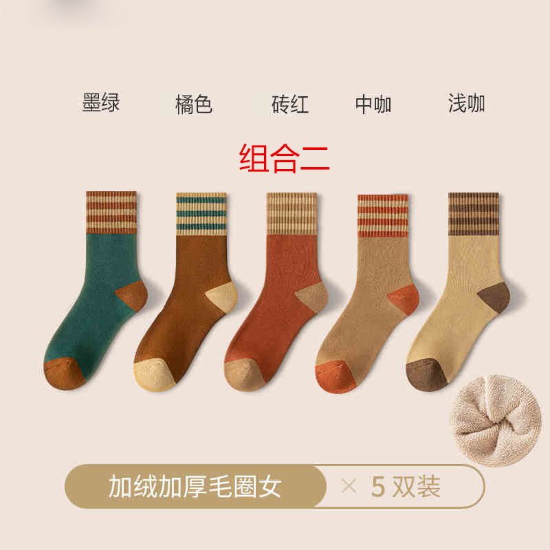 加厚加绒袜子男女同款中筒袜秋冬季长筒袜冬天男士保暖潮流长袜