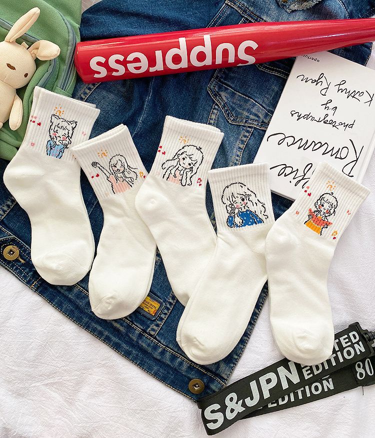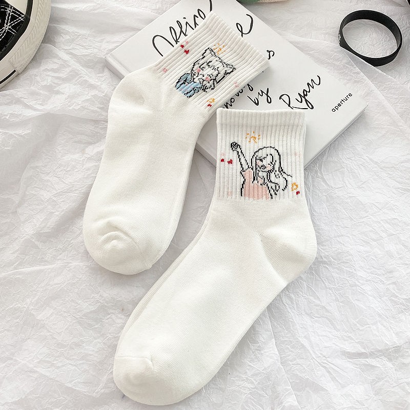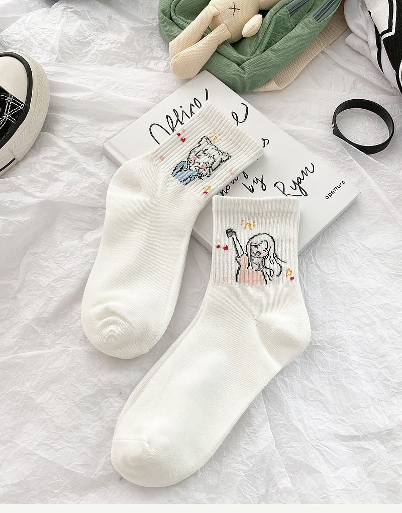 袜子女原创中筒袜ins潮百搭韩版吸汗透气亲肤网红学院风可爱卡通