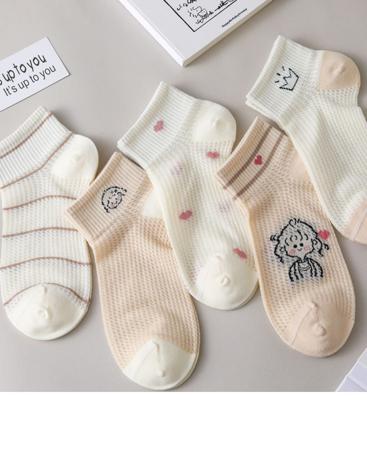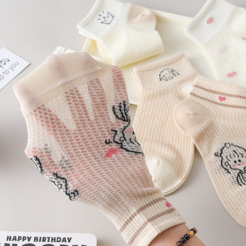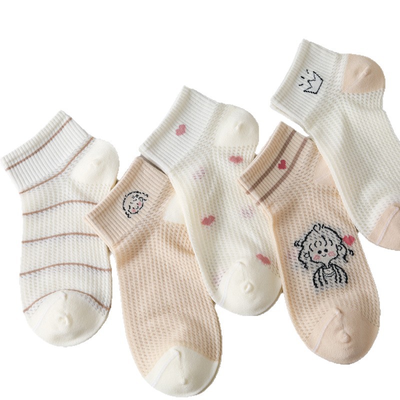 诸暨厂家袜子女船袜春夏季薄款公主少女学生网眼袜时尚爱心百搭