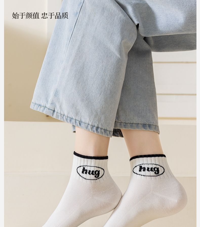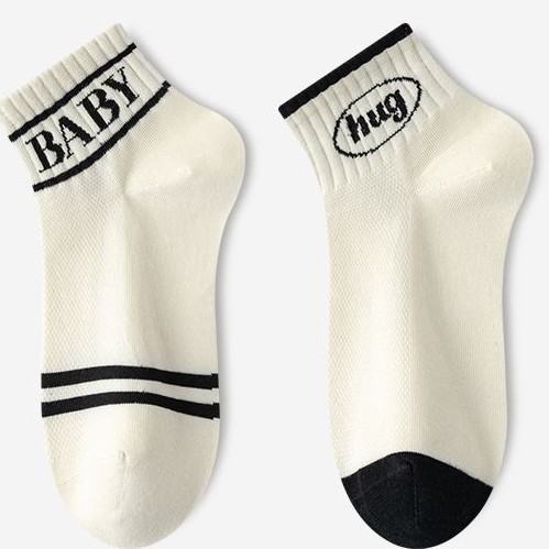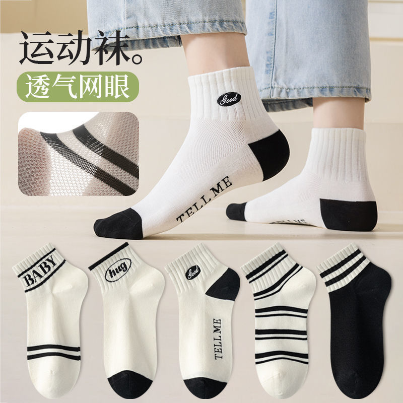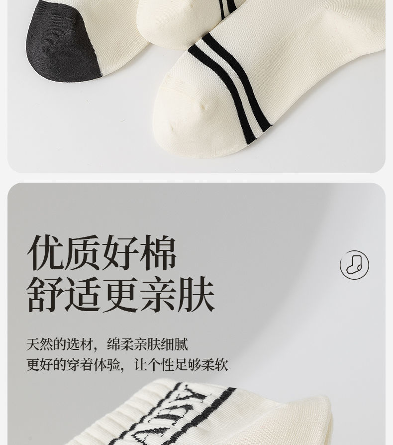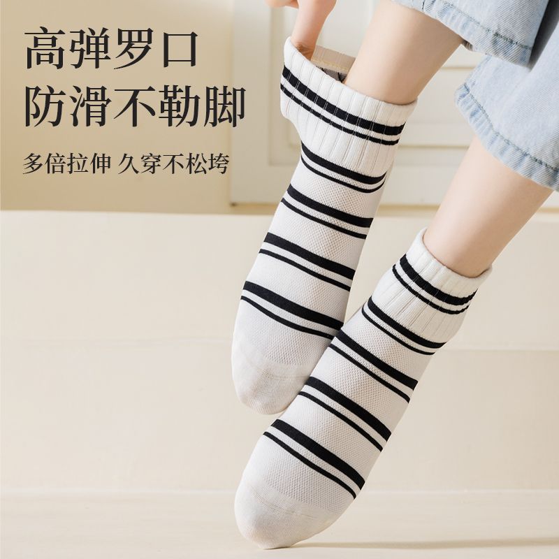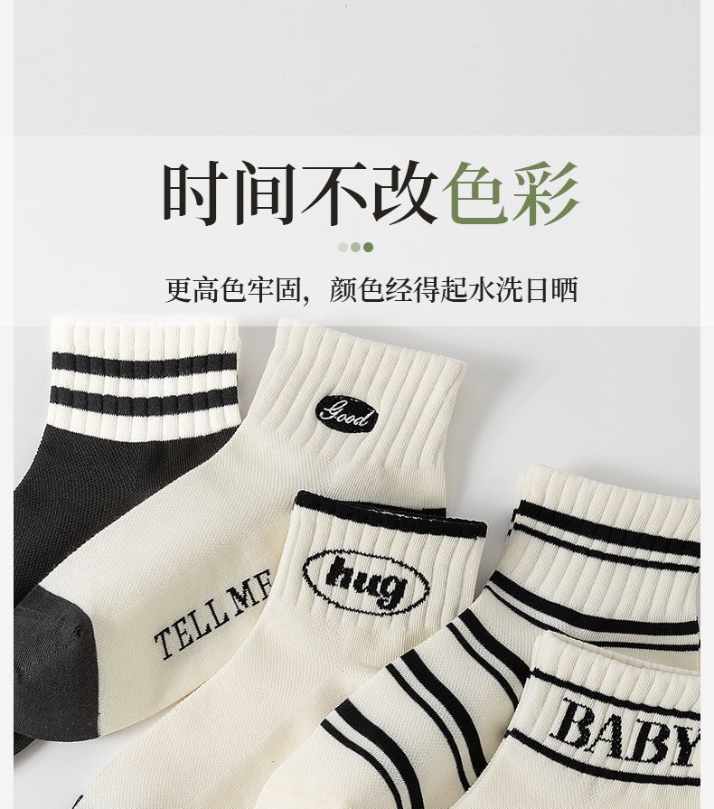 袜子女黑白条纹字母短袜时尚休闲学生防臭吸汗透气运动舒适百搭