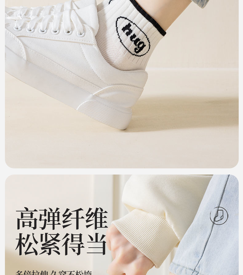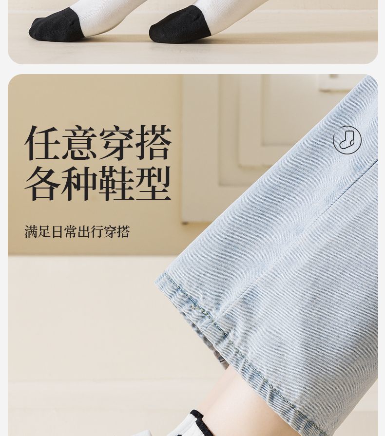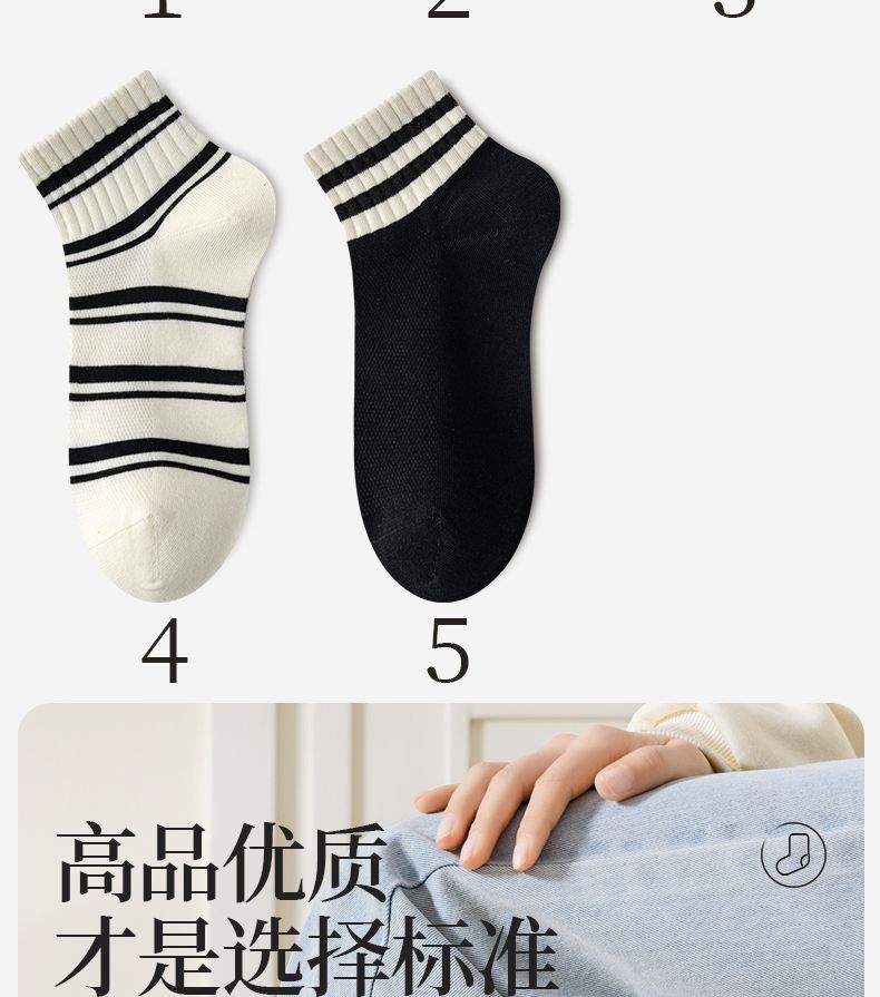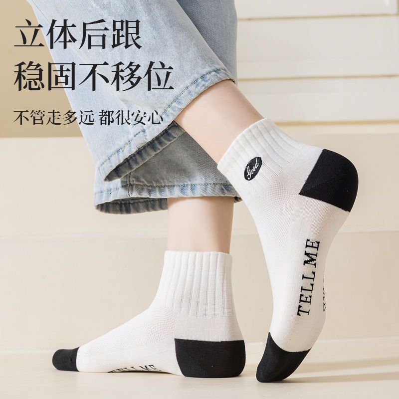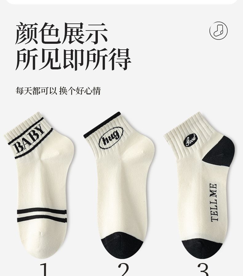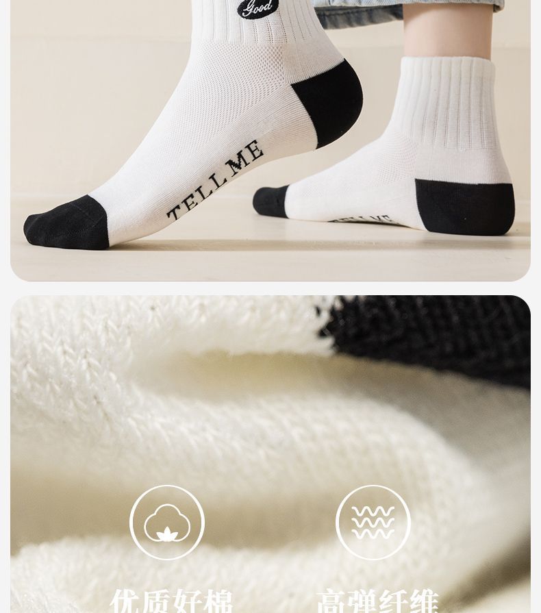 袜子女黑白条纹字母短袜时尚休闲学生防臭吸汗透气运动舒适百搭