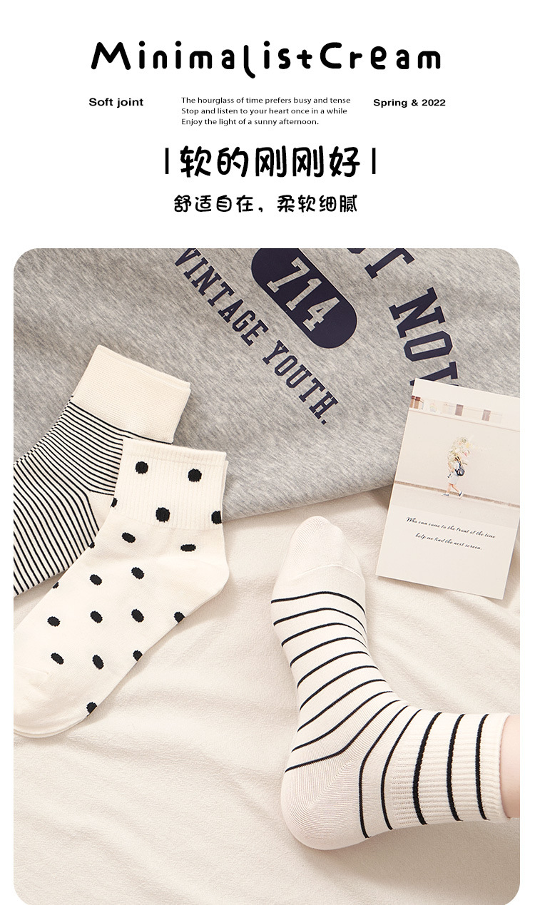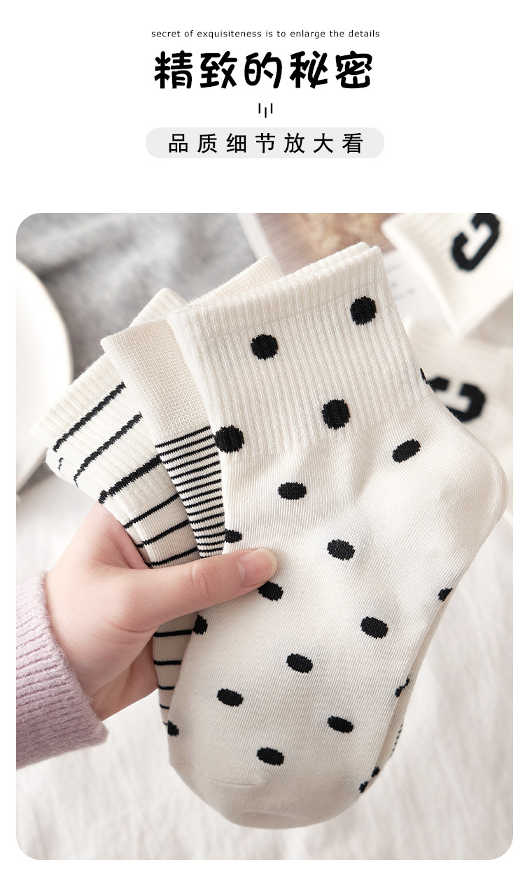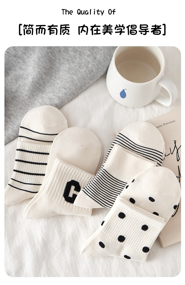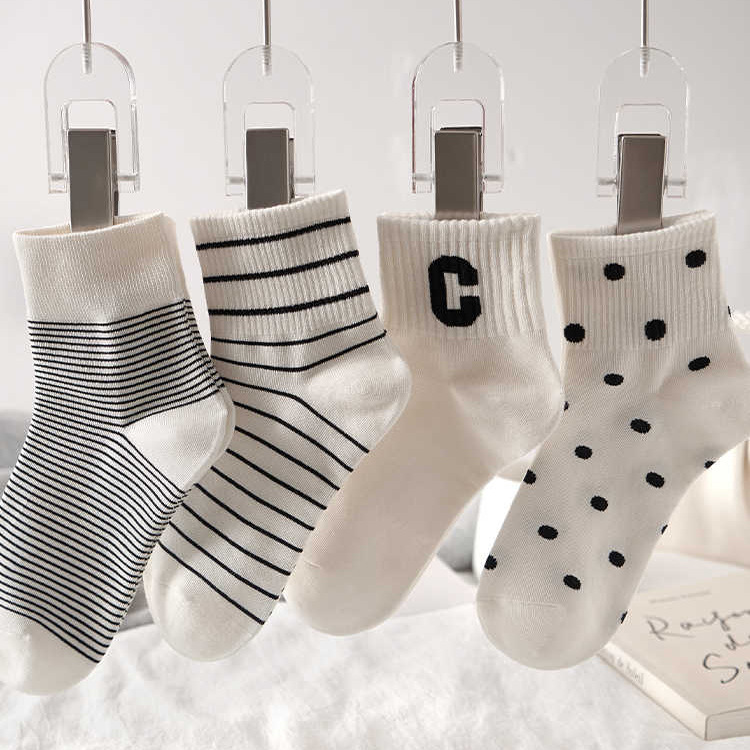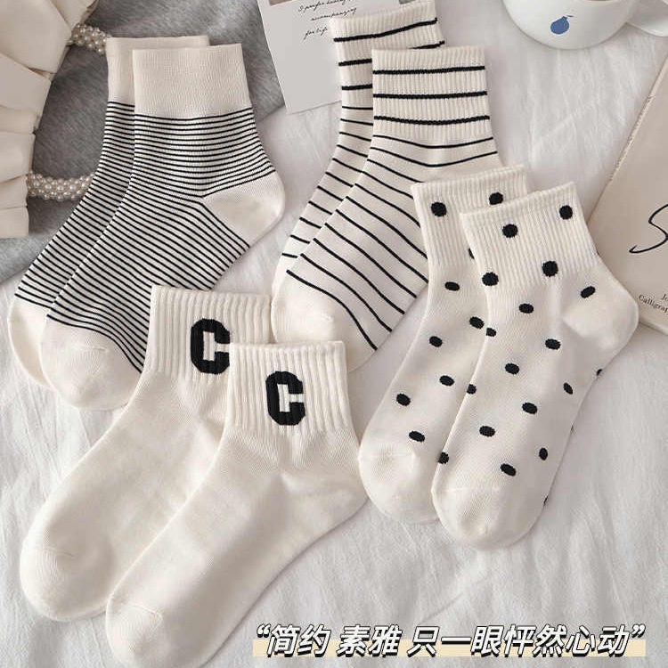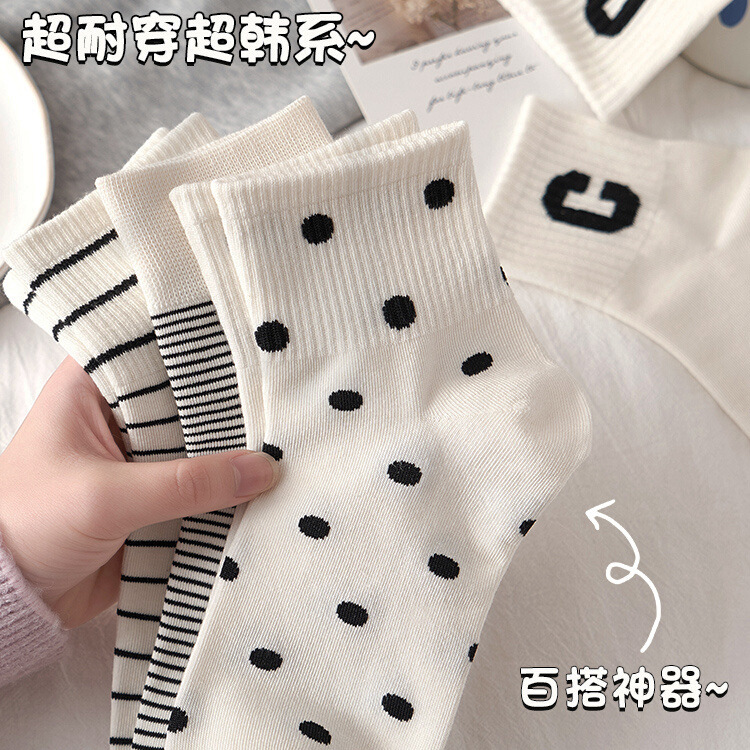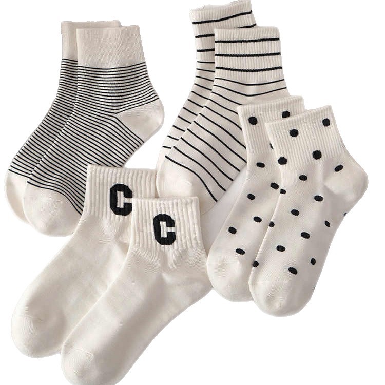 袜子女夏季薄款简约百搭字母波点日系条纹学院风吸汗透气短筒袜女
