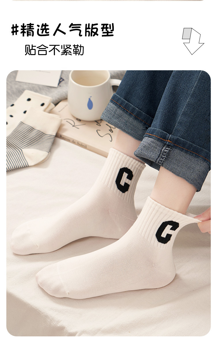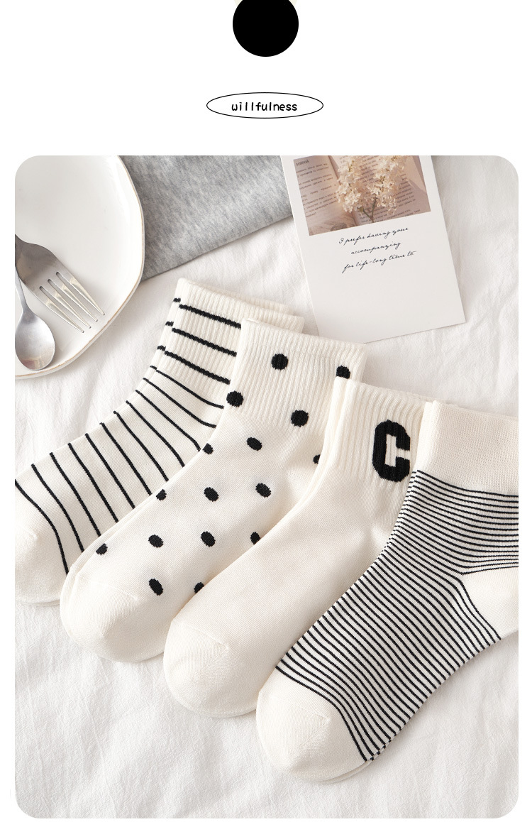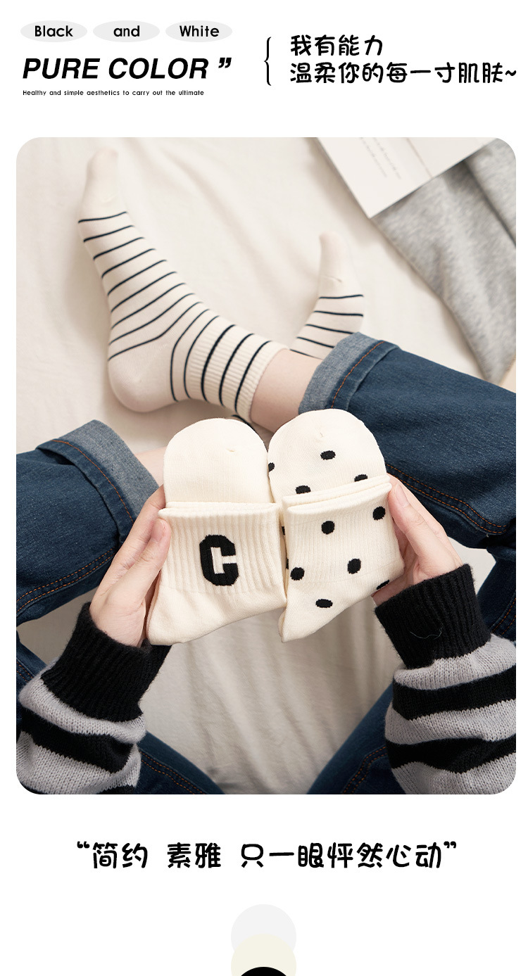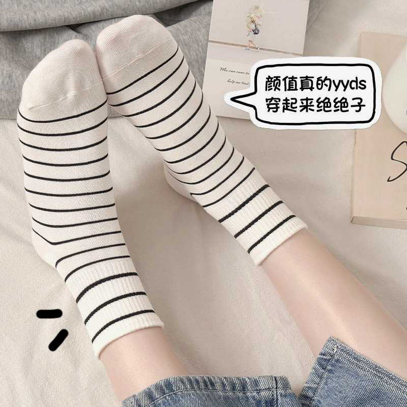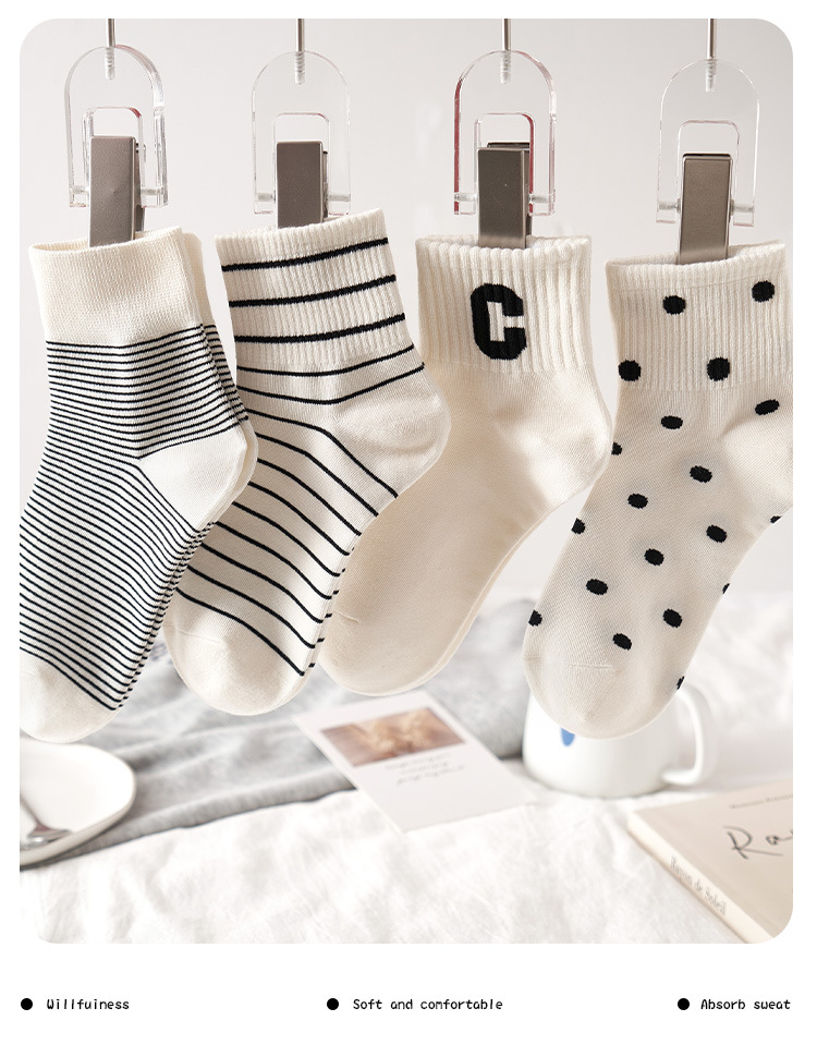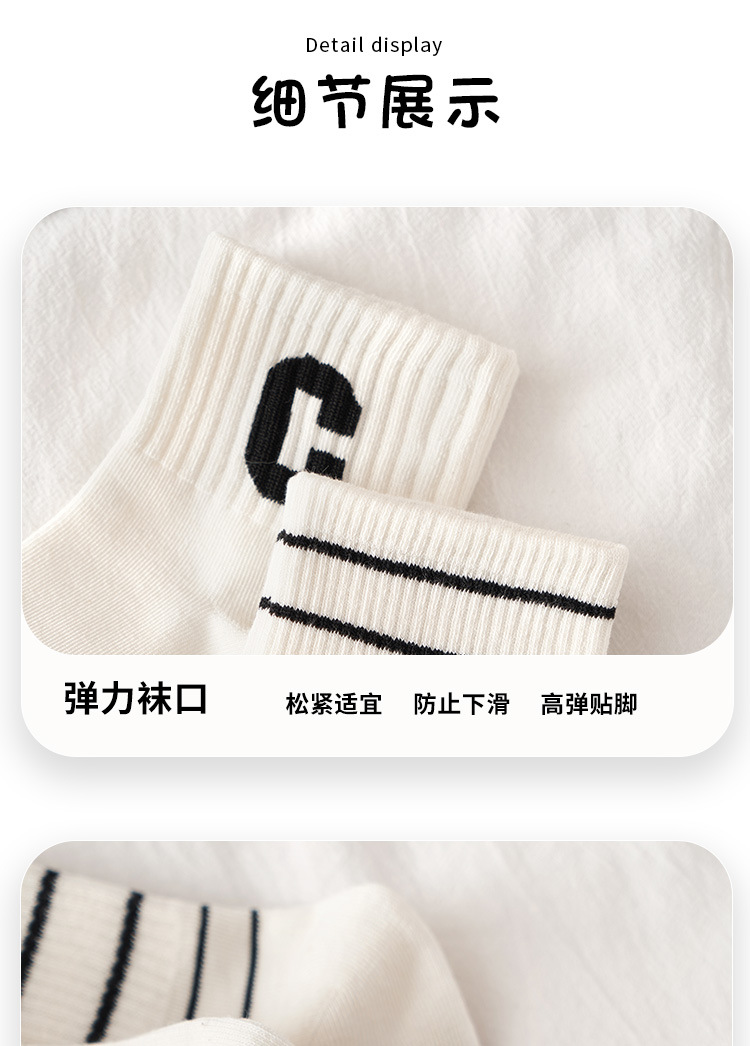 袜子女夏季薄款简约百搭字母波点日系条纹学院风吸汗透气短筒袜女