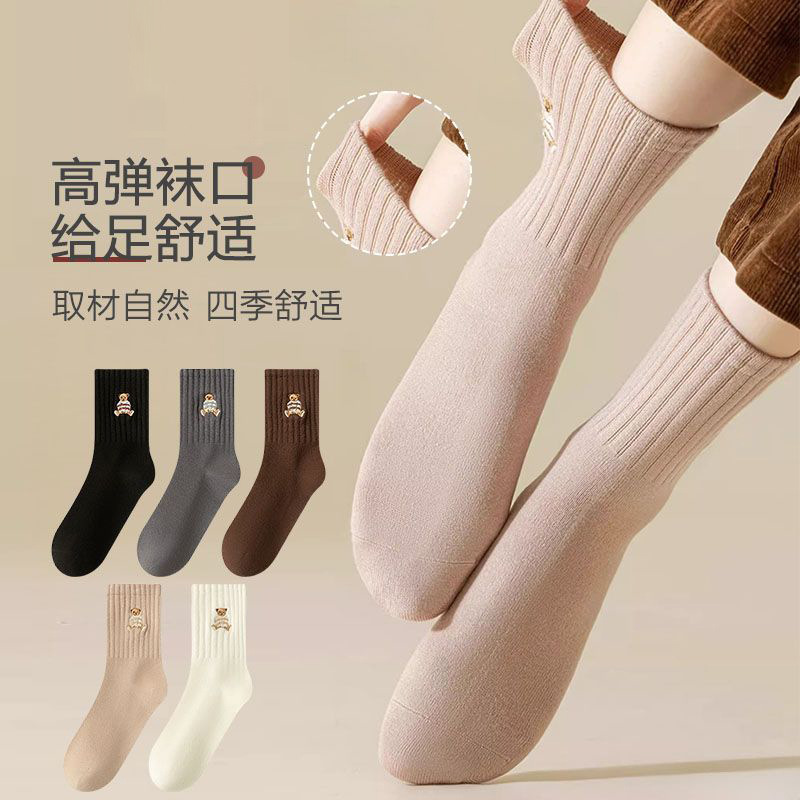 秋冬袜子女中筒袜透气吸汗防臭美拉德长袜ins潮百搭卡通可爱新款