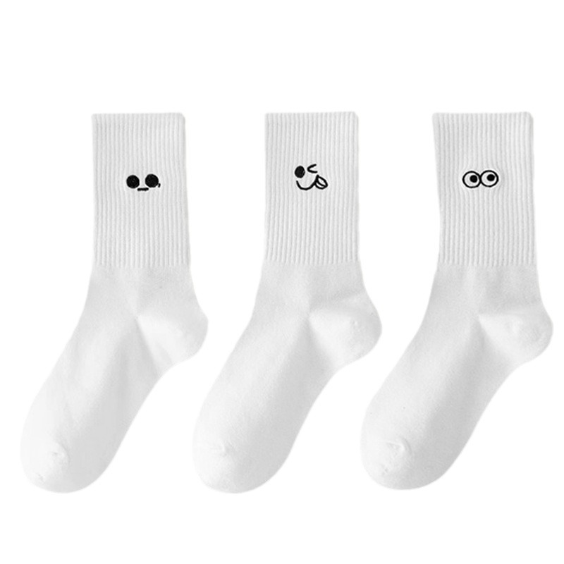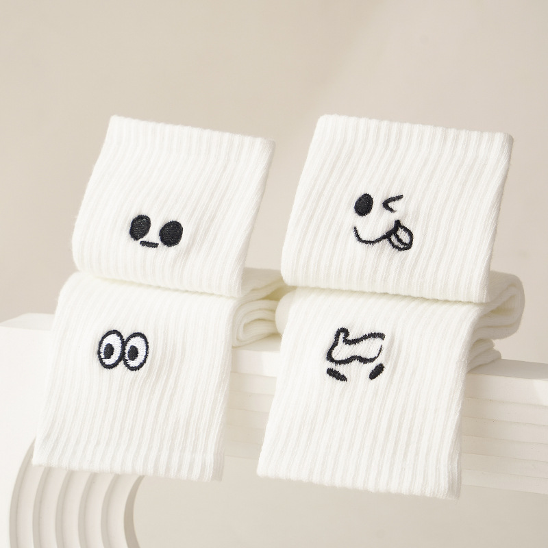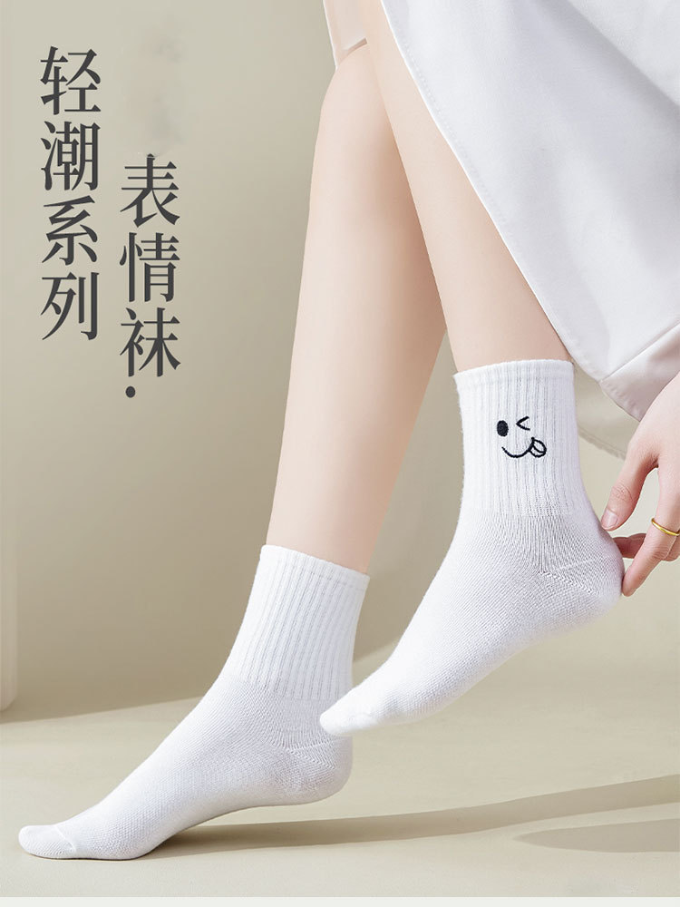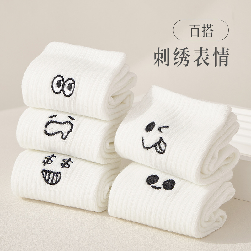 秋冬季袜子女白色搞怪表情防臭透气中筒袜潮流休闲学院风情侣袜子