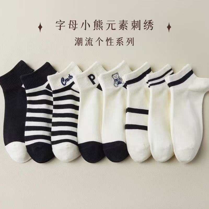 袜子女浅口条纹可爱甜美舒适吸汗透气学院风ins潮百搭字母时尚