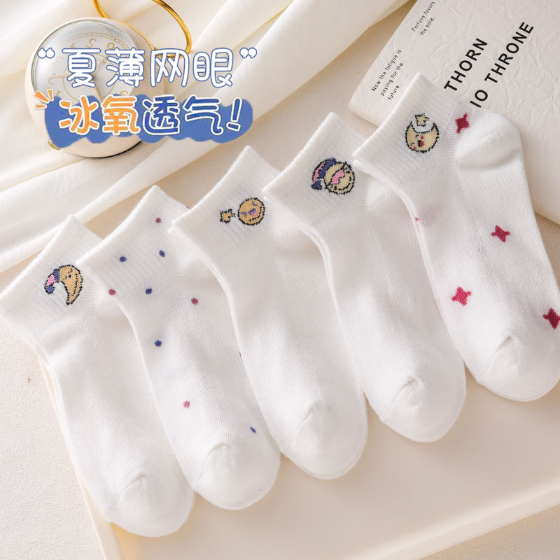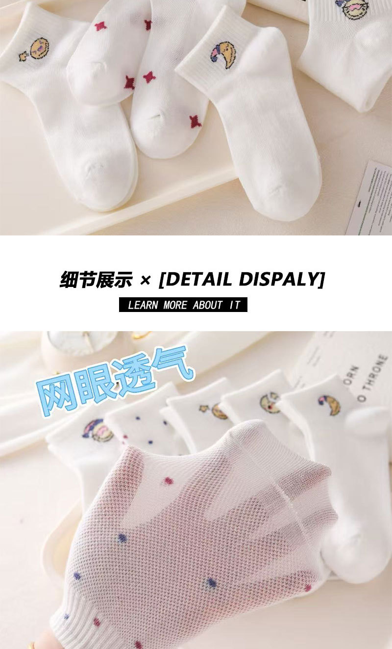 诸暨袜子女短袜新品原创春夏网眼薄款可爱卡通百搭时尚学院风