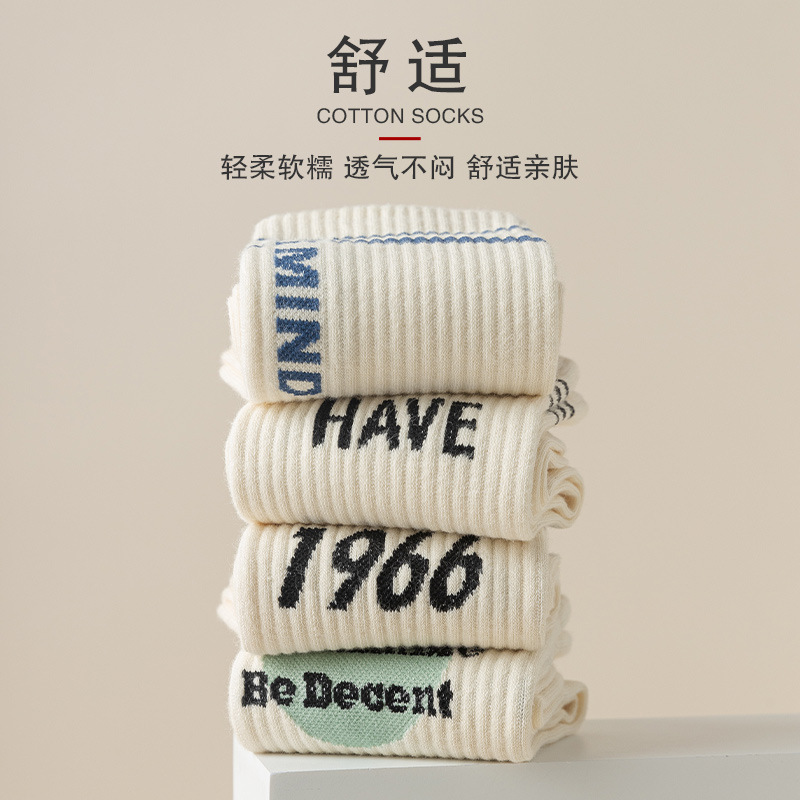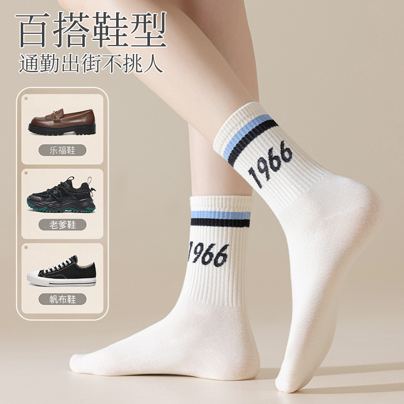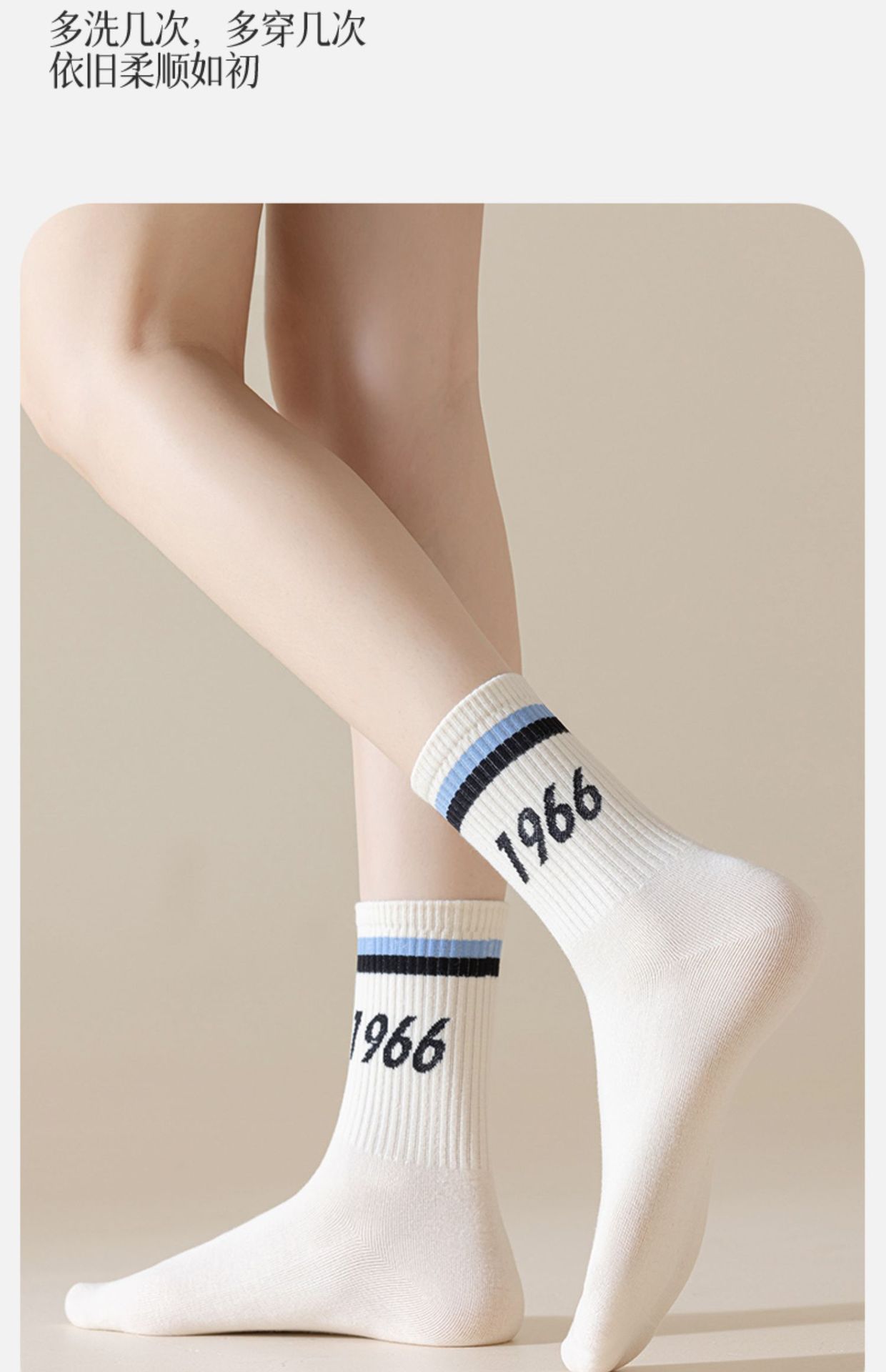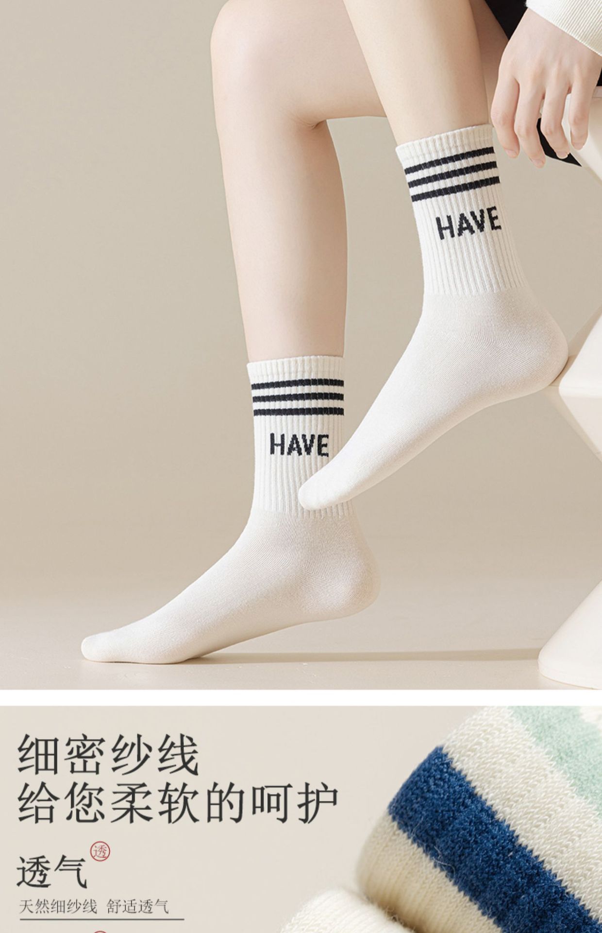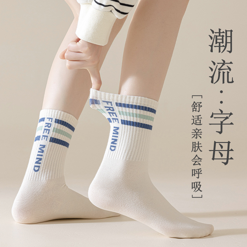 春夏新款字母中筒袜子女日系简约百搭潮流ins运动袜棉袜诸暨袜子