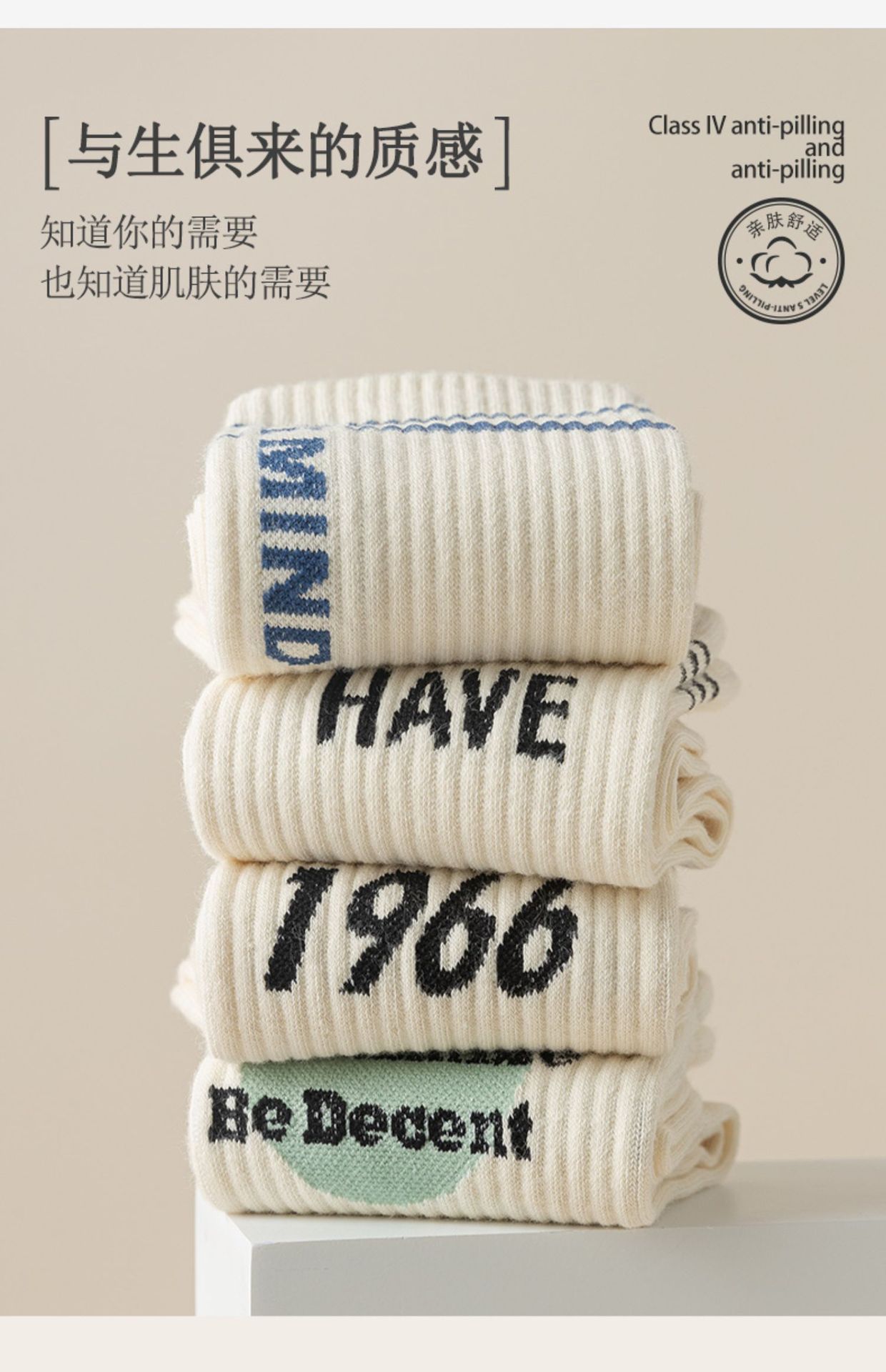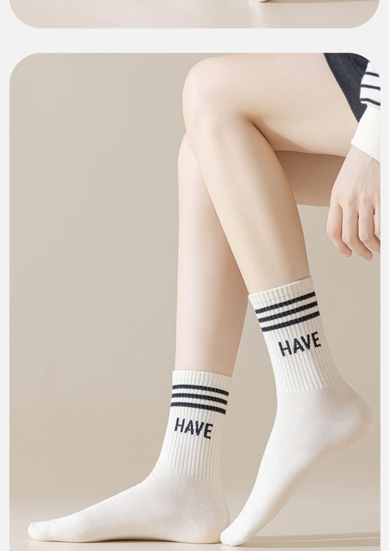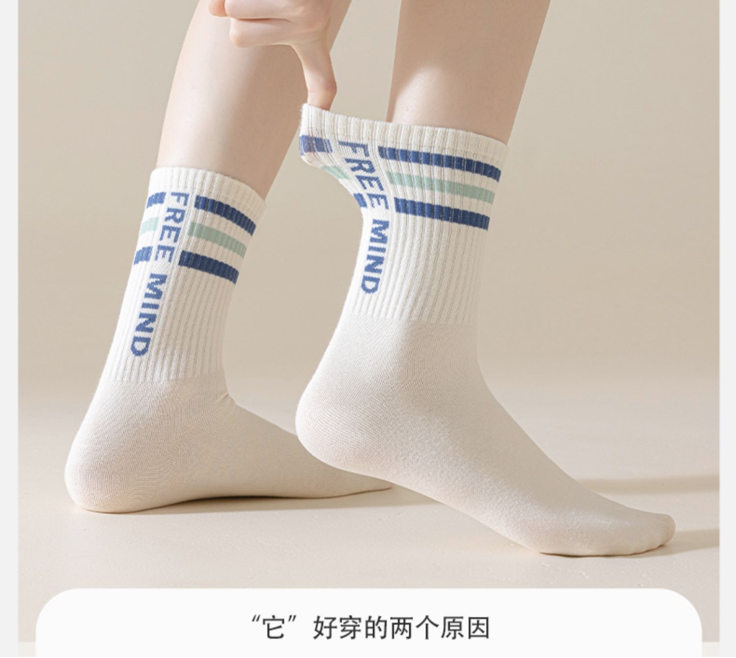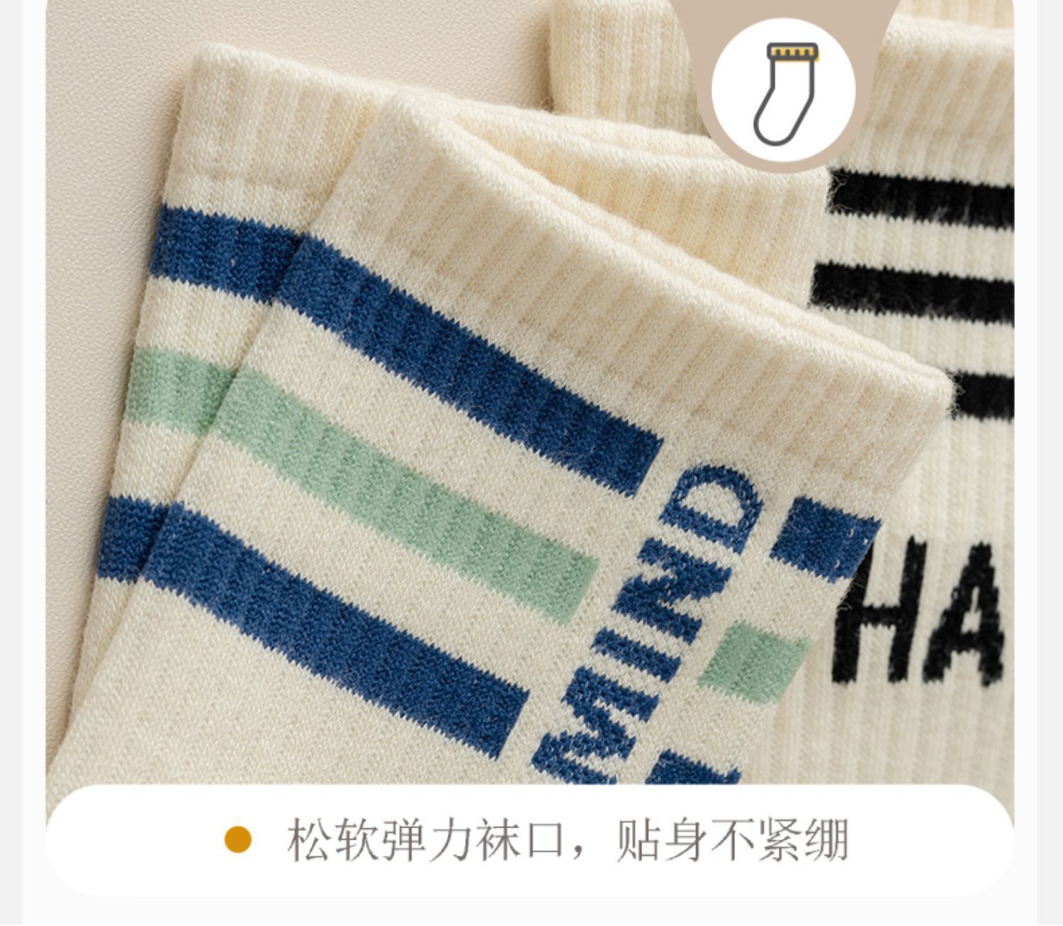春夏新款字母中筒袜子女日系简约百搭潮流ins运动袜棉袜诸暨袜子