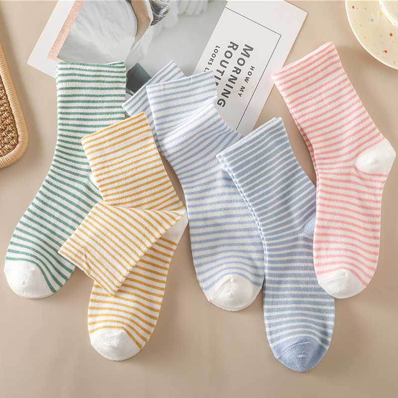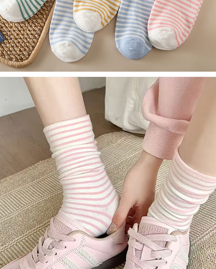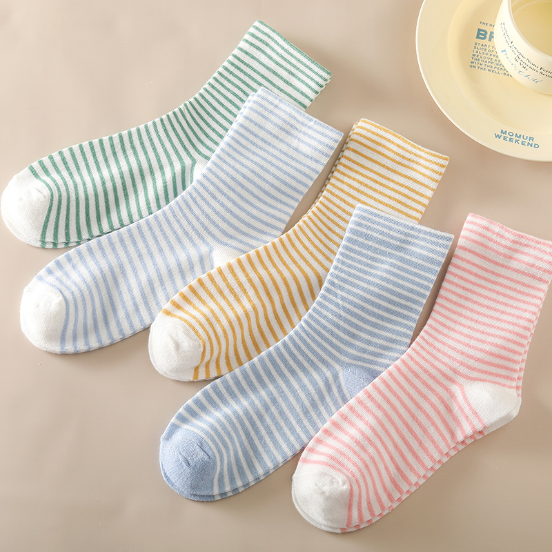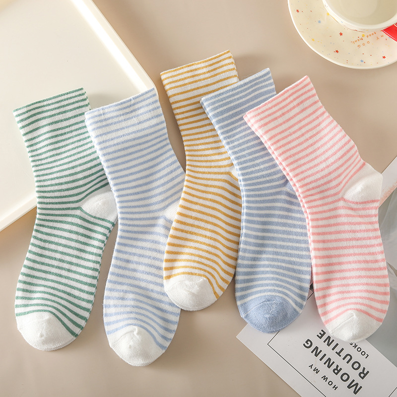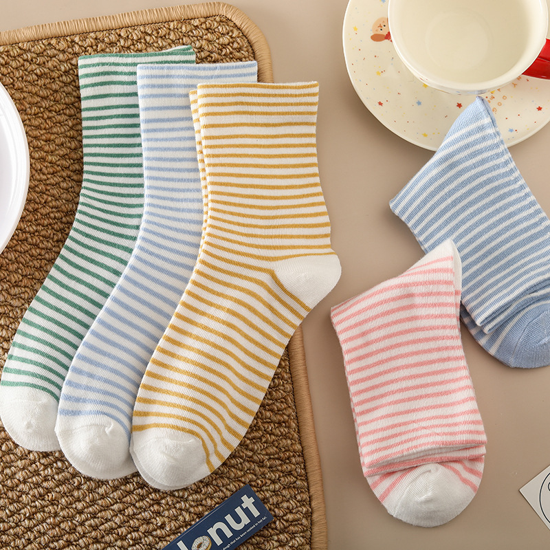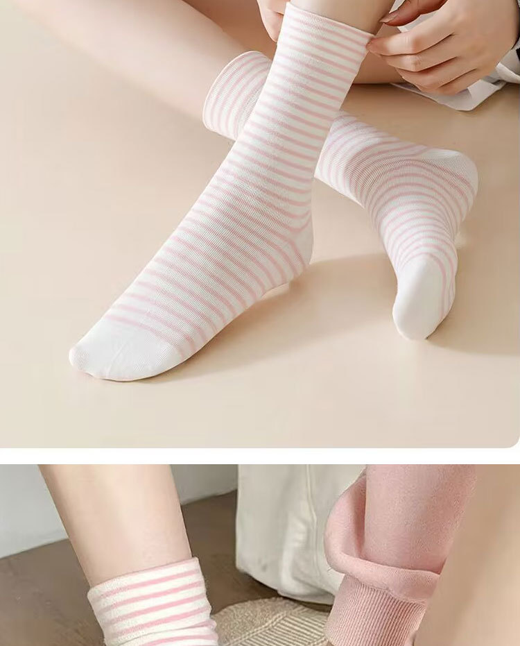 无骨袜子女款春秋中筒袜纯棉防臭吸汗堆堆袜多巴胺条纹月子袜春季