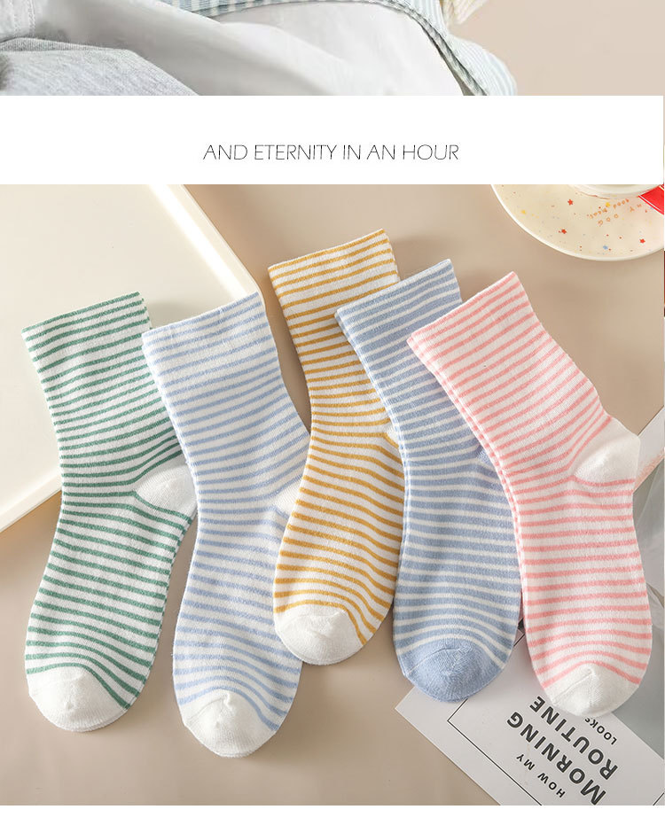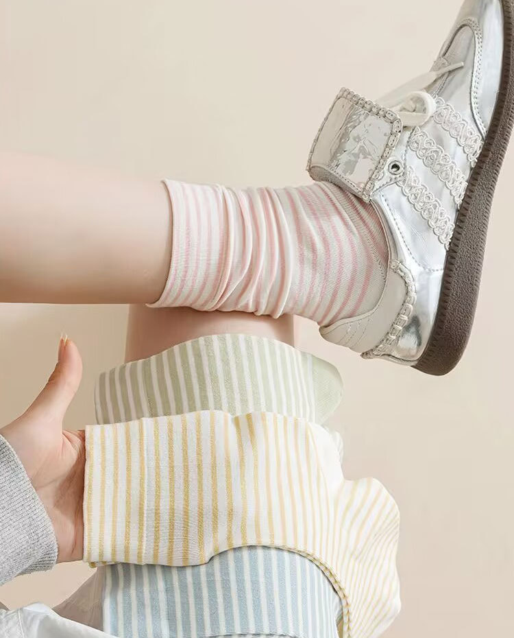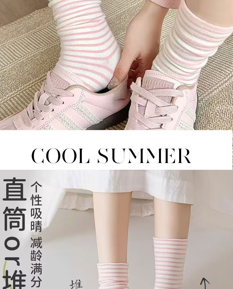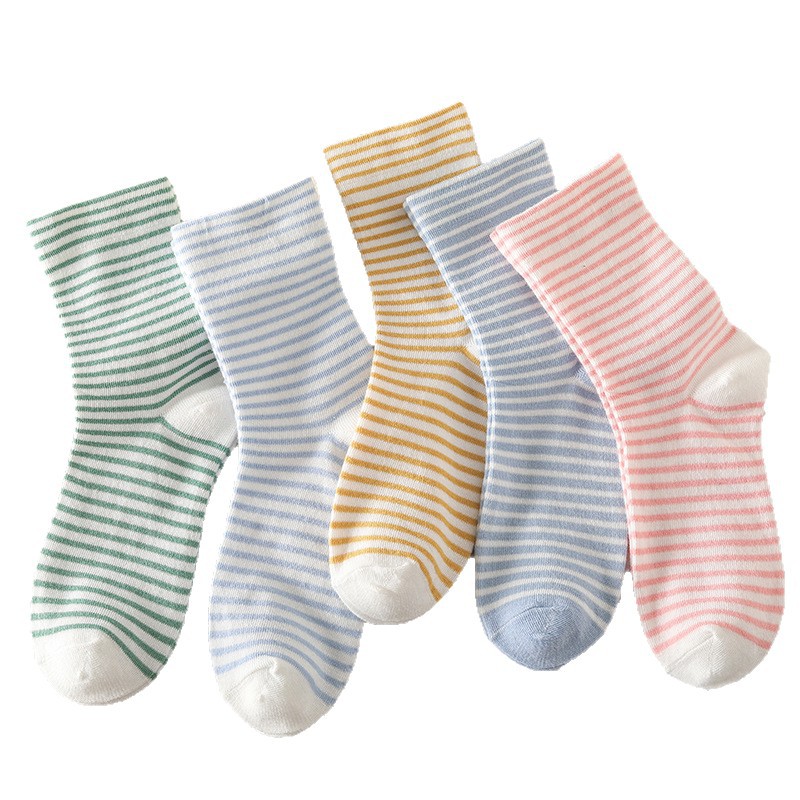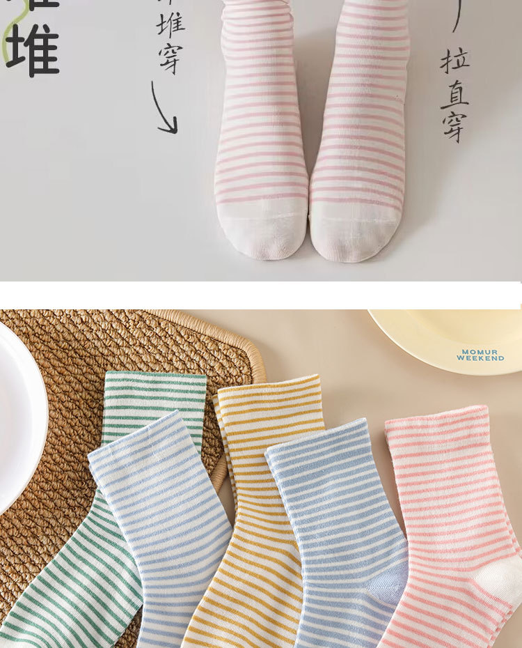 无骨袜子女款春秋中筒袜纯棉防臭吸汗堆堆袜多巴胺条纹月子袜春季