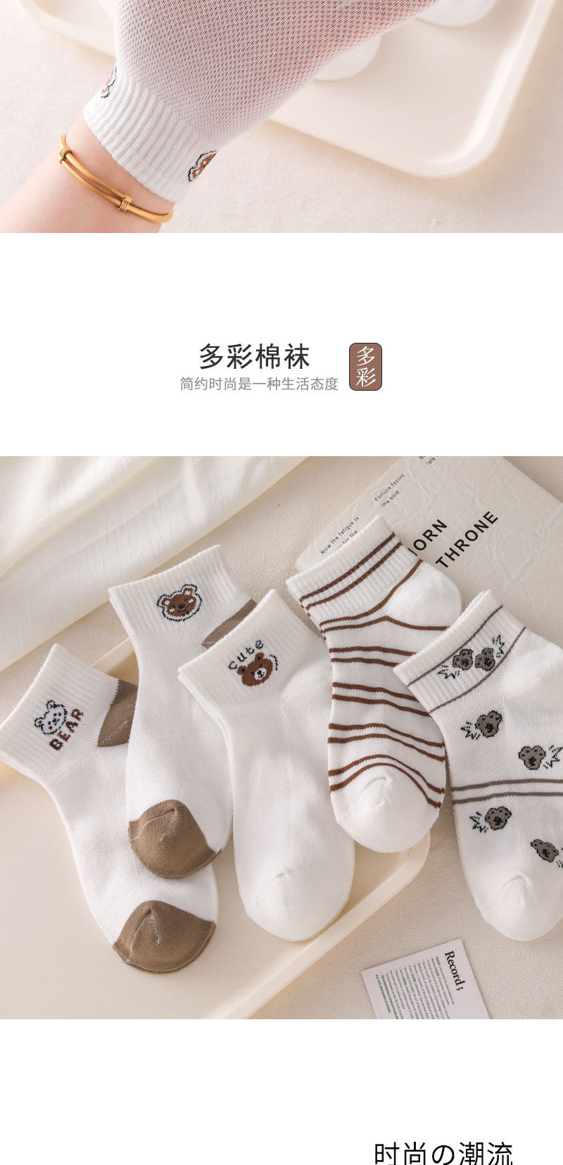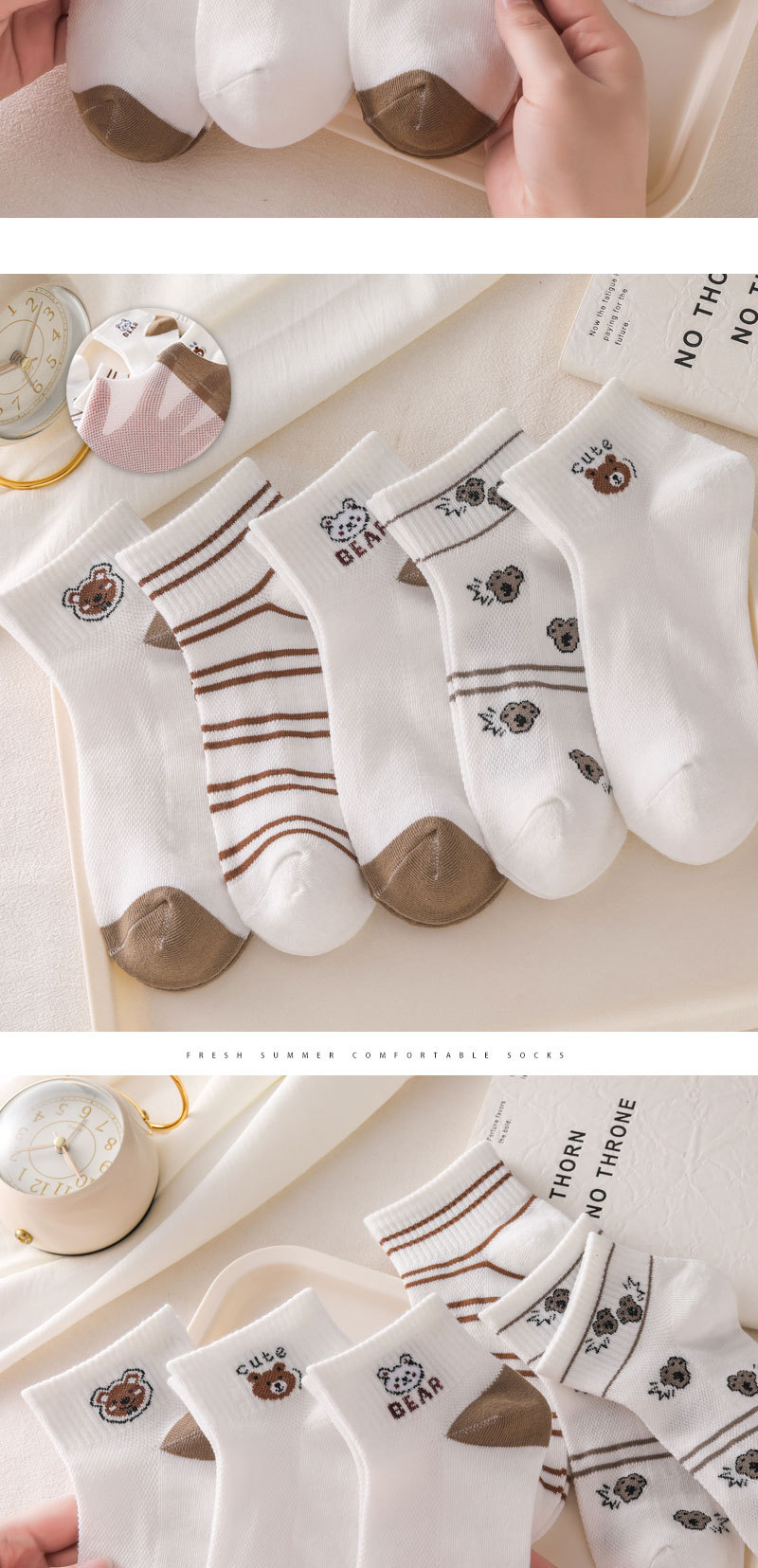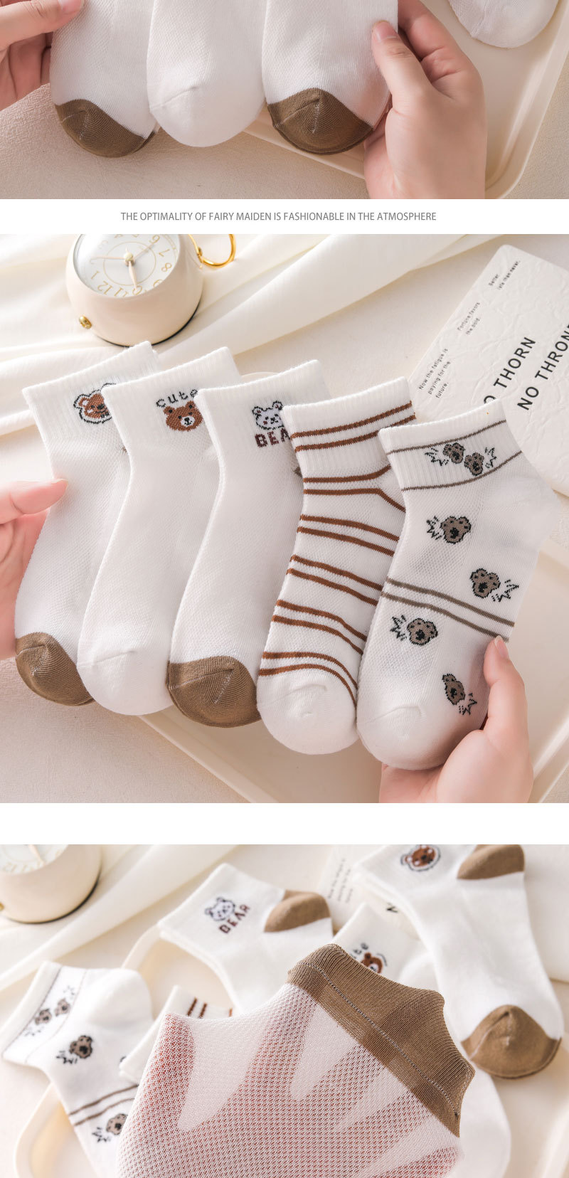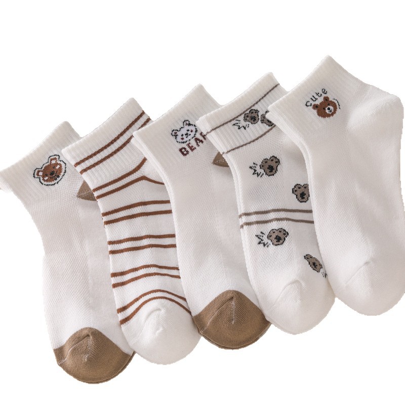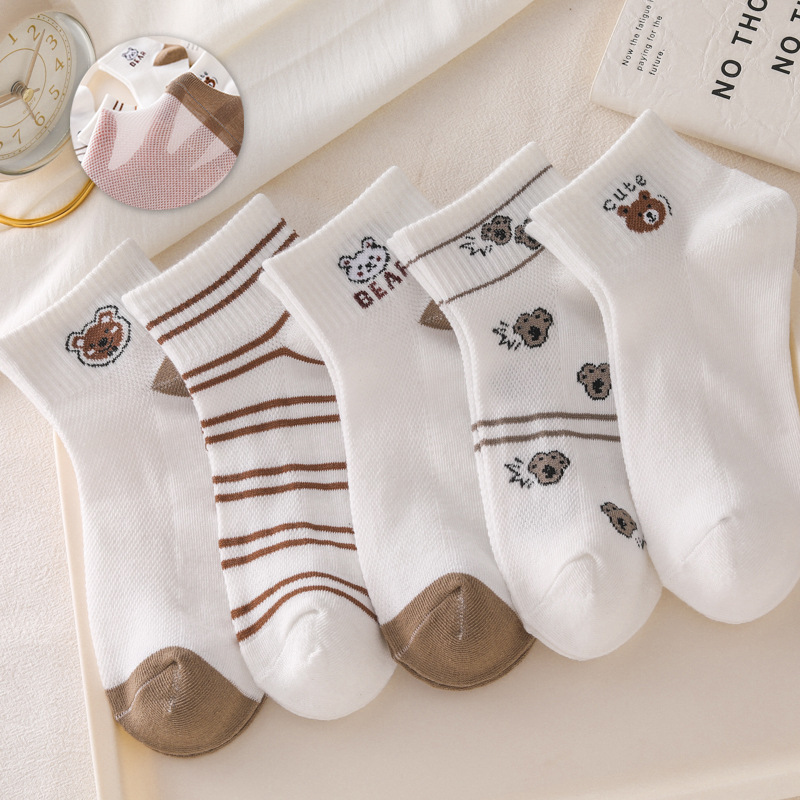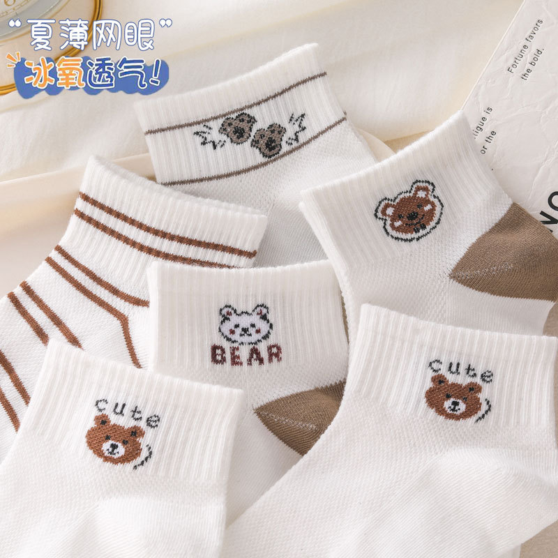 诸暨袜子女新品原创网眼可爱小熊百搭舒适亲肤吸汗透气运动防摩擦