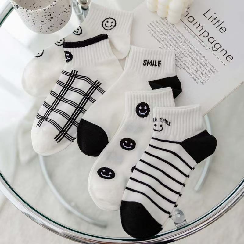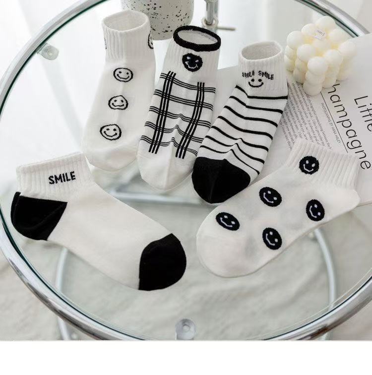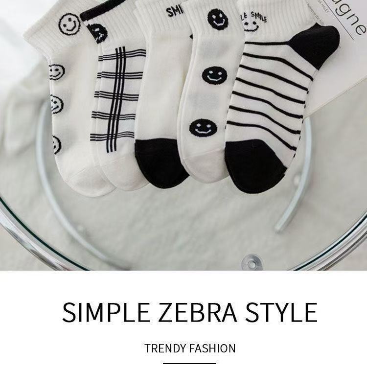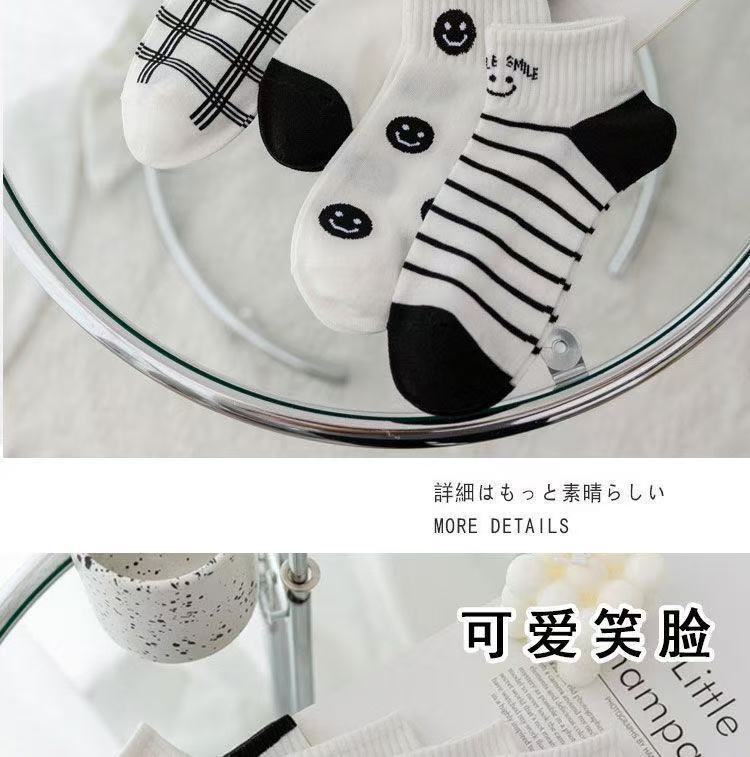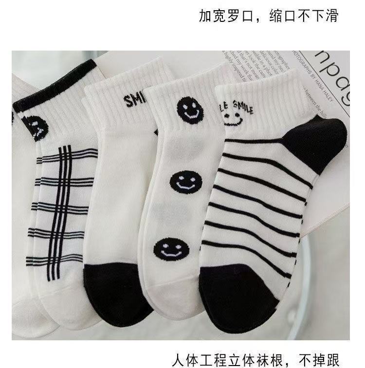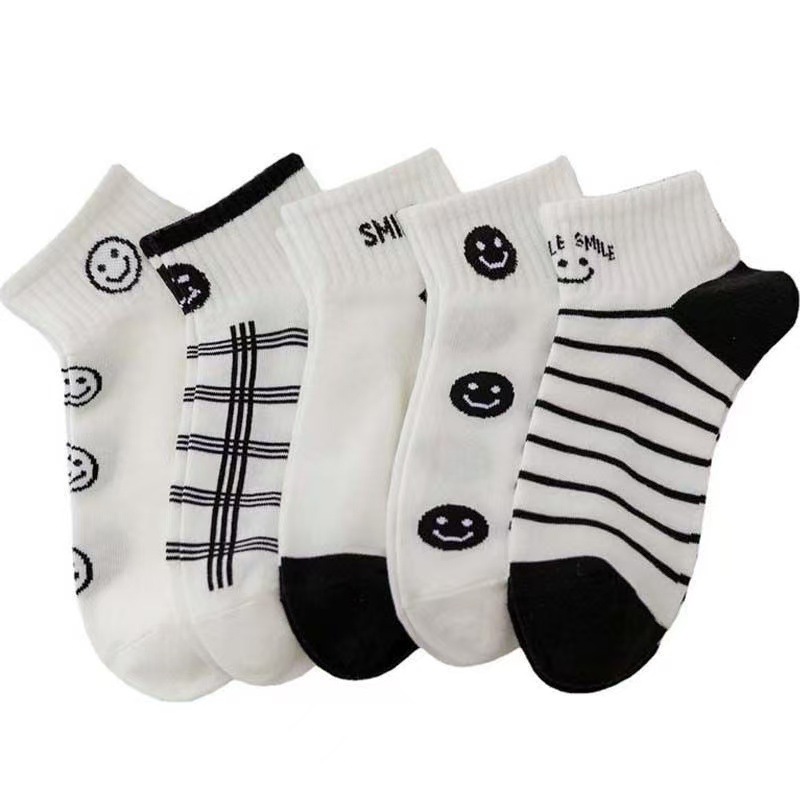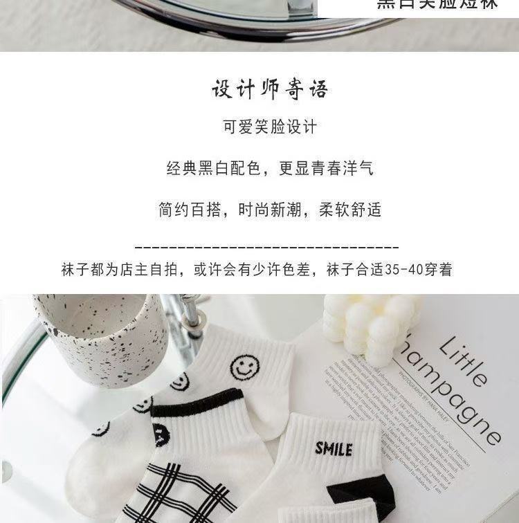 袜子女短袜新款黑白色ins风学院风吸汗透气舒适字母运动条纹百搭
