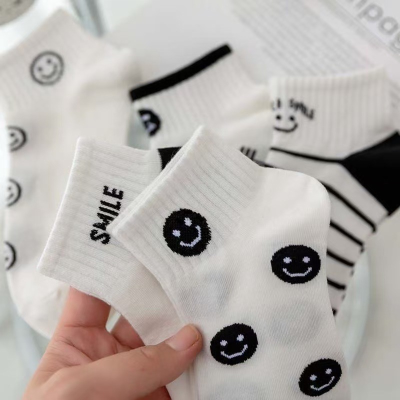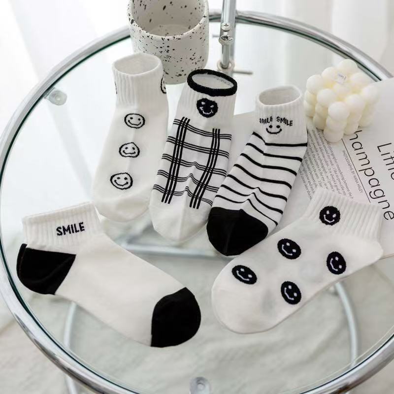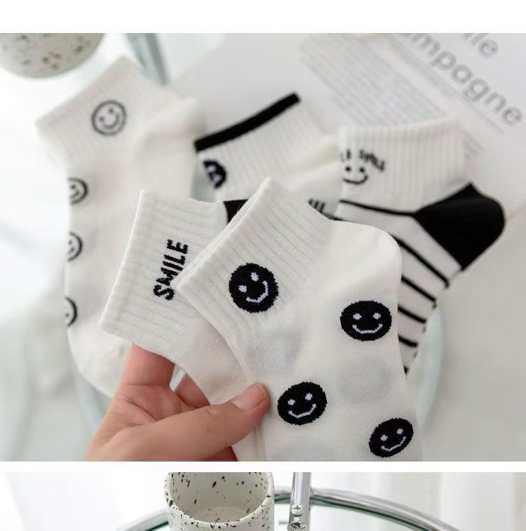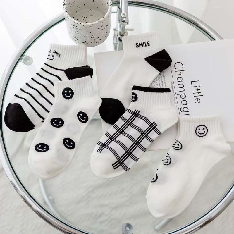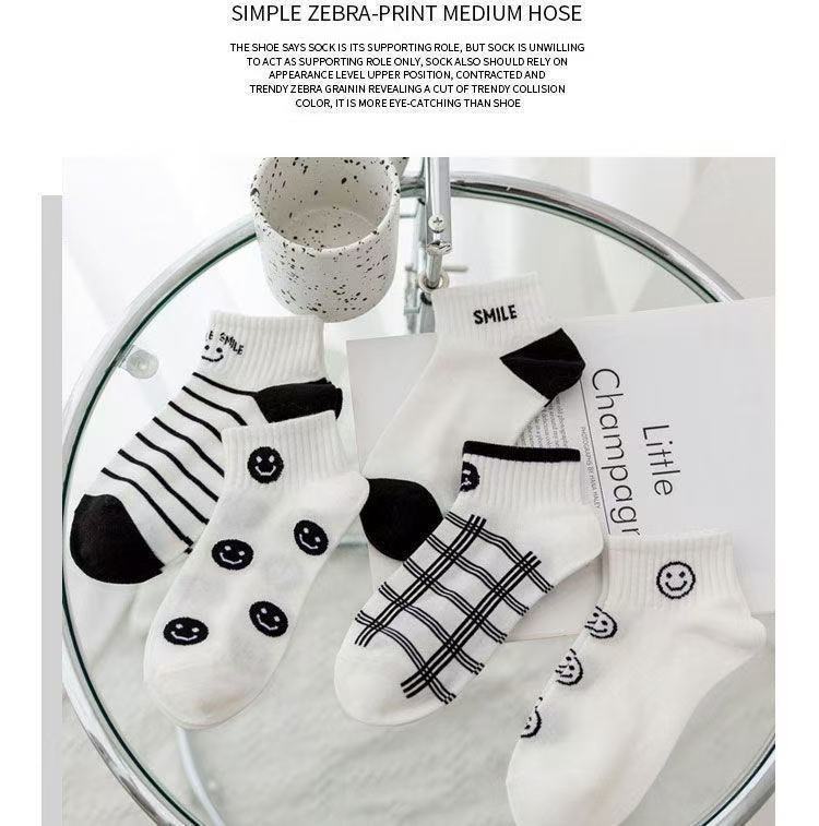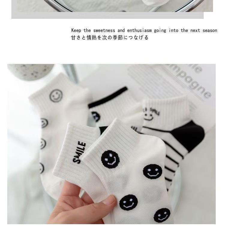 袜子女短袜新款黑白色ins风学院风吸汗透气舒适字母运动条纹百搭