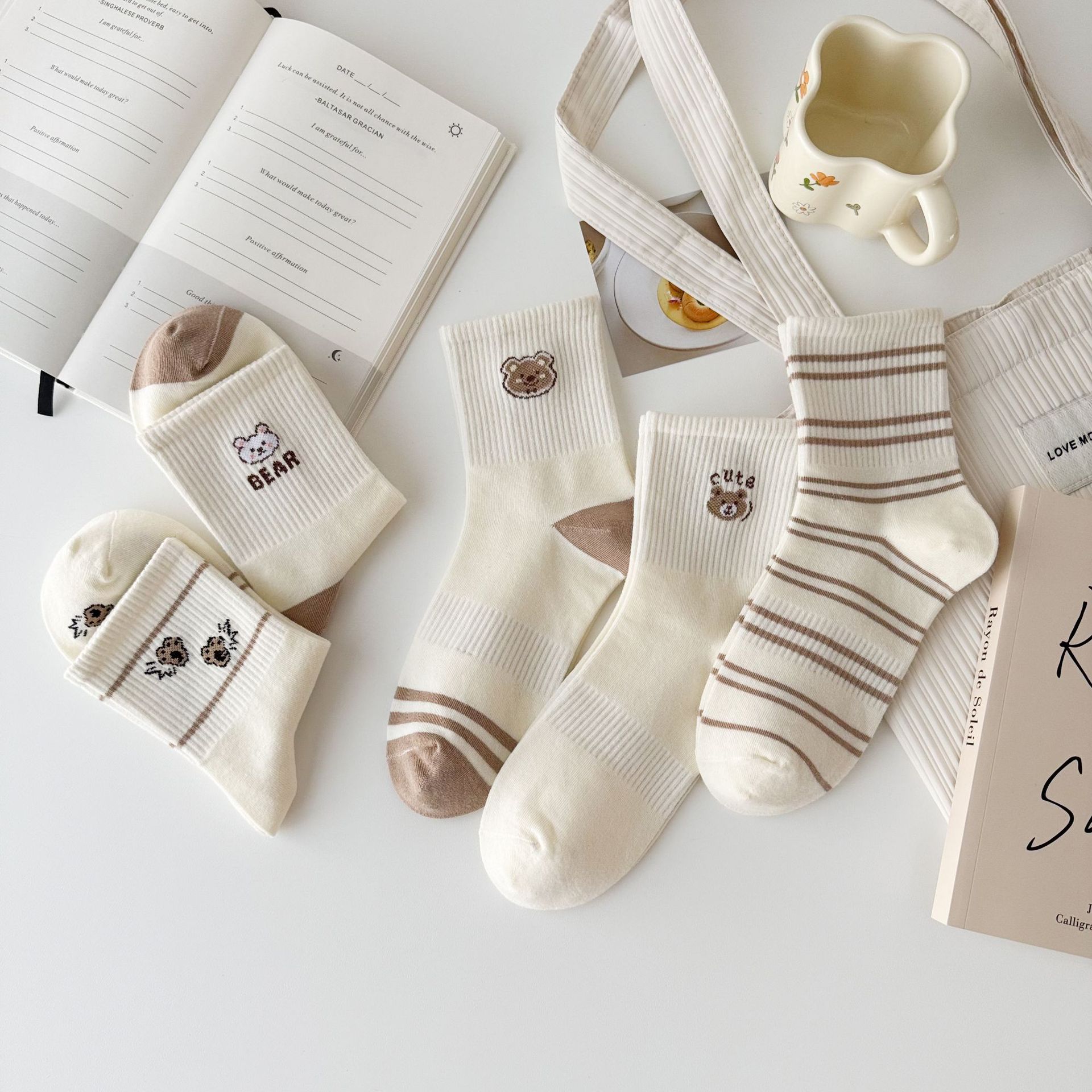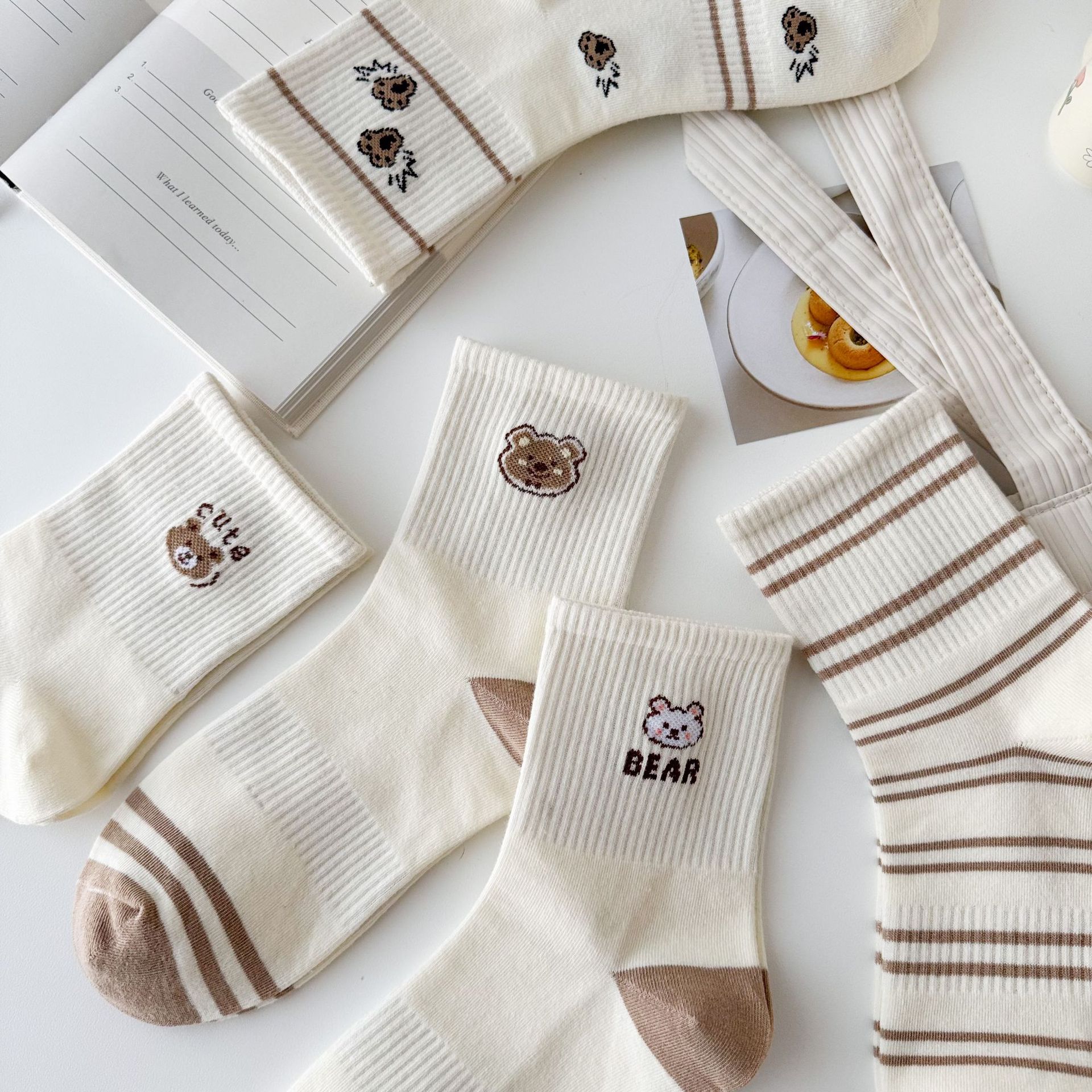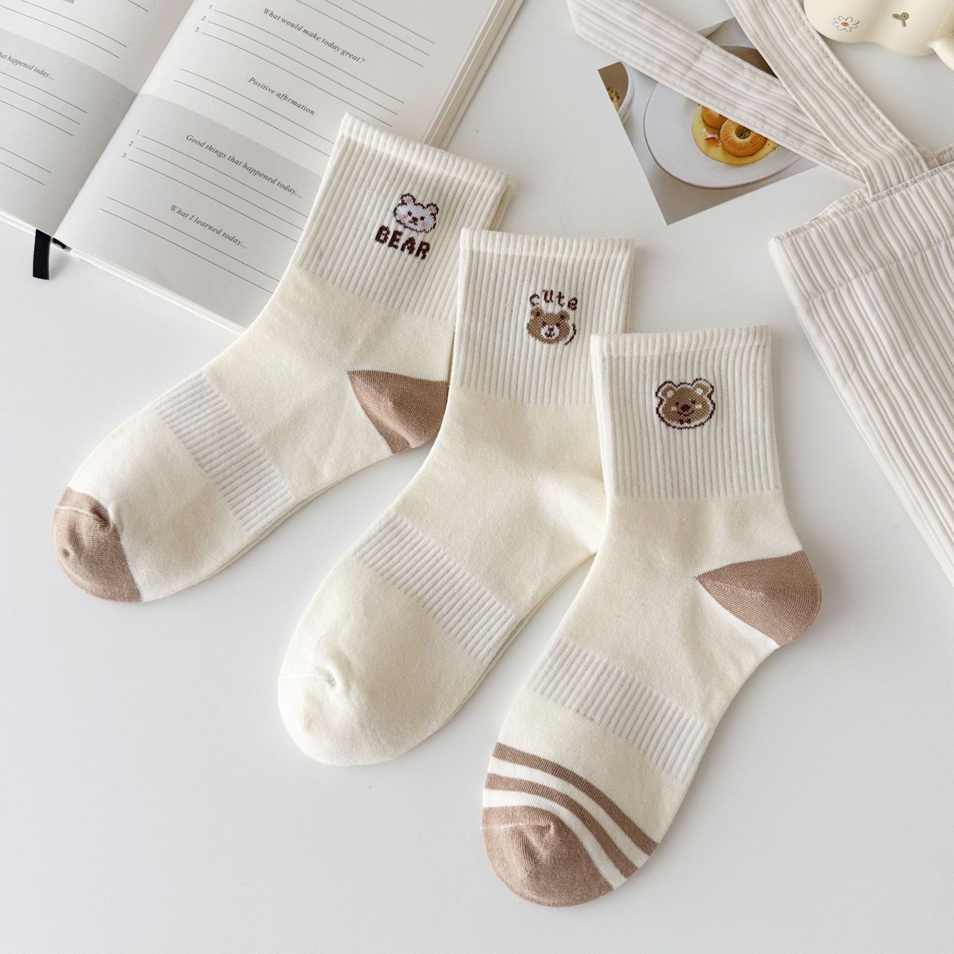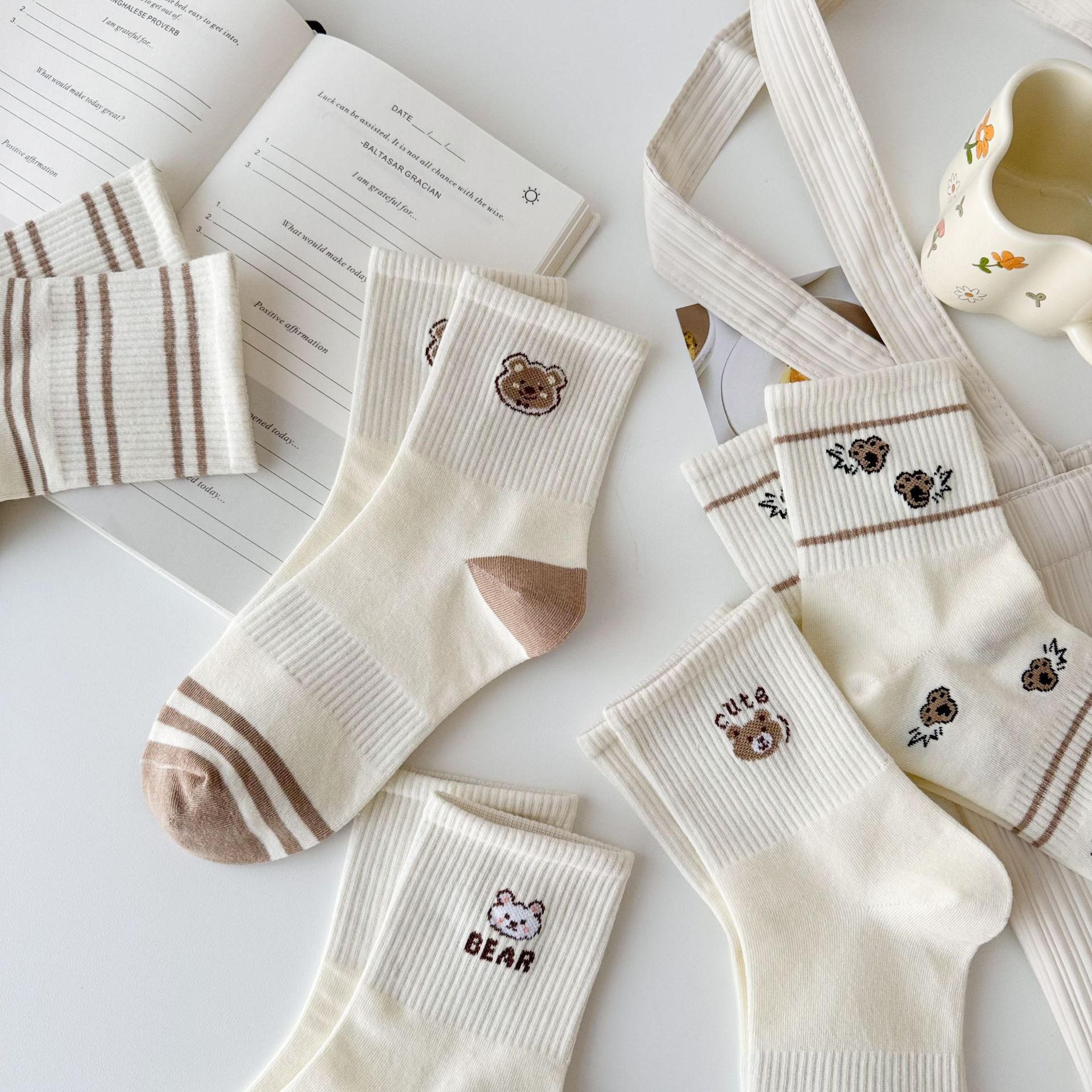 袜子女ins潮中筒袜秋冬小熊系韩版吸汗透气百搭原创学院风网红爆