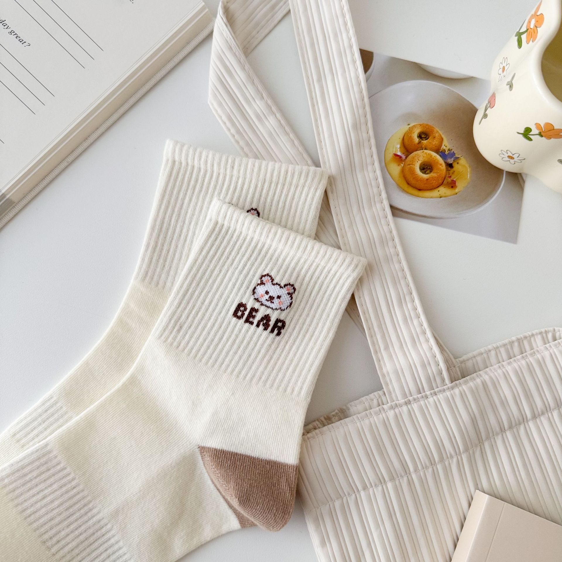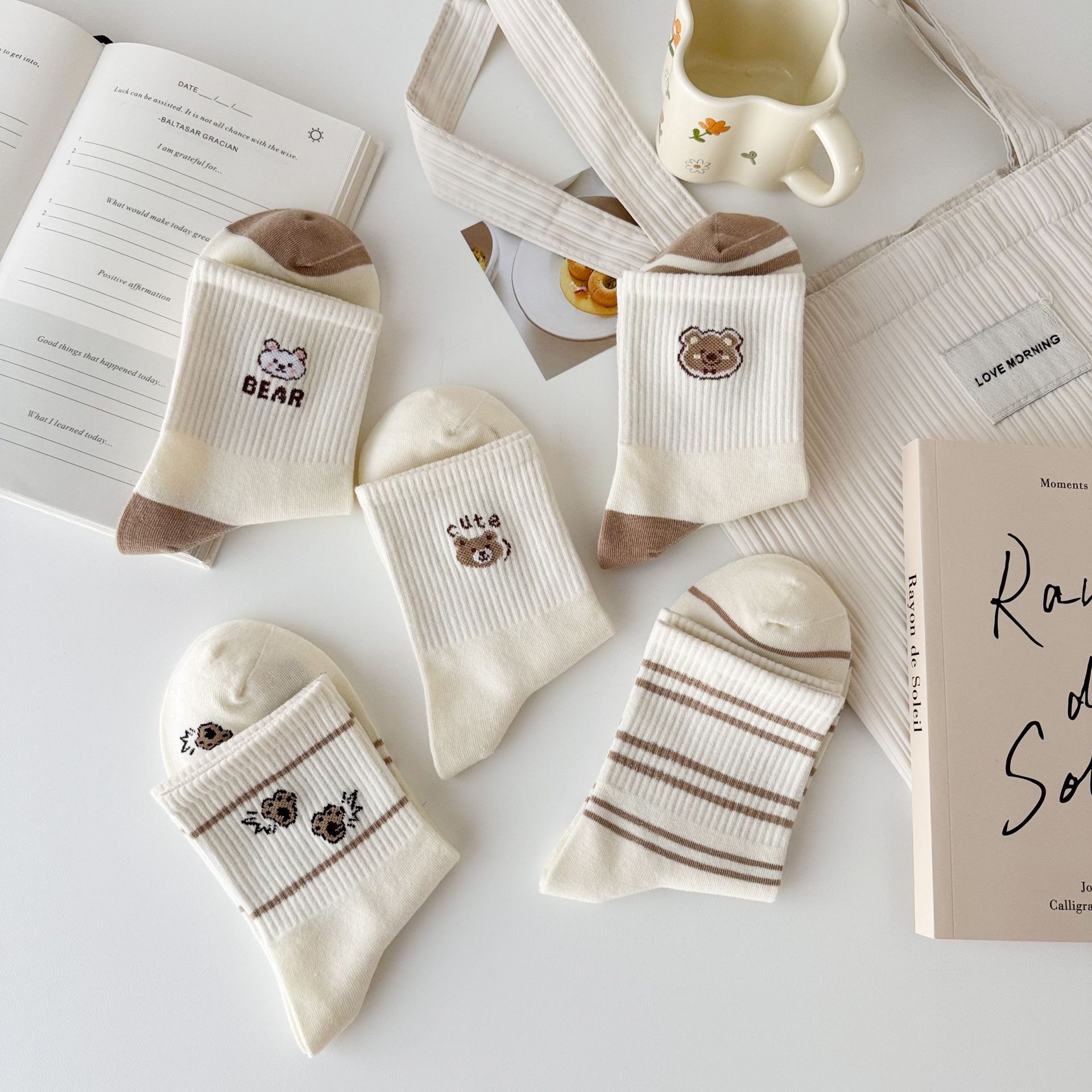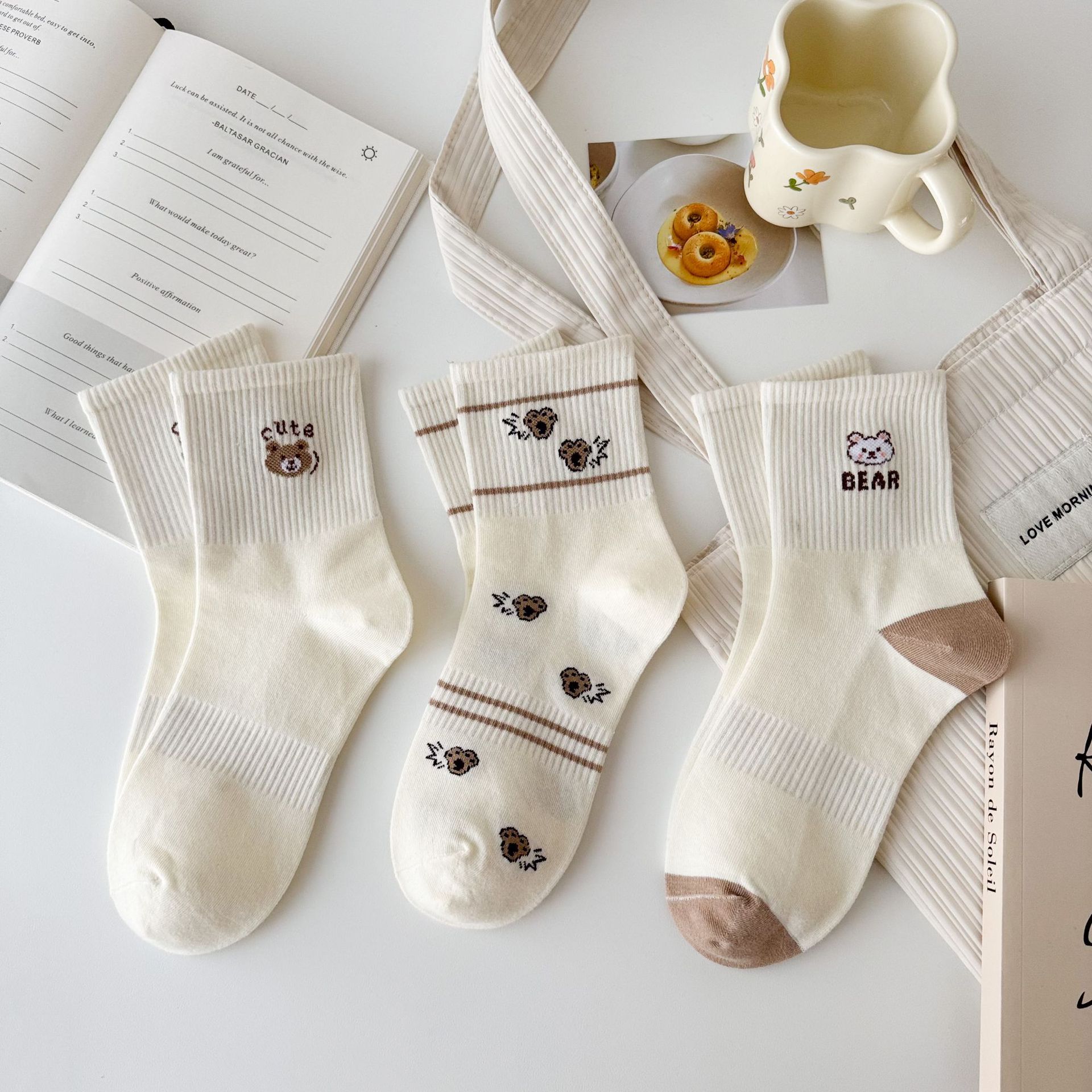 袜子女ins潮中筒袜秋冬小熊系韩版吸汗透气百搭原创学院风网红爆