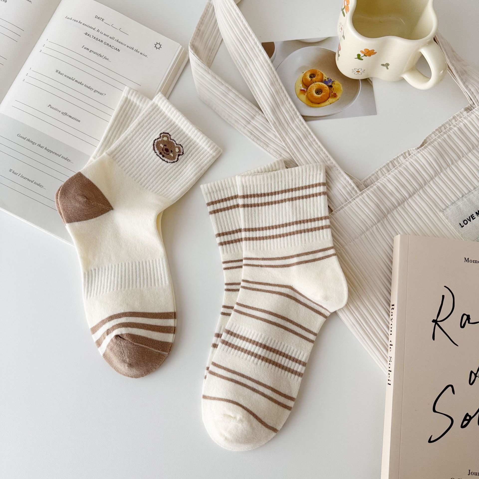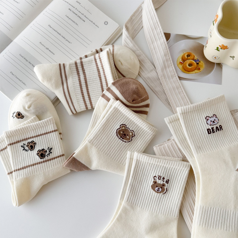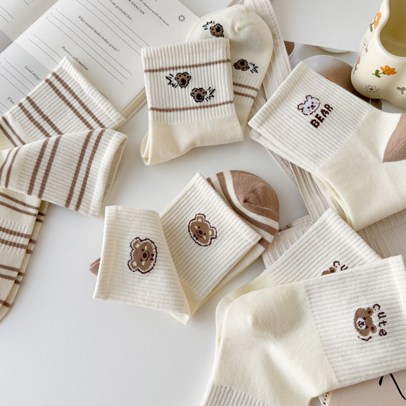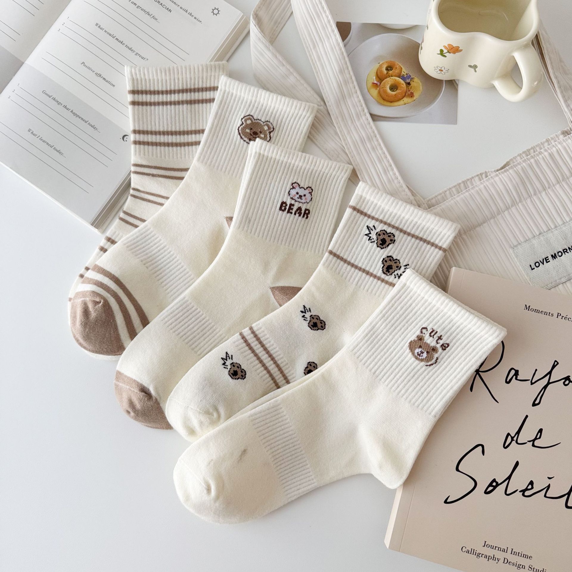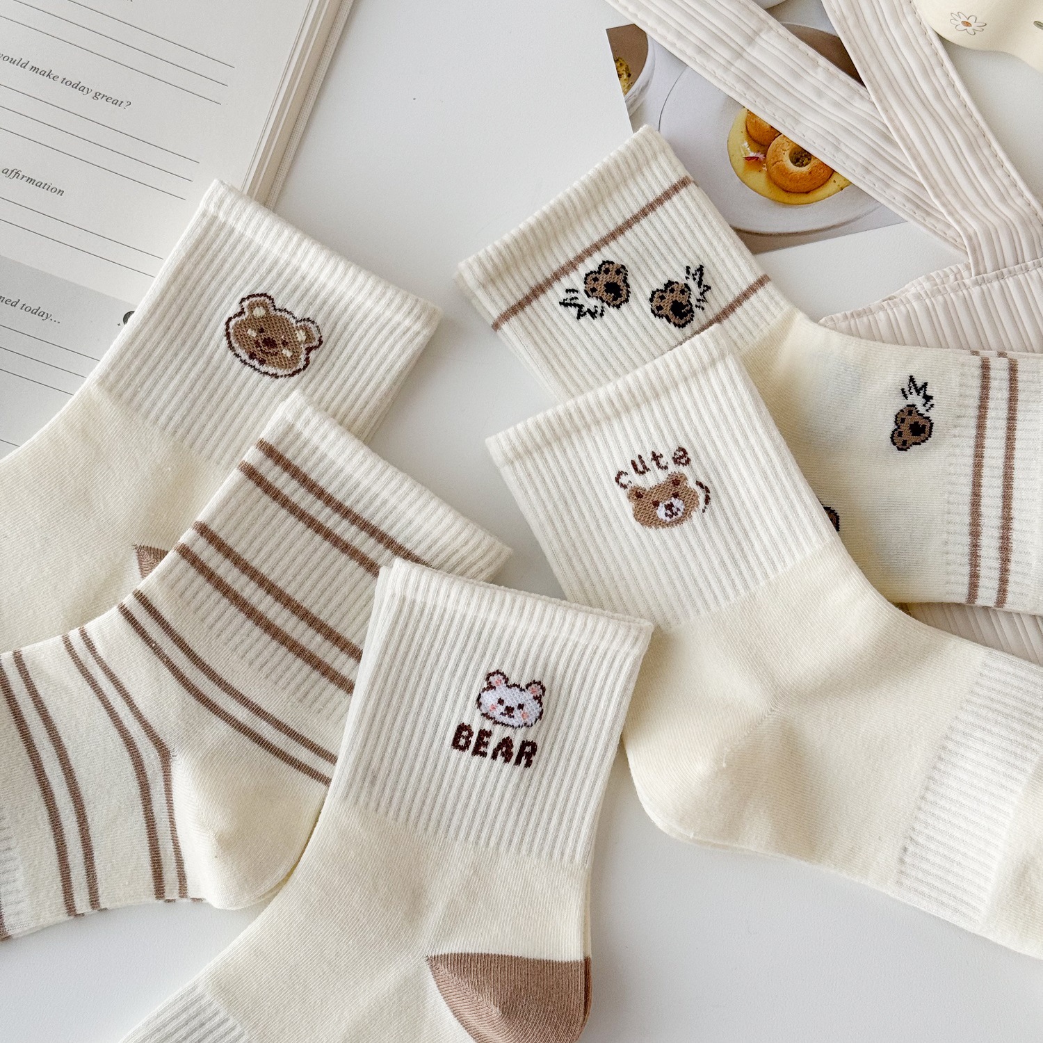 袜子女ins潮中筒袜秋冬小熊系韩版吸汗透气百搭原创学院风网红爆