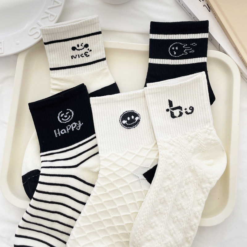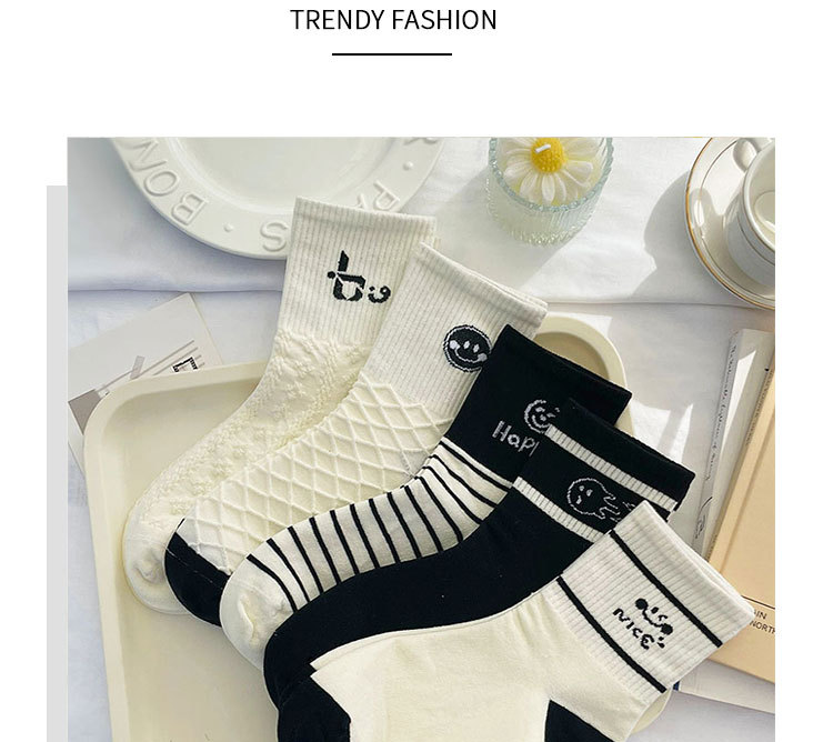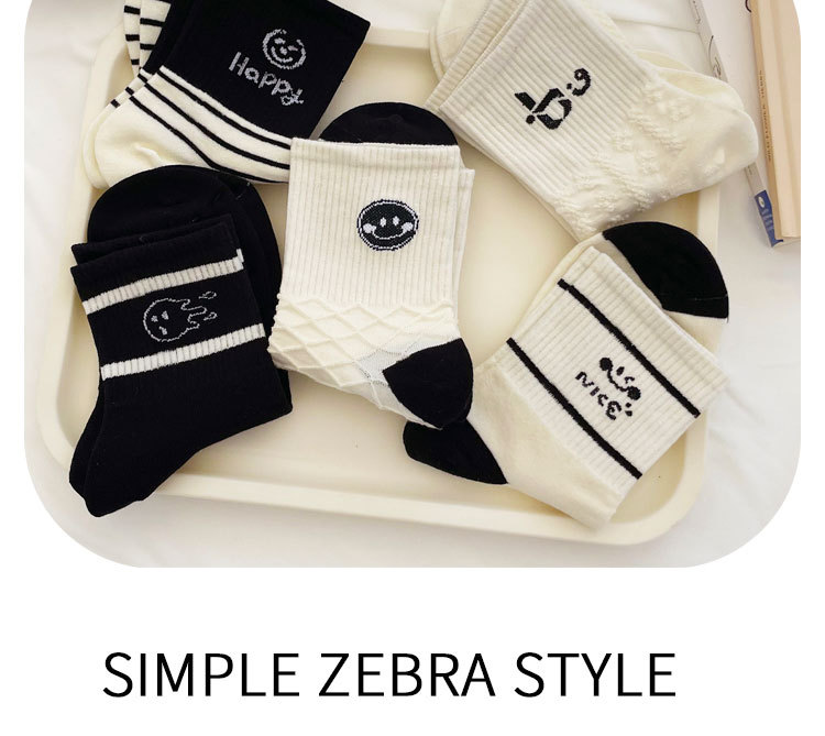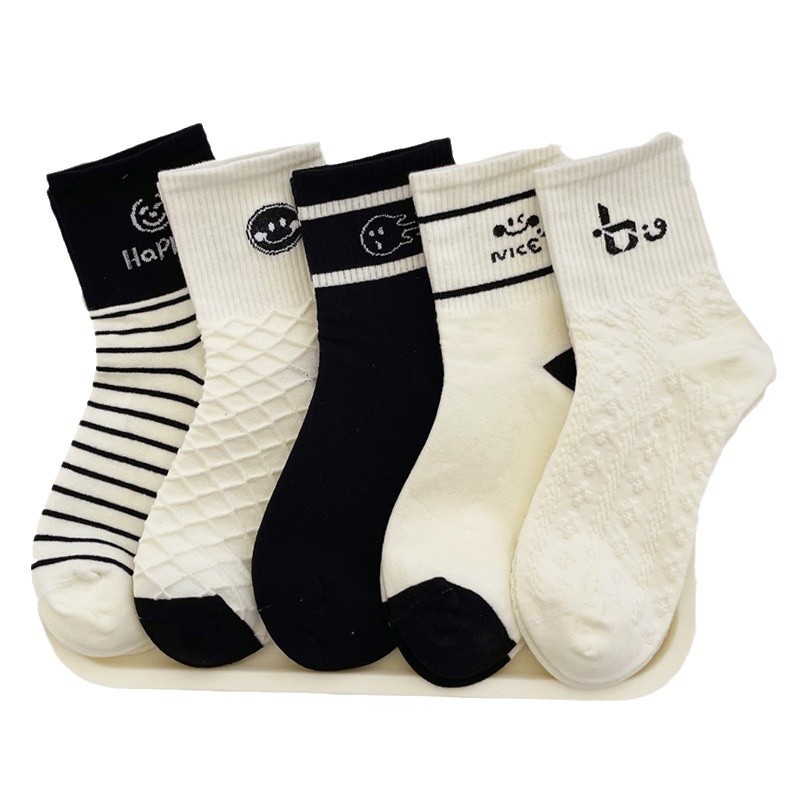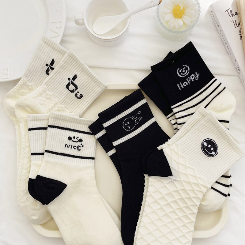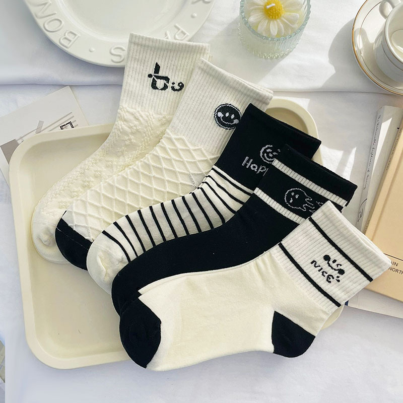袜子女中筒袜百搭条纹新款可爱学院风韩版吸汗透气秋冬原创黑白